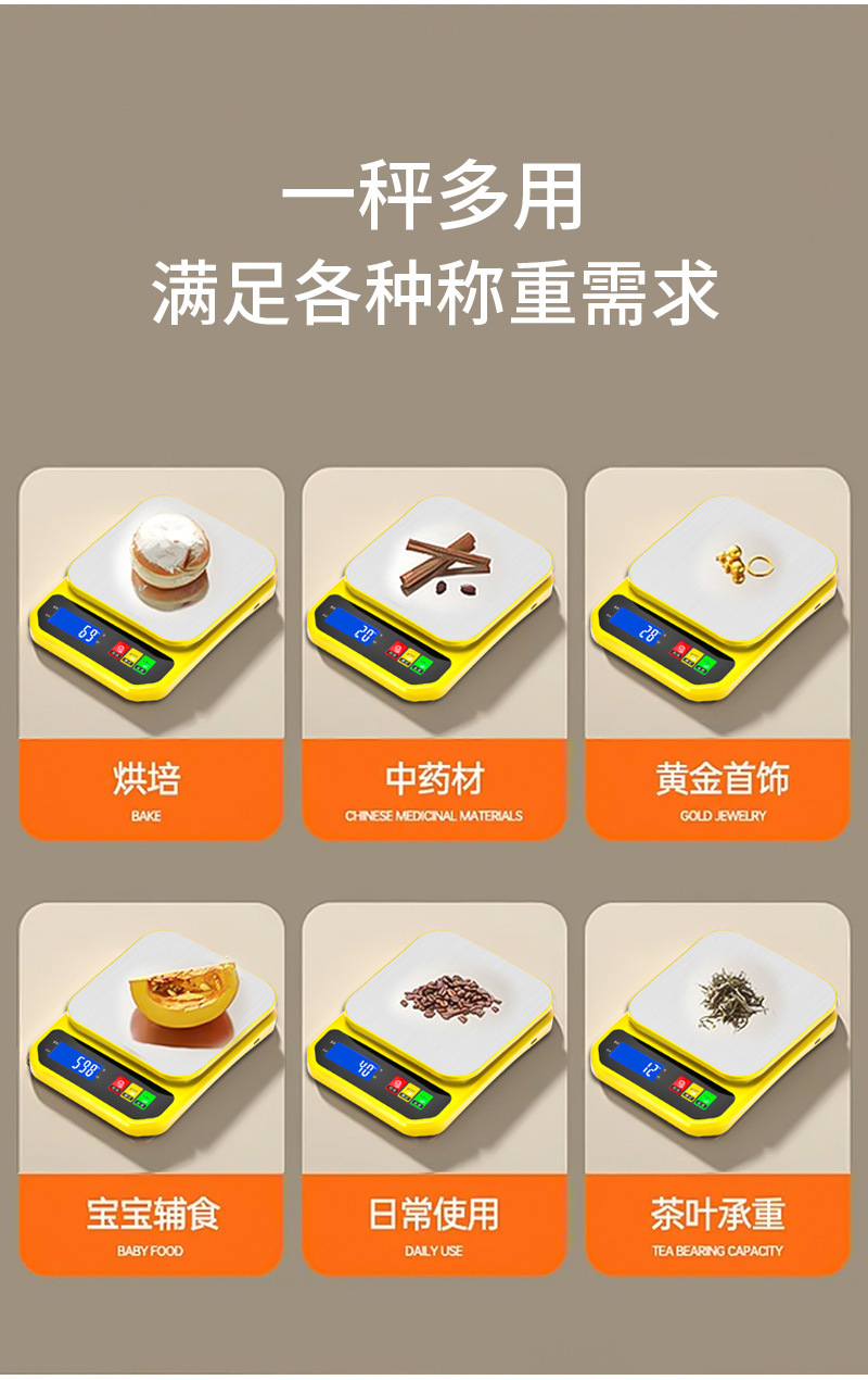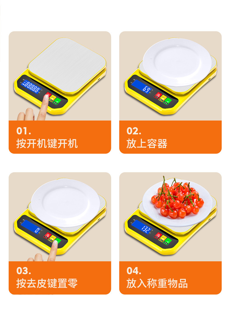 가정용 스테인레스 스틸 주방 규모 가정용 전자 계량 플랫폼 규모 식품 무게 정밀 계량 규모 작은 전자 규모 10kg