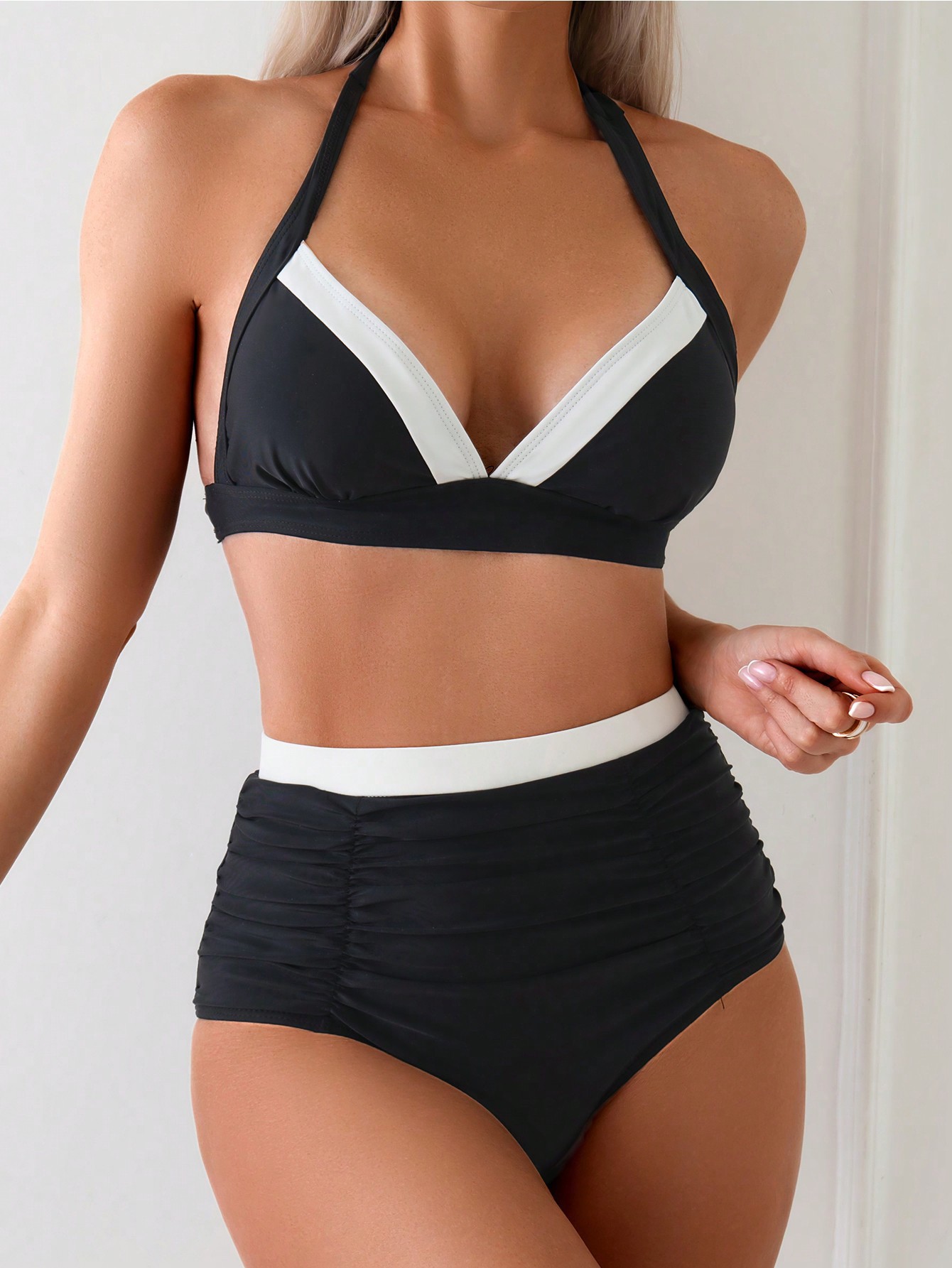 Xinsi 25 년 국경을 넘나 드는 새로운 유럽과 미국의 분할 여성 흑백 컬러 매칭 휴일 섹시한 유럽과 미국의 비키니 수영복