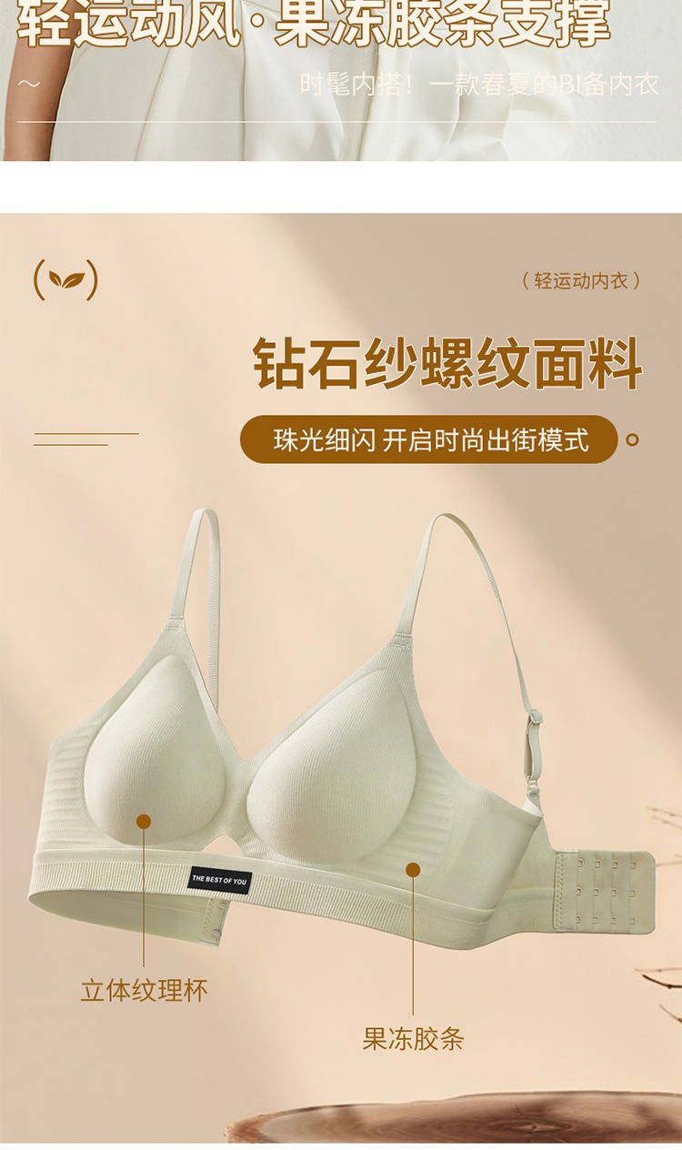 다이아몬드 원사 젤리 스포츠 슬링 소프트 지원 속옷 여성의 추적없는 고정 컵 기계 세탁기 통기성 여성의 브래지어 어퍼 브라스토어 가기