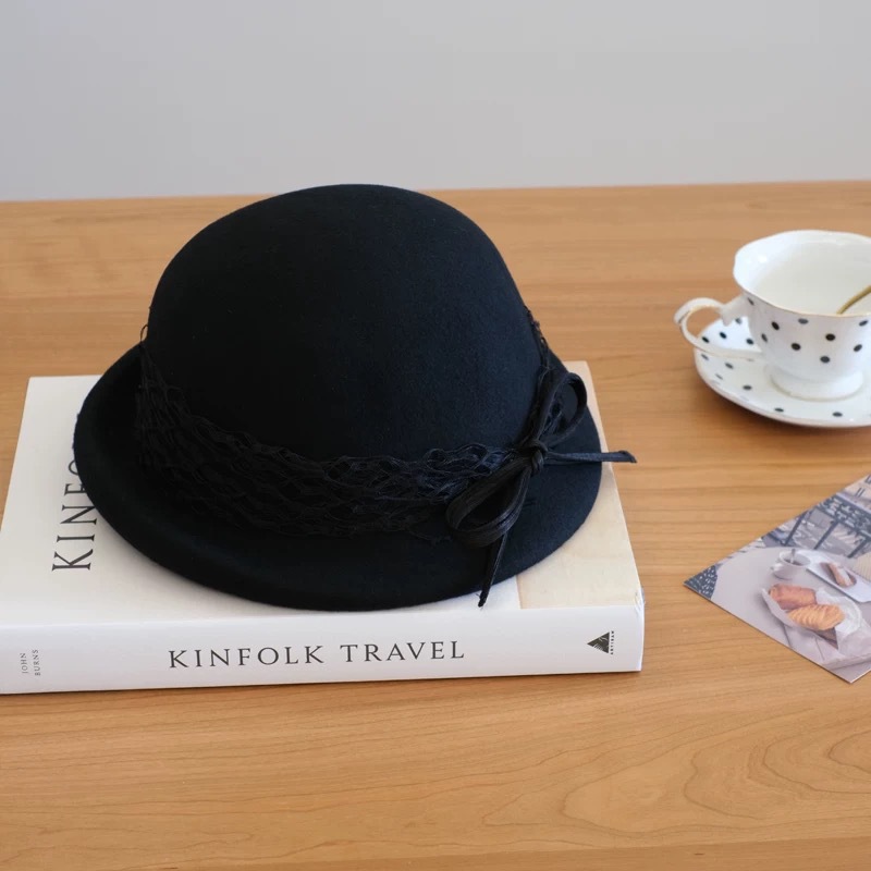 • 클래식 블랙 양모 펠트 모자 (재고 있음) [양모 100%]