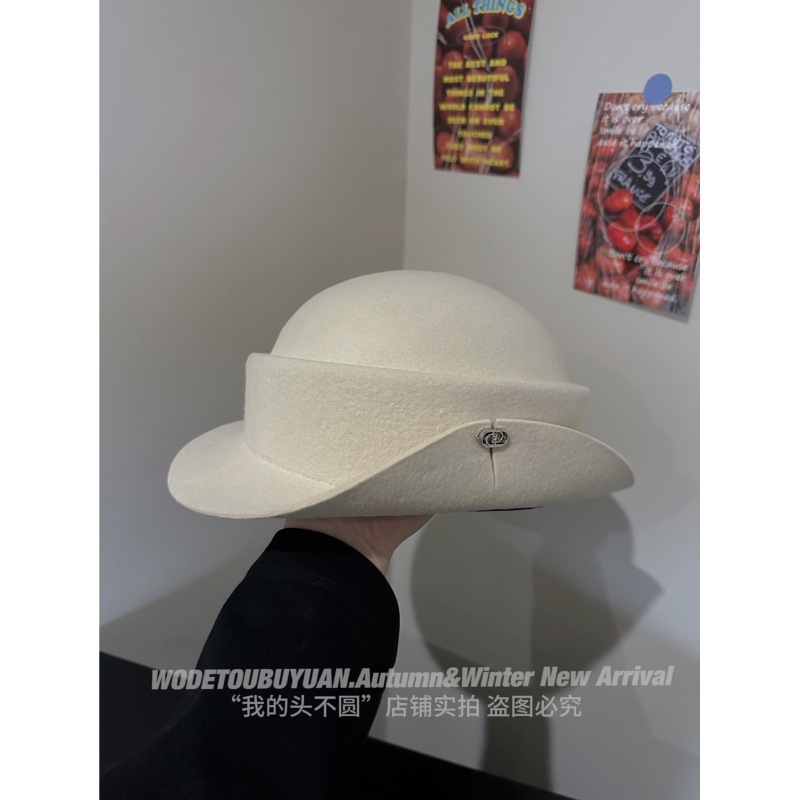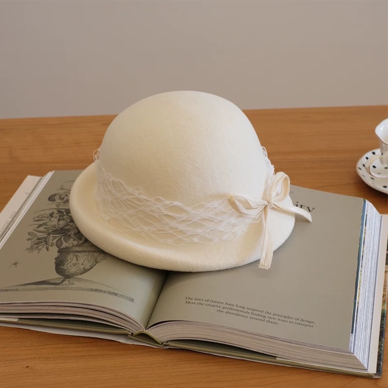 • 우아한 화이트 [양모 펠트] 얼굴 작아 보이는 효과, 세련된 분위기 연출