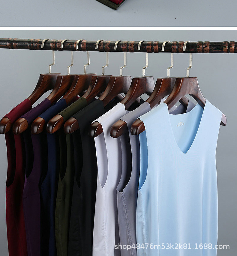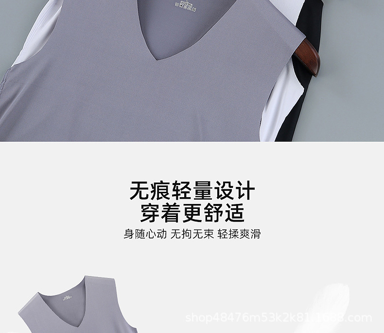 남성 여름 스포츠 조끼 화이트 패션 아이스 실크 원활한 고탄성 피부 흡수성 통기성 V 넥 민소매스토어 가기
