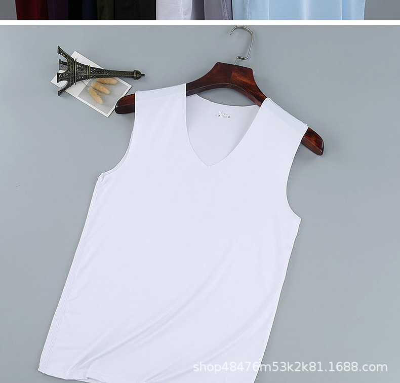 • 남성용 아이스 실크 조끼 V 넥 화이트