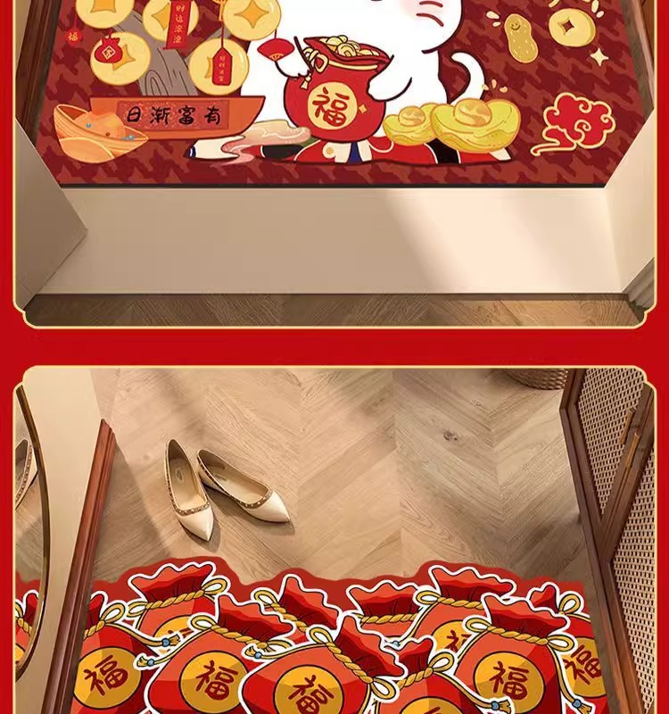 스네이크 설날 크리스탈 벨벳 플로어 매트 엔트리 도어 매트 먼지 방지 내마모성 쉬운 미끄럼 방지 퀵 드라이 플로어 매트 흡수 매트