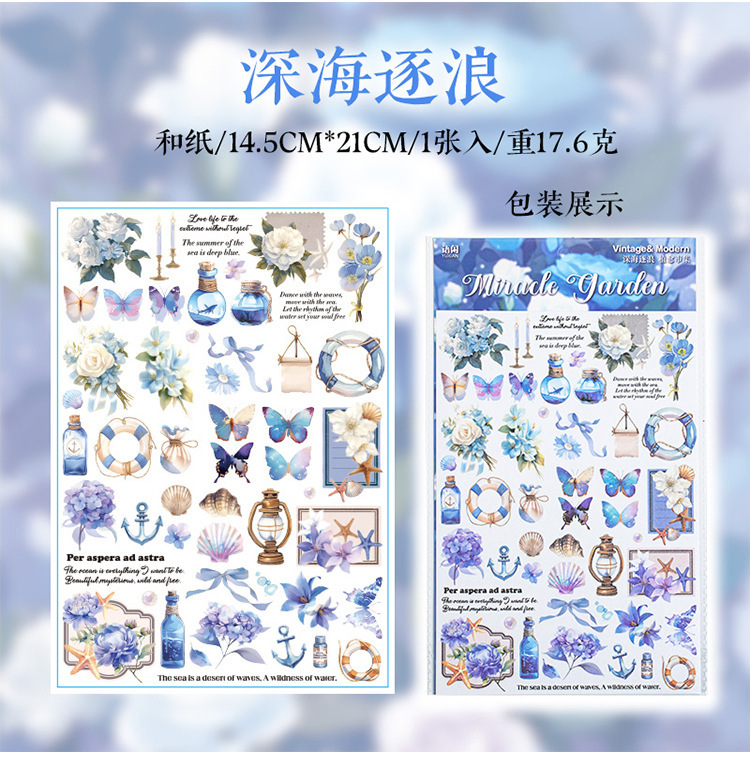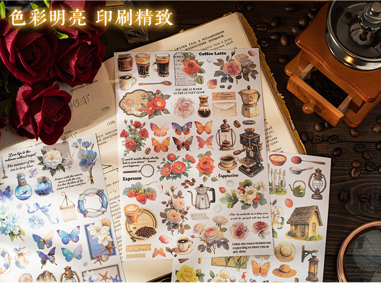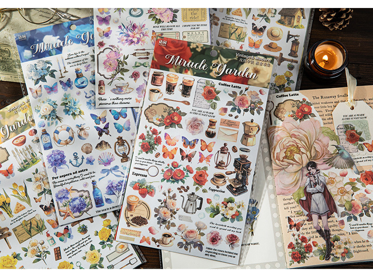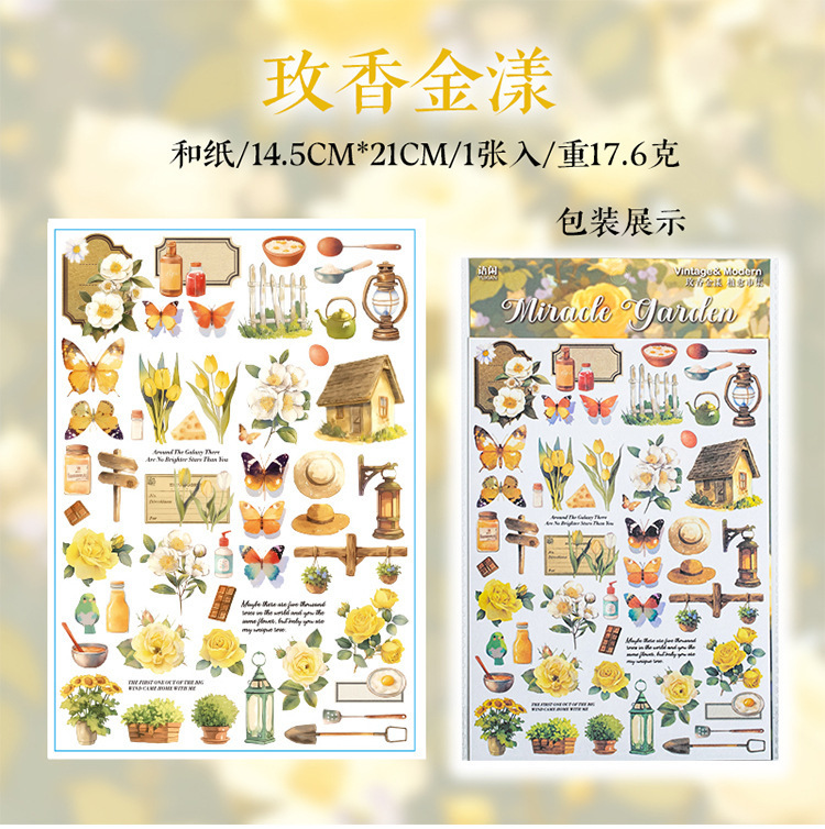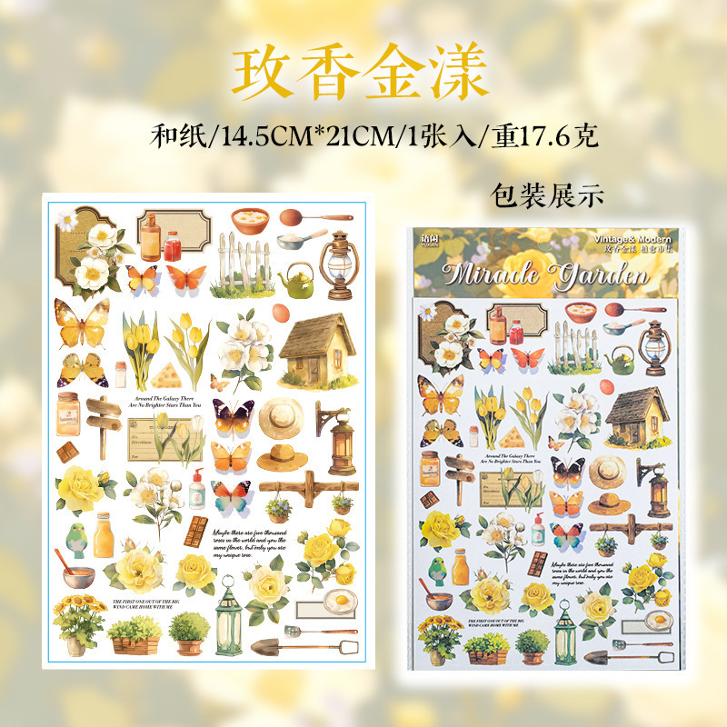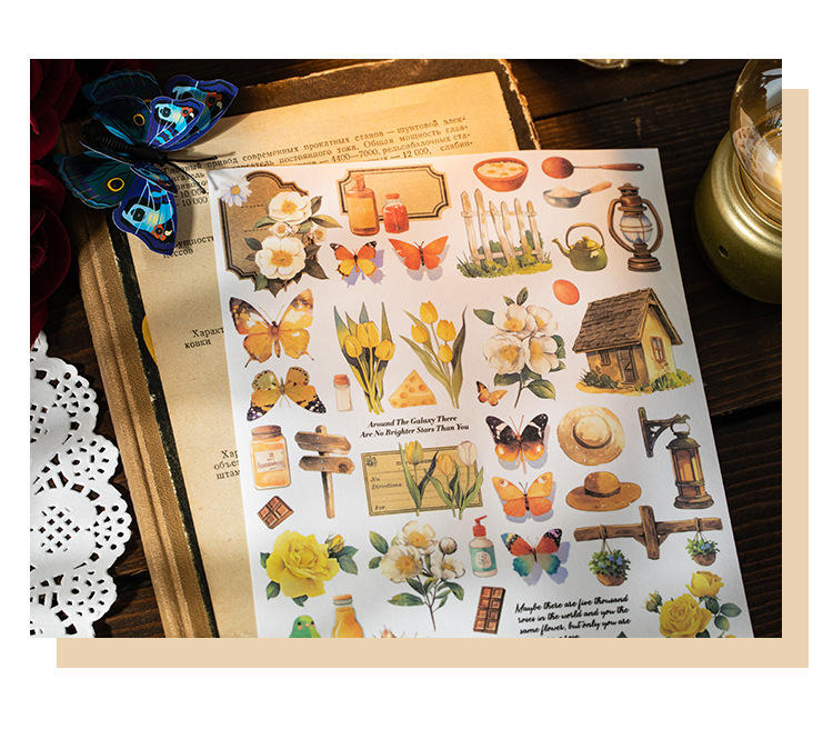 더 많은 시장 시리즈 복고풍 꽃 나비 소재 손 계정 DIY 조경 스티커를 심는 언어 레저 대형 및 종이 스티커스토어 가기