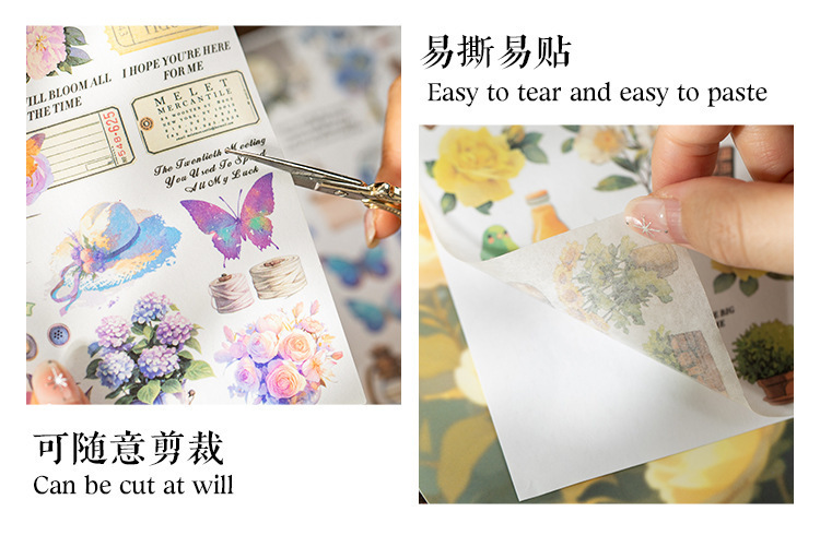 더 많은 시장 시리즈 복고풍 꽃 나비 소재 손 계정 DIY 조경 스티커를 심는 언어 레저 대형 및 종이 스티커