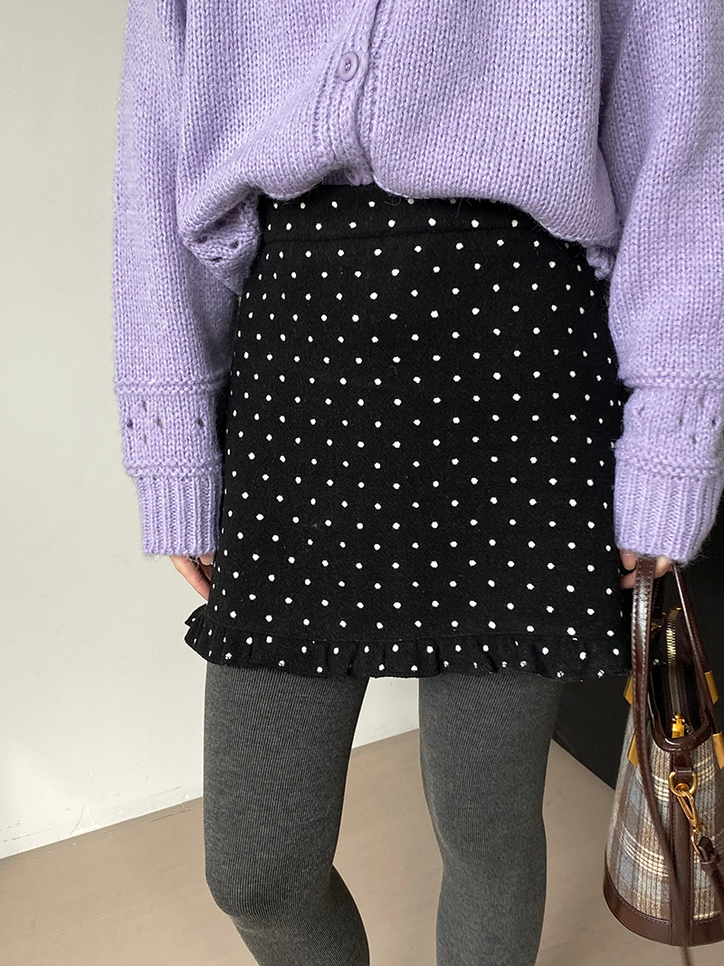 【특가 상품, 반품 불가】나모 도트 레이스 숏 스커트 여성용 한국 스타일 모직 A라인 힙허깅 스커트 2501스토어 가기