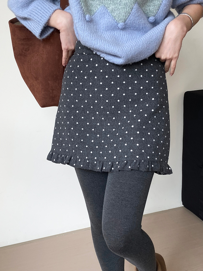 【특가 상품, 반품 불가】나모 도트 레이스 숏 스커트 여성용 한국 스타일 모직 A라인 힙허깅 스커트 2501