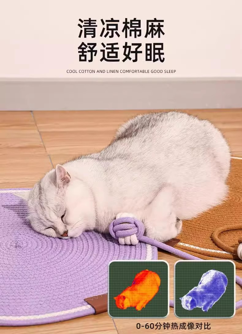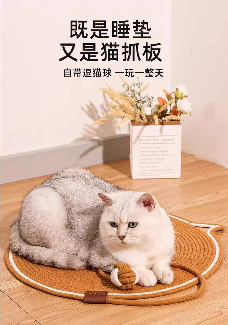 고양이 스크래치 패드, 내마모성, 흘러내림 방지, 고양이 스크래치 보드, 셀프-재미 공, 일체형 수면 매트, 면 로프로 짠 여름용 고양이 등반 매트