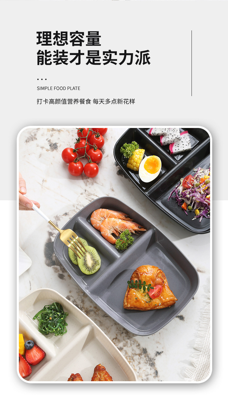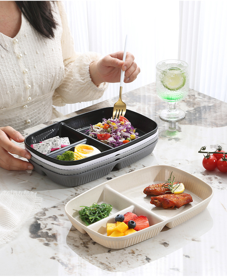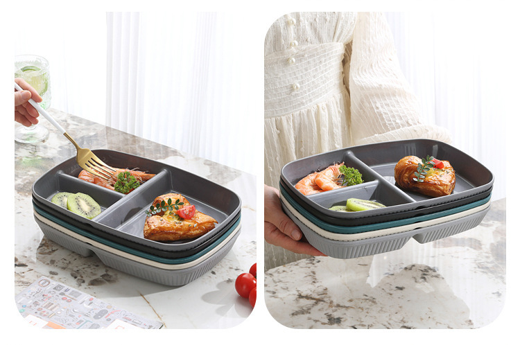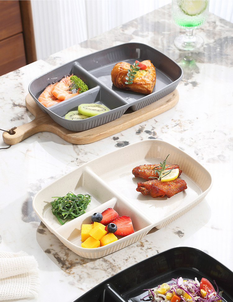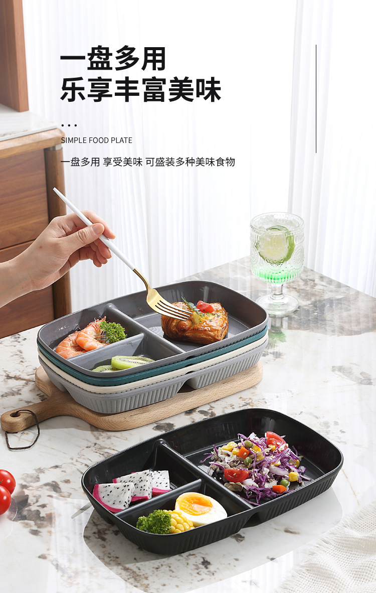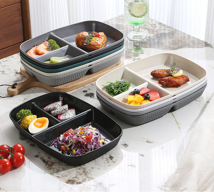 국경 간 직사각형 가정 분할 디너 플레이트 패스트 푸드 스퀘어 샐러드 분리 된 아침 식사 플레이트 지방 감소 플레이트 어린이 식탁