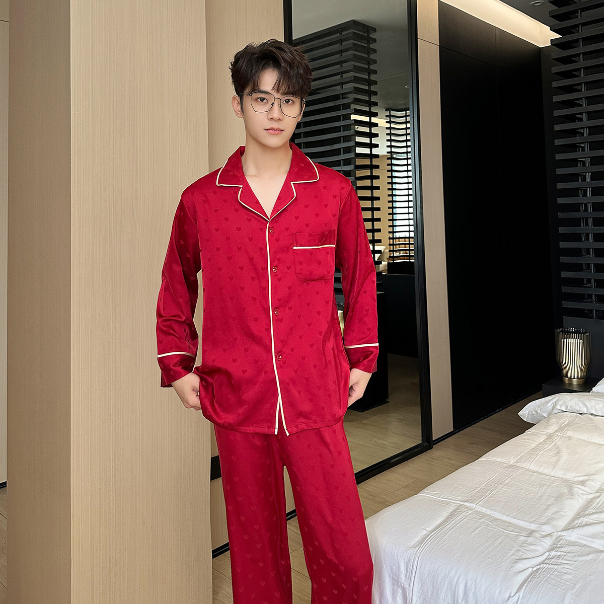 봄과 가을 새 커플 아이스 실크 긴 소매 바지 파자마 남녀 한국 카디건 실크 홈 의류 도매