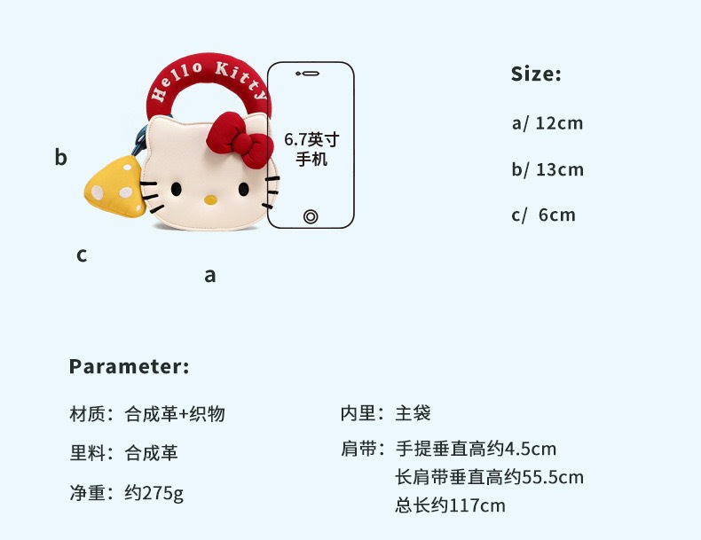 소녀 만화 KT 고양이 크로스 바디 백 미니 핸드백 휴대 전화 가방 통근 어깨 귀여운 고가치 숄더 백스토어 가기