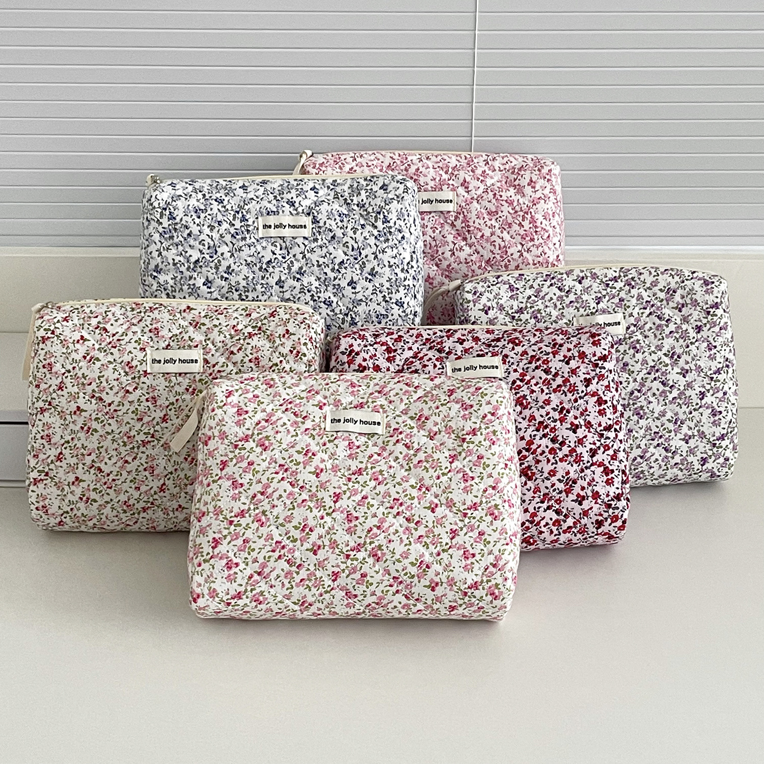 클래식 6색 꽃무늬 화장품 가방, 작고 신선한 휴대용 클러치 백, 외출용 화장품 보관 가방