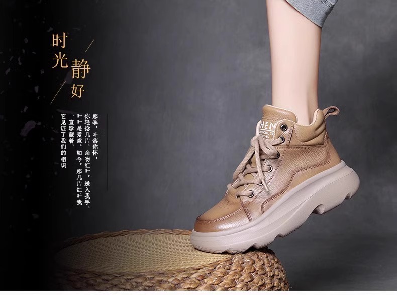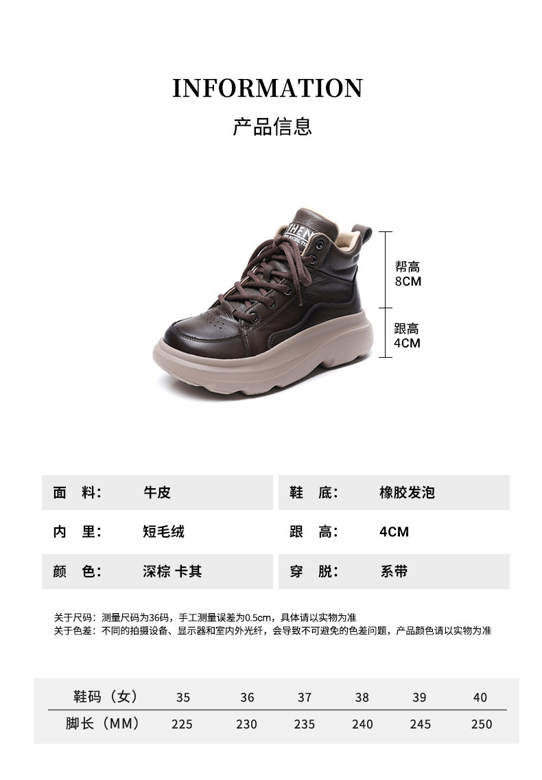 여성용 신발 2025 봄 가을 신상 천연 가죽 레트로 스타일 다용도 플러스 벨벳 보온 하이탑 캐주얼 신발 두꺼운 밑창 다용도 여성 신발스토어 가기