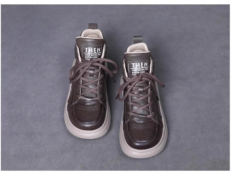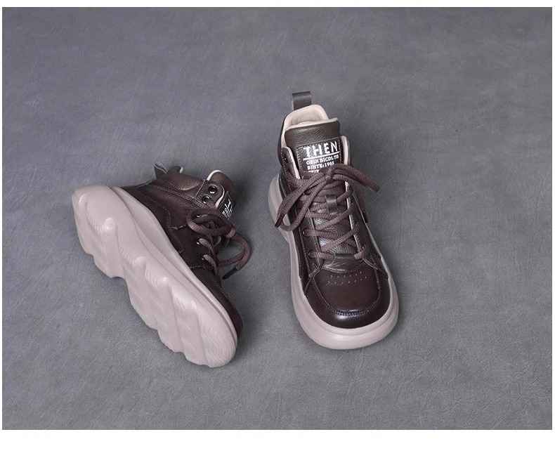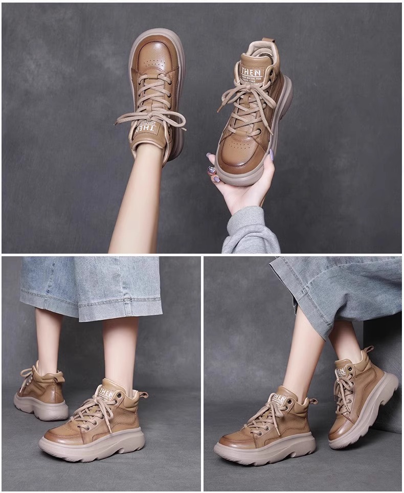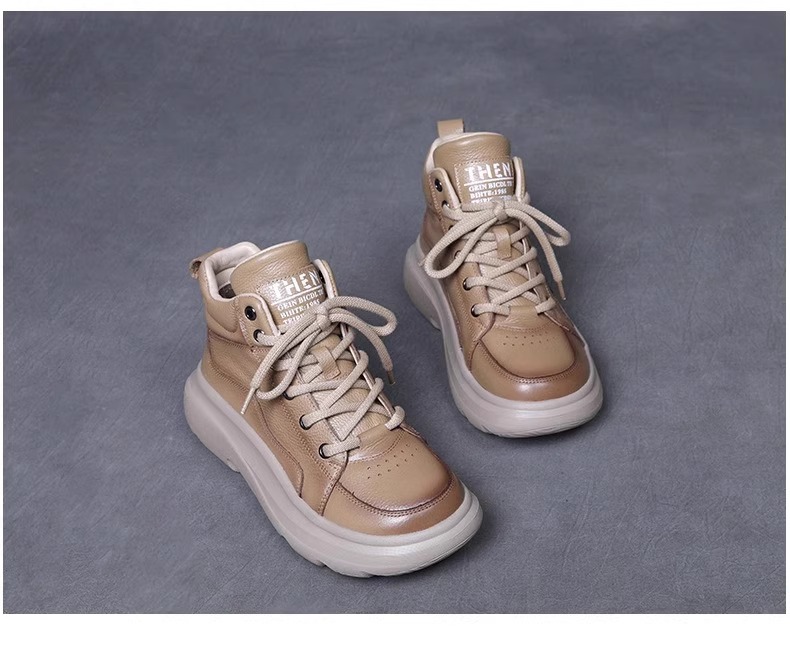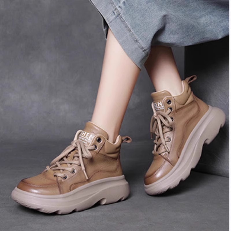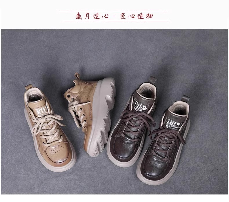 여성용 신발 2025 봄 가을 신상 천연 가죽 레트로 스타일 다용도 플러스 벨벳 보온 하이탑 캐주얼 신발 두꺼운 밑창 다용도 여성 신발