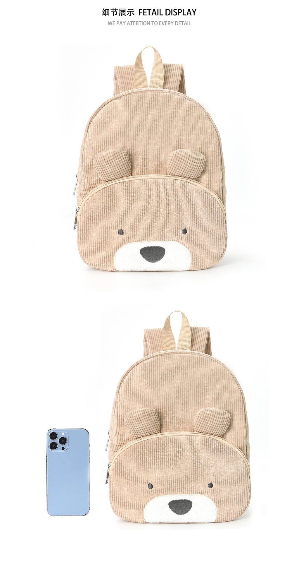 크로스보더 코듀로이 백팩 대용량 학생 만화 곰돌이 책가방 패셔너블 캐주얼 예쁜 귀여운 백팩스토어 가기