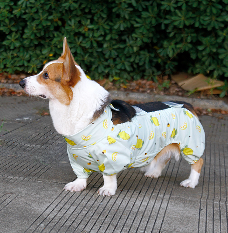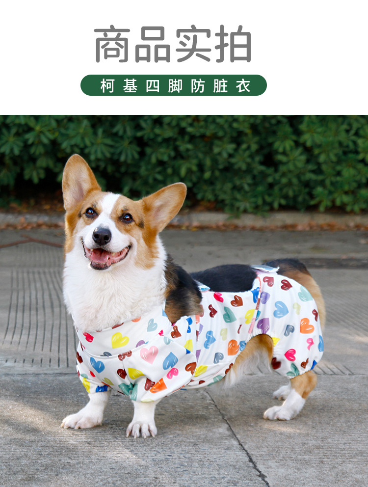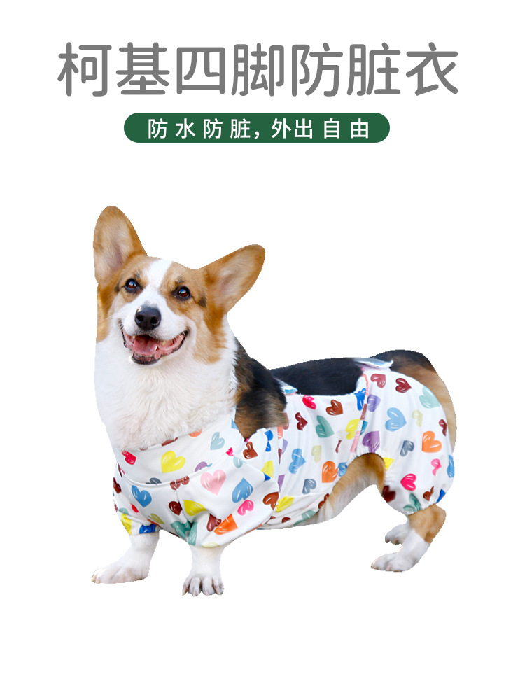코기복, 배보호복, 강아지 방수방진바지, 네발옷, 더러운 다리커버, 애완동물옷, 비옷, 반사옷