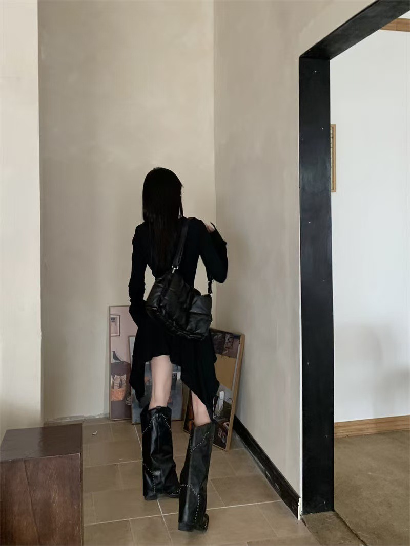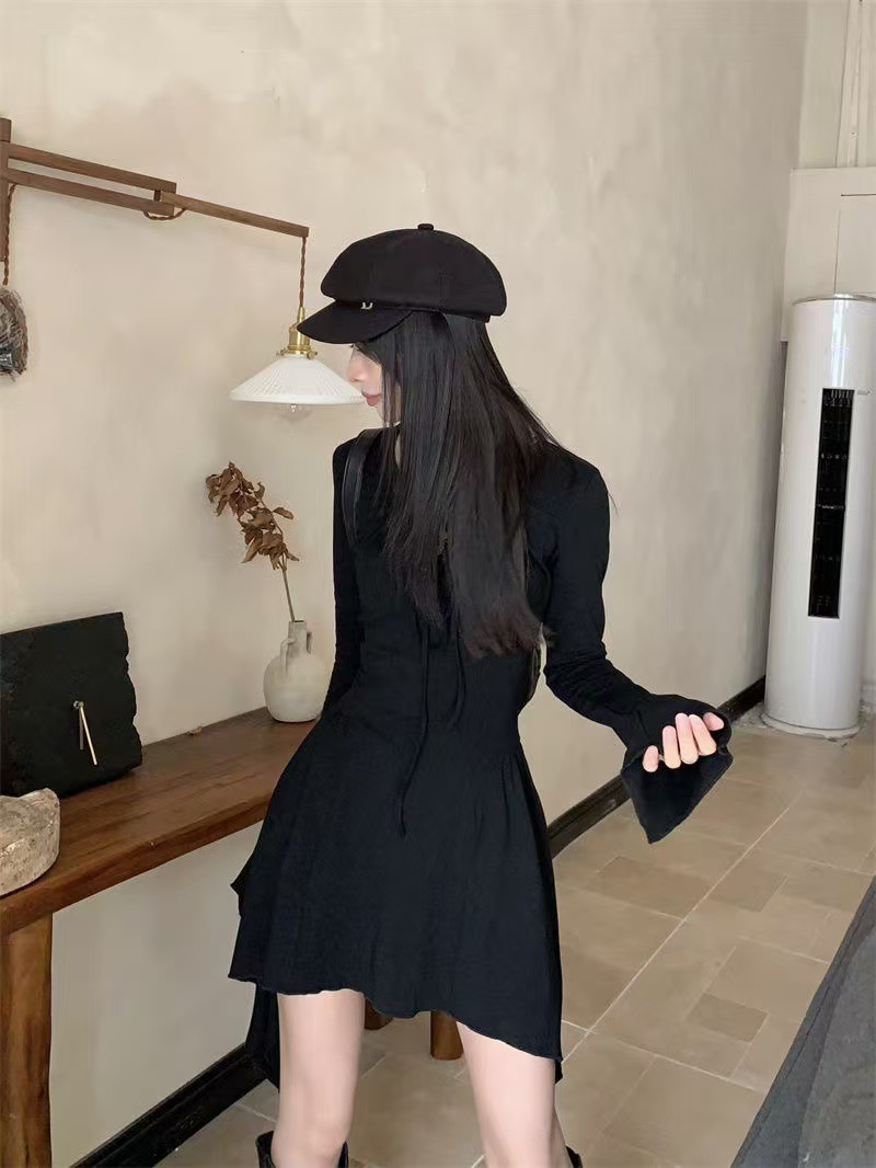 순수한 우아한 스파이스 소녀 불규칙한 긴 소매 타이트 허리 원피스 슬리밍 트럼펫 소매 엉덩이 스커트베이스 스커트스토어 가기