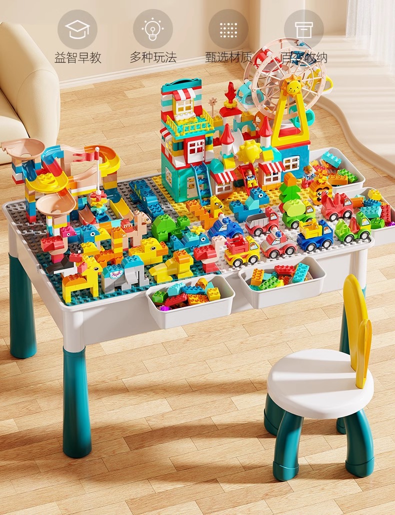 어린이 건물 블록 테이블 다기능 대형 게임 테이블 대형 입자 3 세 소년과 6 명의 아기를위한 교육 조립 장난감스토어 가기