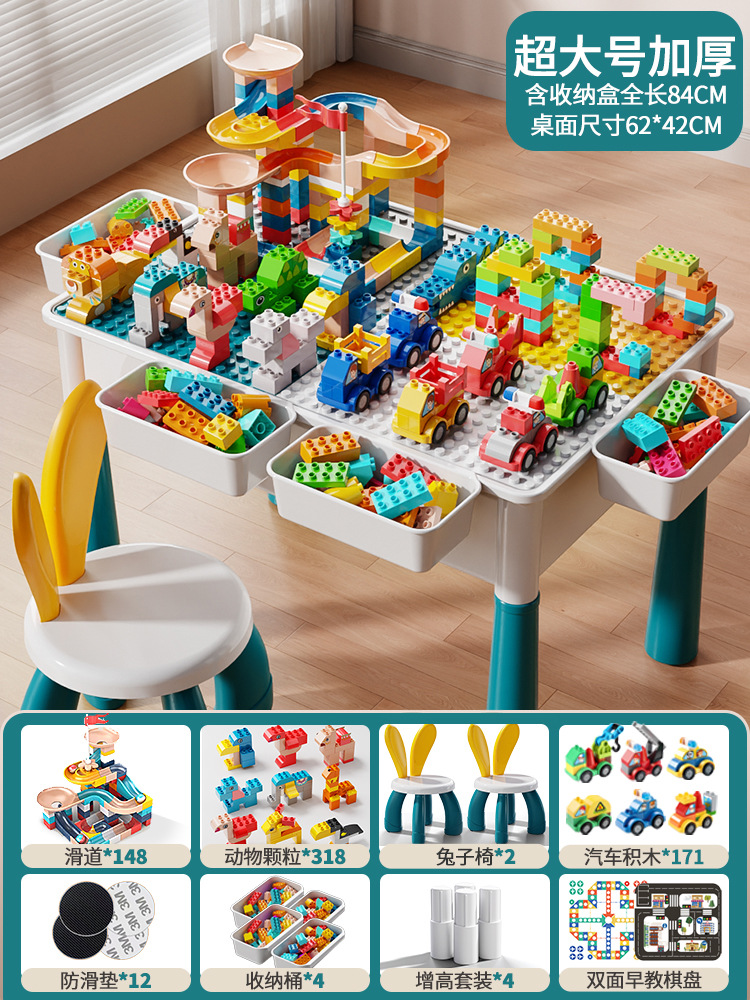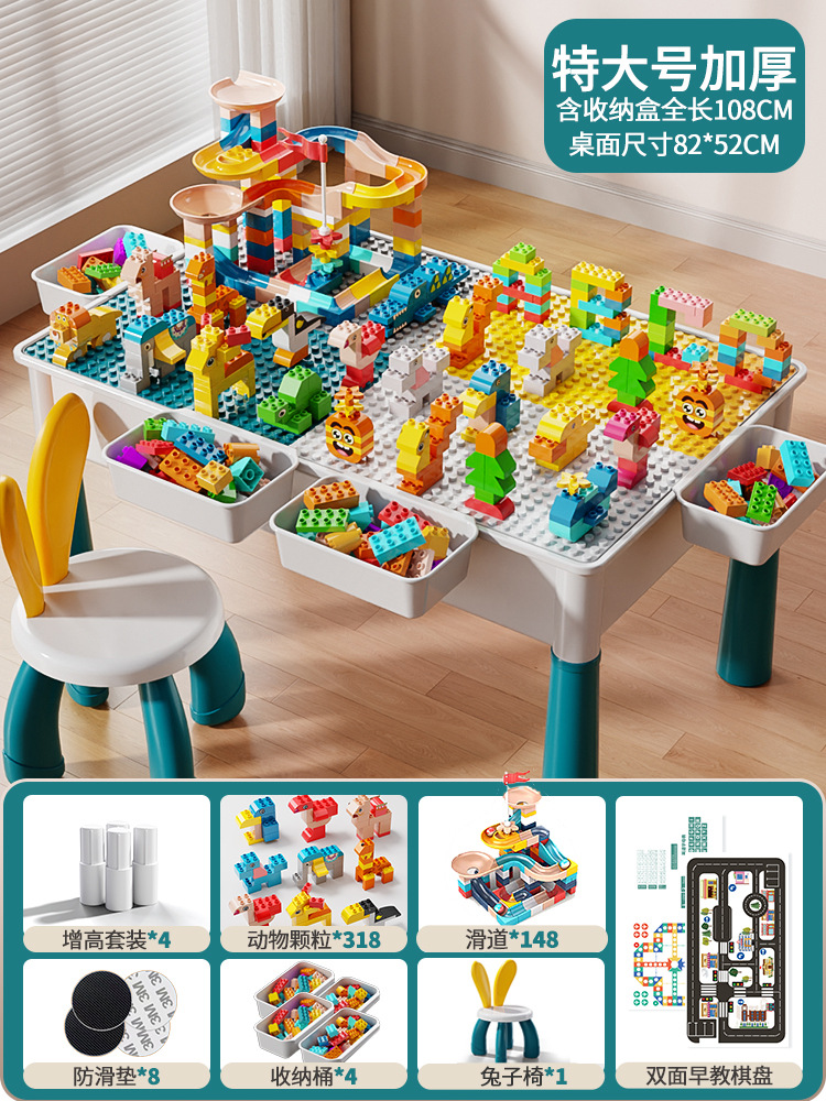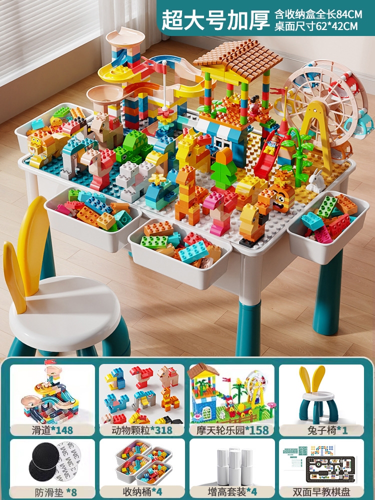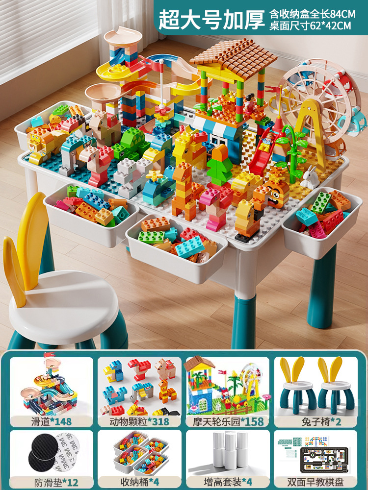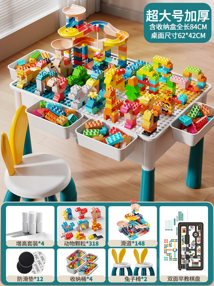 • [업그레이드된 대형 테이블] 의자 2개 + 동물 대형 빌딩 블록 318개 + 슬라이드 148개 + 재미있는 체스판 + 선물 10개