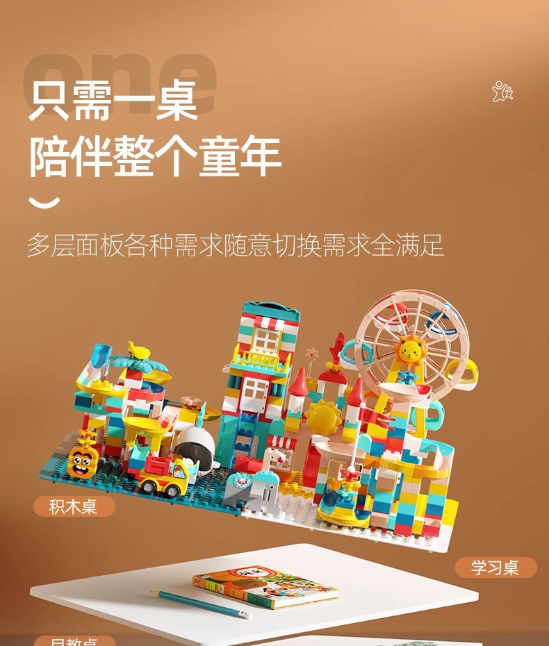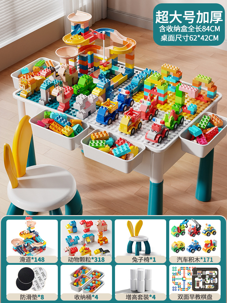 • [업그레이드된 대형 테이블] 의자 1개 + 동물 대형 빌딩 블록 318개 + 자동차 171개 + 슬라이드 148개, 무료 조기 교육 체스판