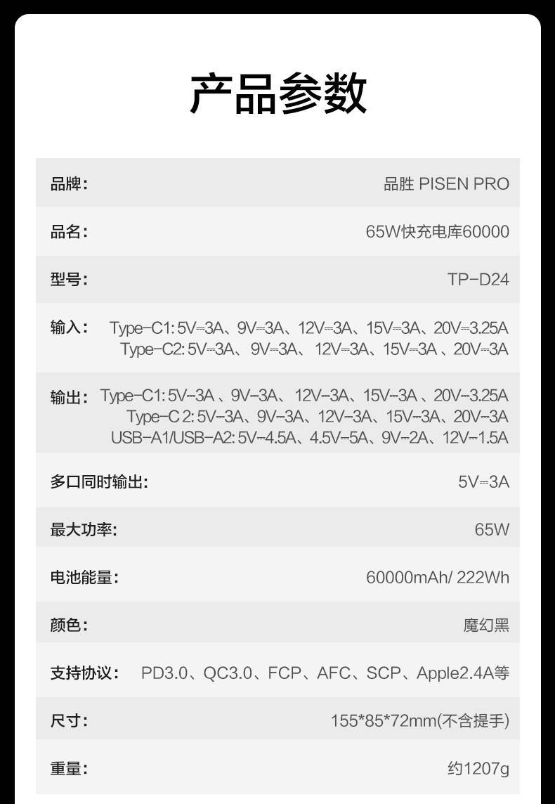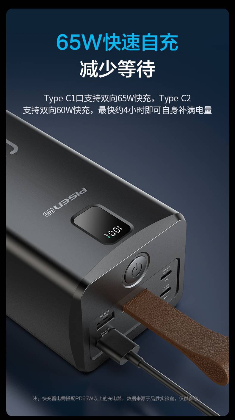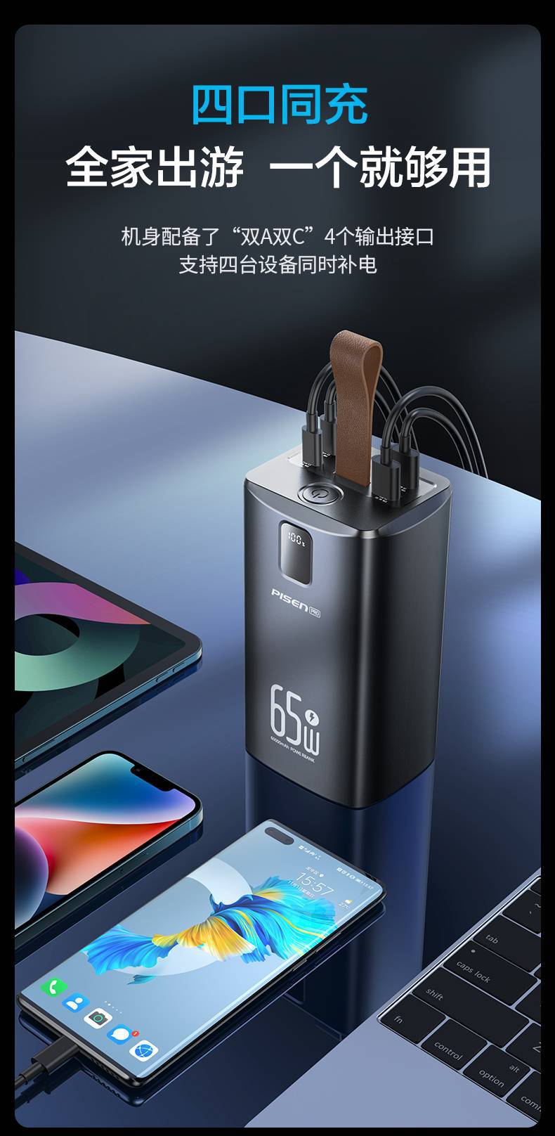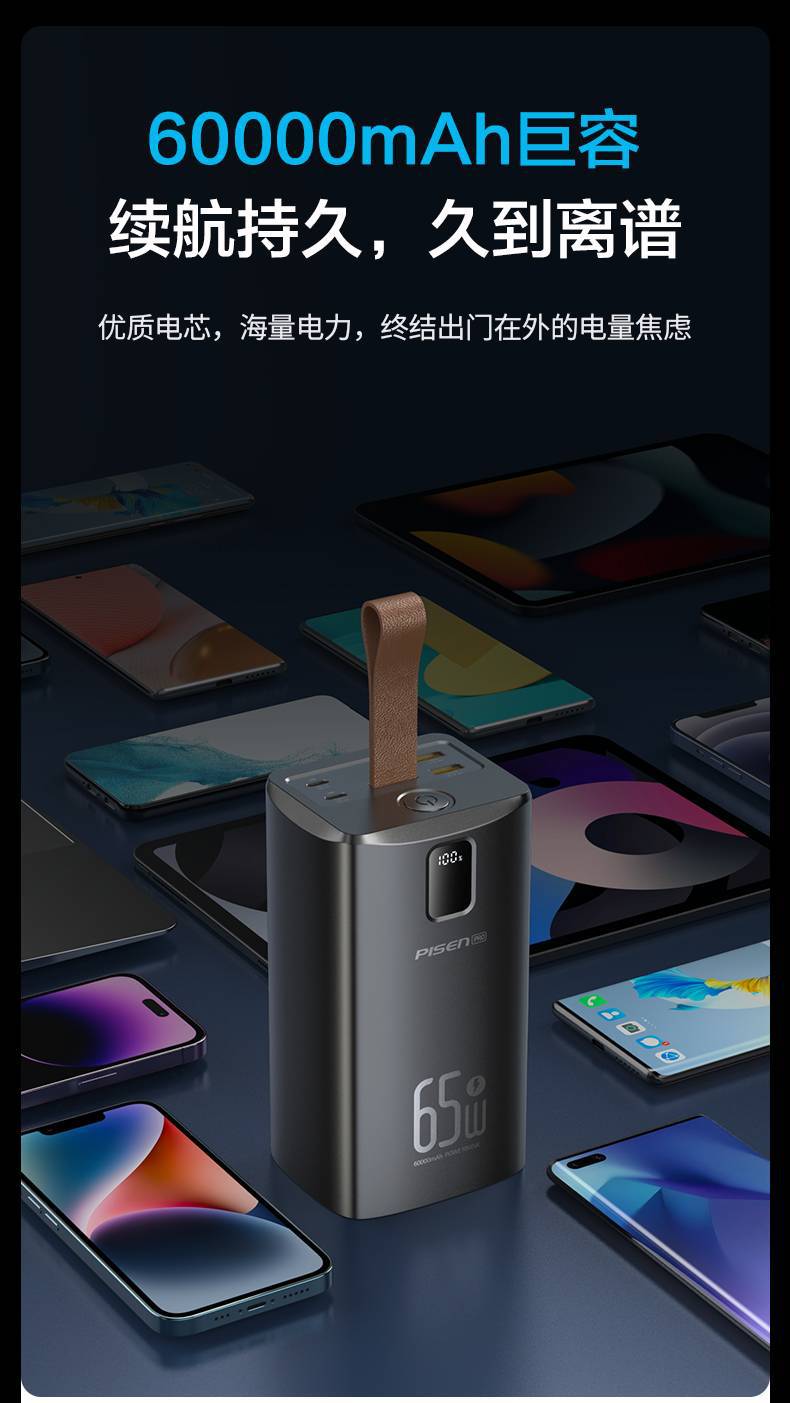 Pinsheng 65w 빠른 충전 도서관 60000 mA 대용량 충전 보물 휴대용 모바일 전원 선물 도매스토어 가기