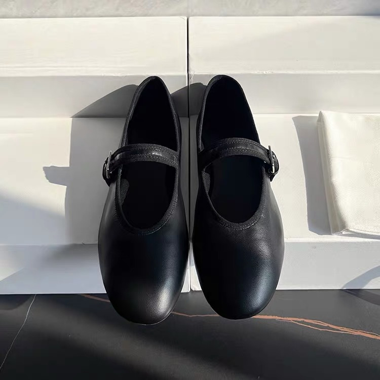 양가죽 버전 ~ 행 바람 둥근 머리 가죽 복고풍 싱글 신발 여성 여름 메리 제인 신발 발레 플랫 슈즈와 함께 한 단어스토어 가기