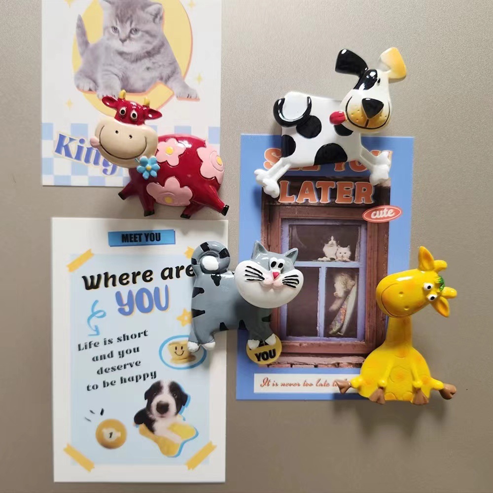 한국 귀여운 동물 봄 흔들리는 머리 메시지 냉장고 스티커 만화 창조적 인 자기 흡착 장식 자석 주방 팩