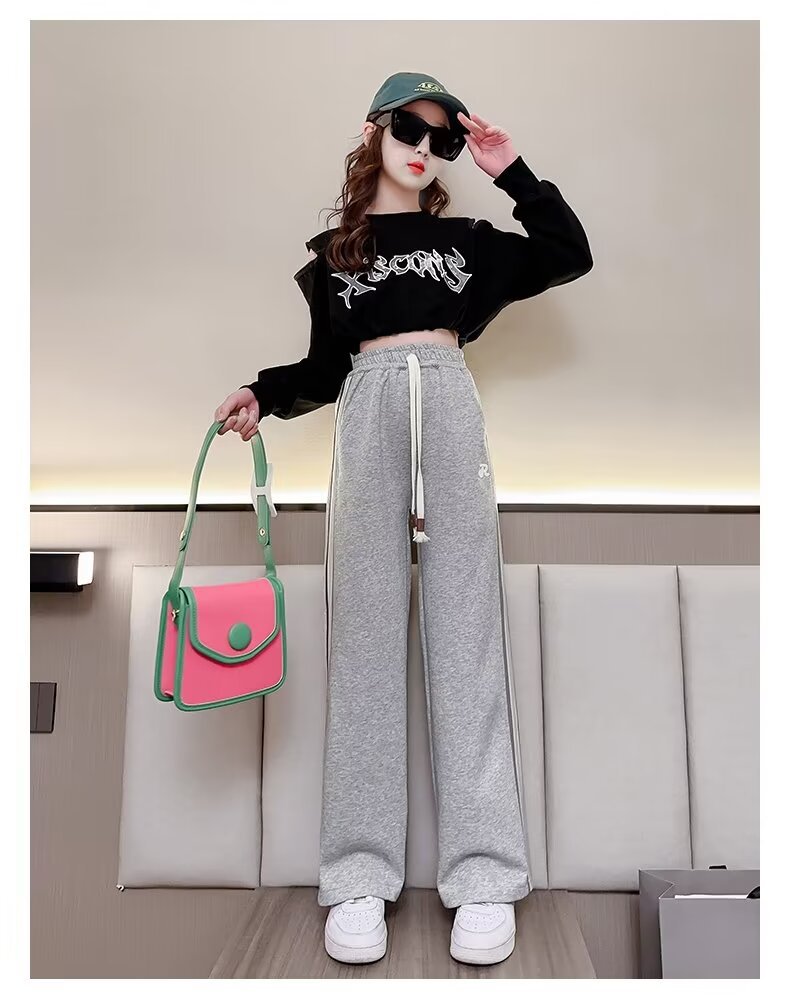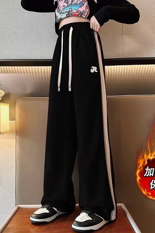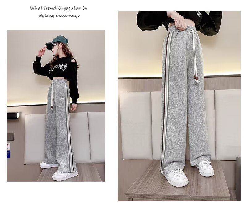 가을 소녀의 캐주얼 넓은 다리 바지 봄과 가을 니트 긴 바지 한국 스타일 소녀의 스트레이트 느슨한 큰 소년