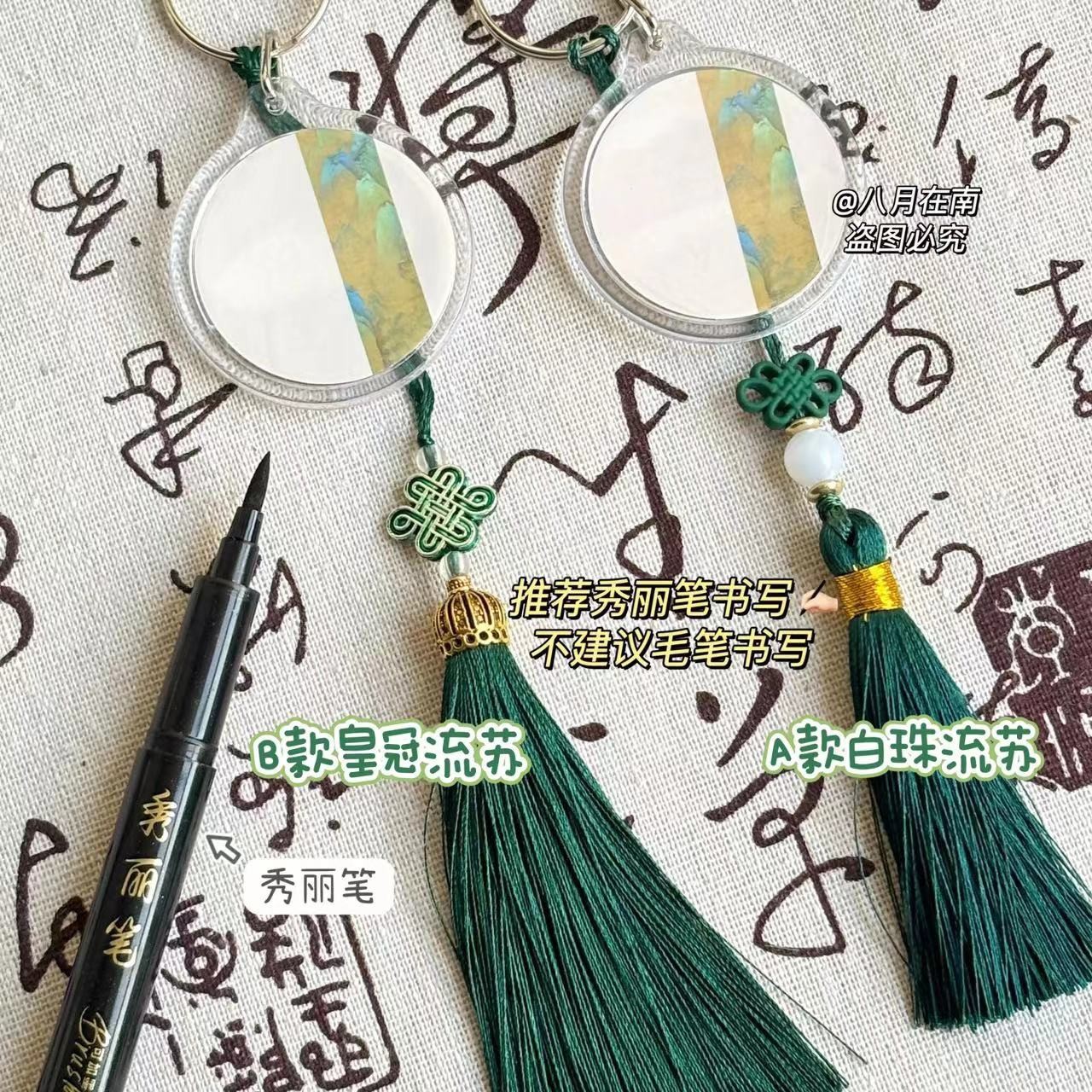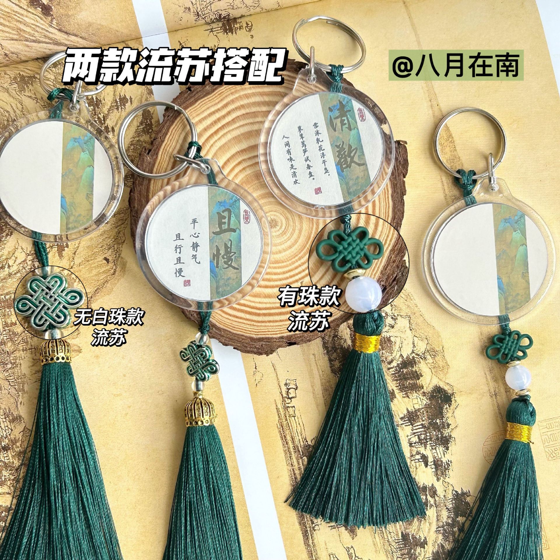다 리 라운드 수천 마일 강산 그림 빈 학생 diy 손으로 쓴 서예 키 체인 작은 종이 골동품 새로운 흐름스토어 가기