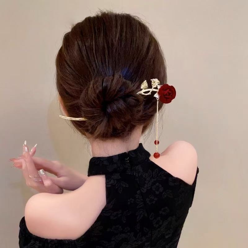 새해 골동품 빨간 장미 머리띠 여성용 머리 디스크 머리 머리 머리 머리 머리 술 한푸 청삼 우아한 고급 헤드웨어스토어 가기