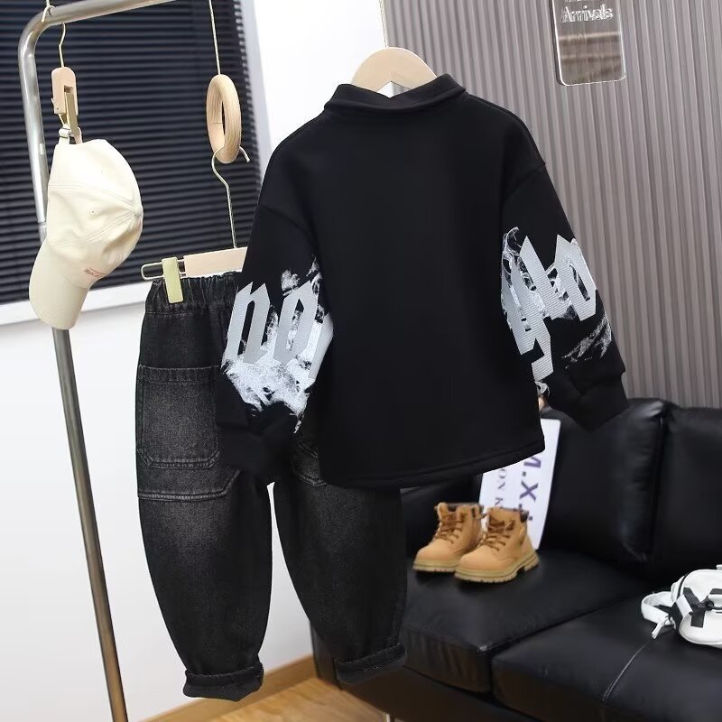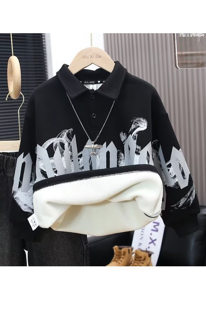 남학생 겨울 옷 큰 어린이 기모 가을 겨울 땀 2024 새로운 어린이 겨울 원피스 벨벳 탑 두꺼운 서양식스토어 가기