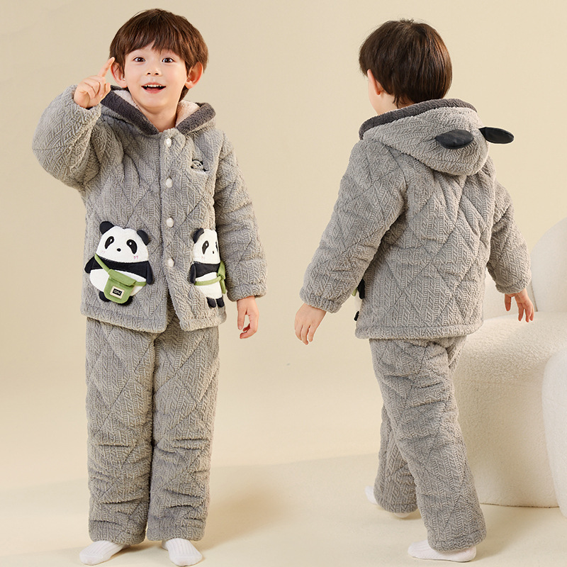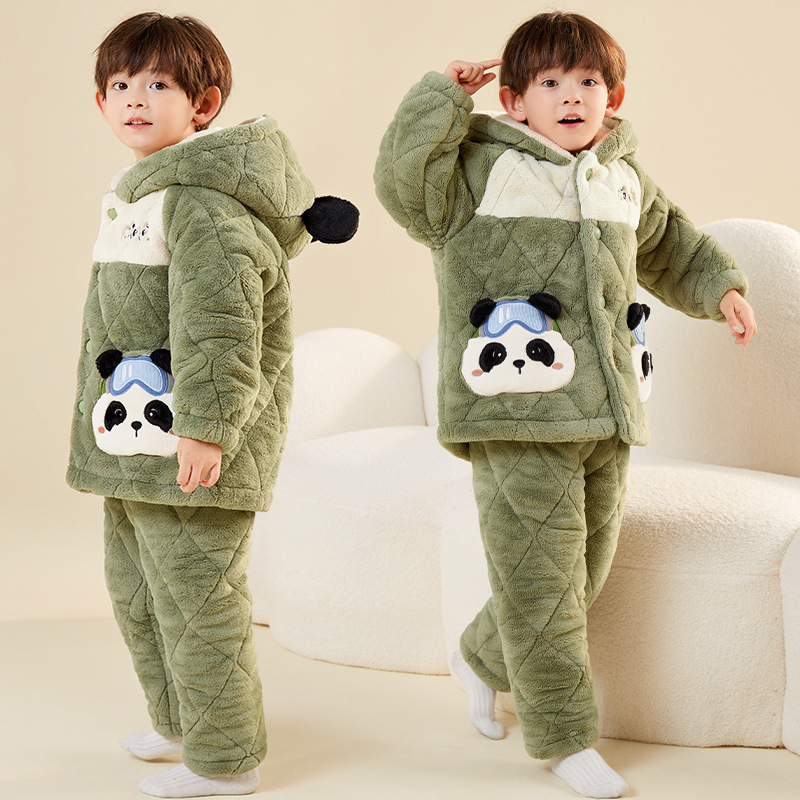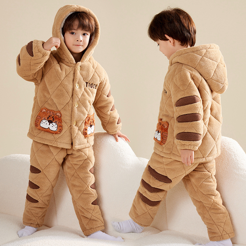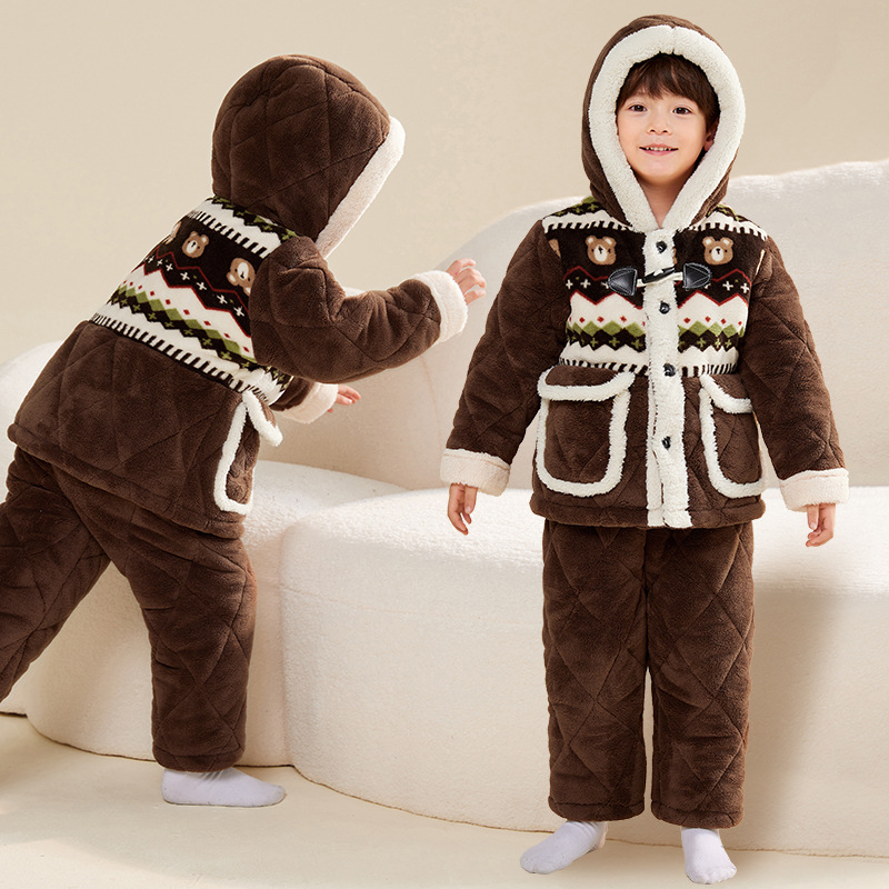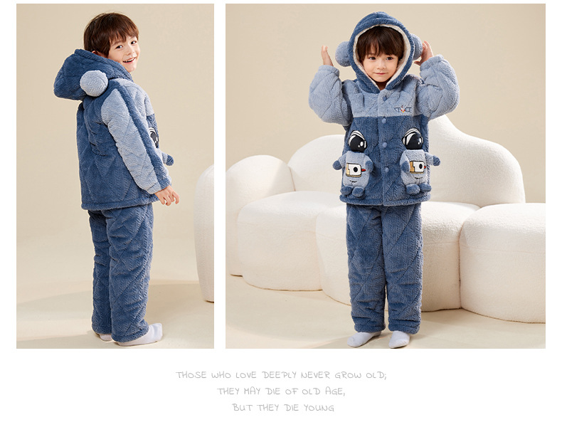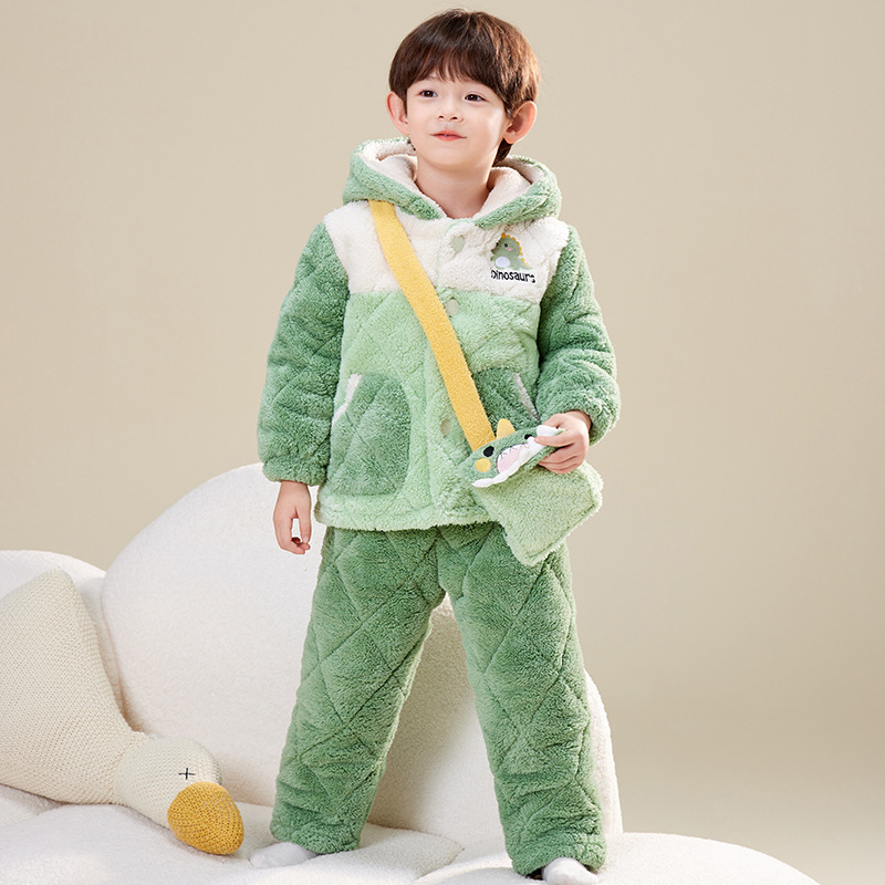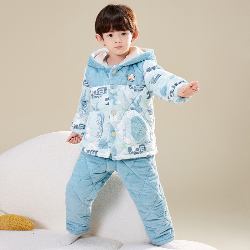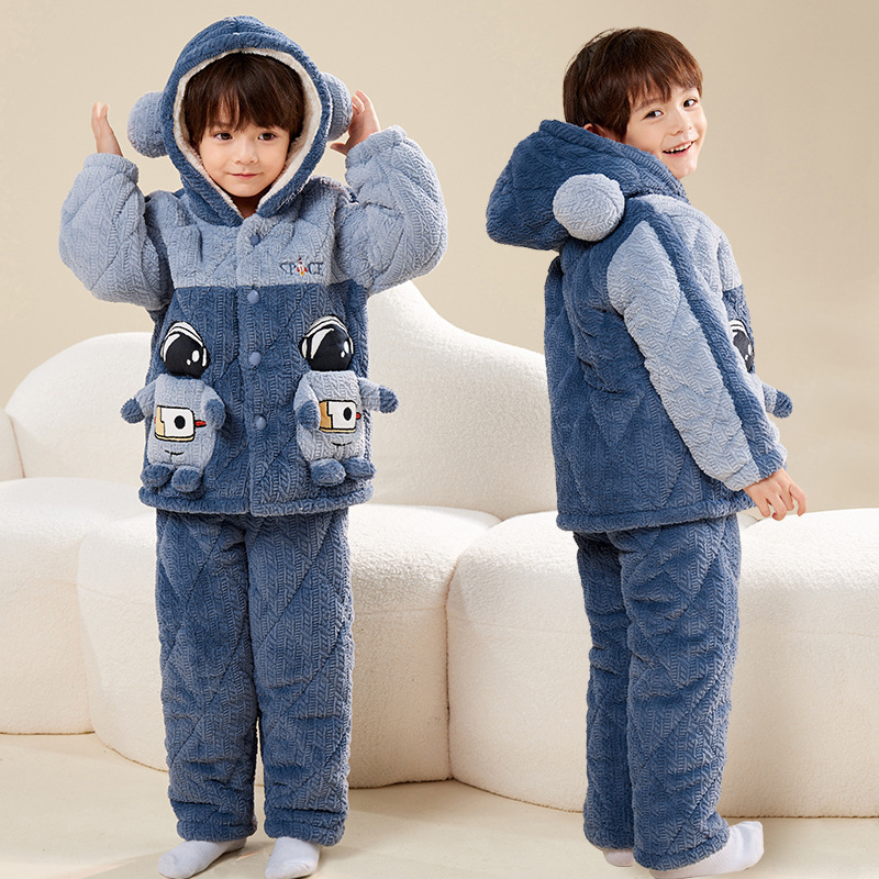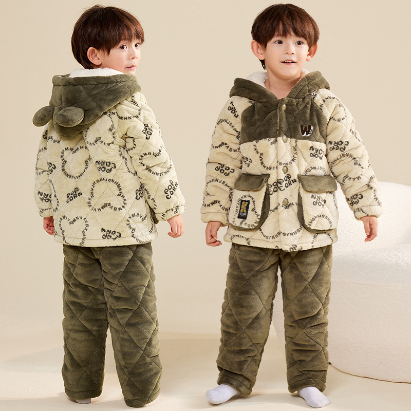2024 년 어린이 잠옷 소년 겨울 패딩 겨울 소년 산호 양털 3 층면 및 벨벳 세트 도매스토어 가기