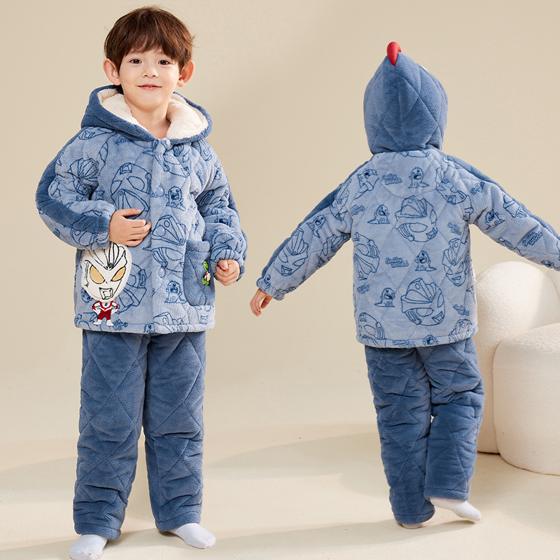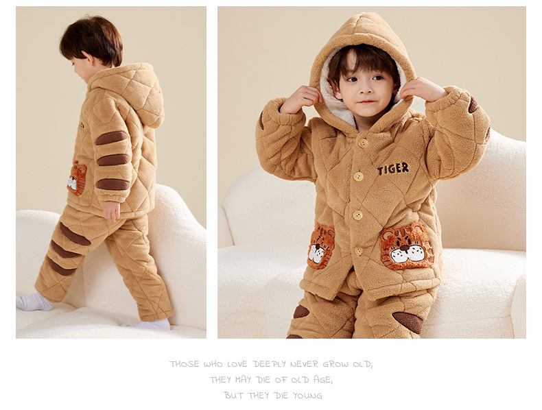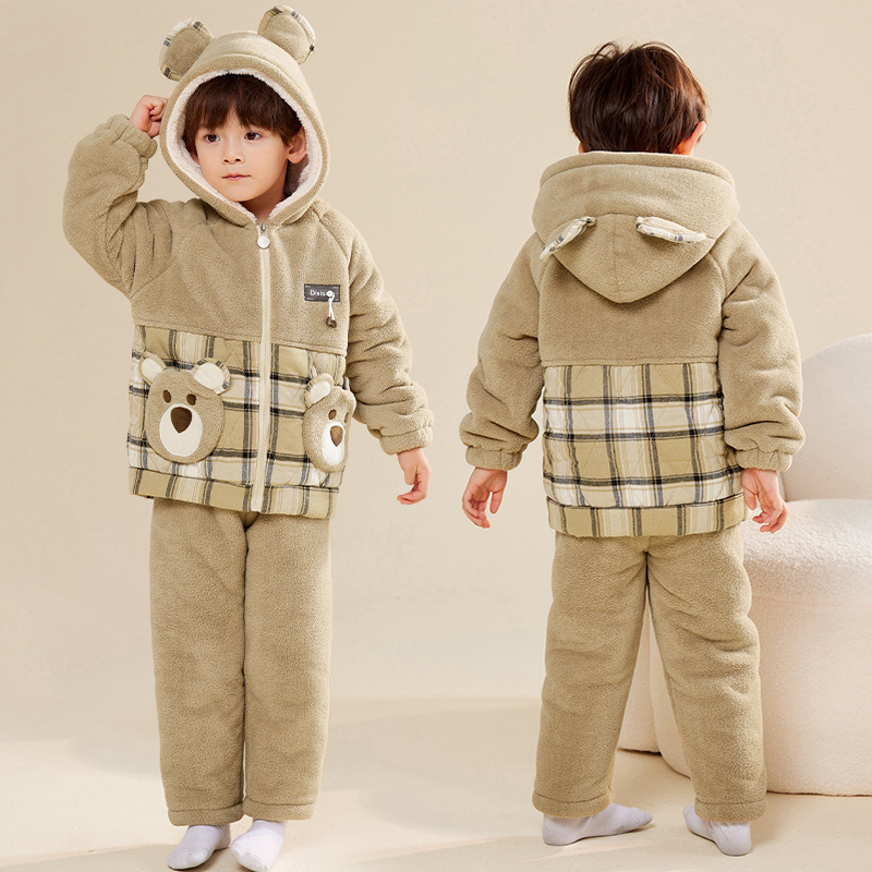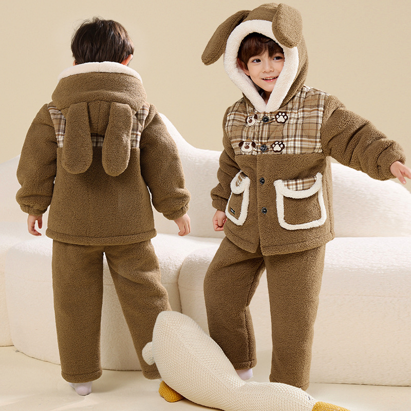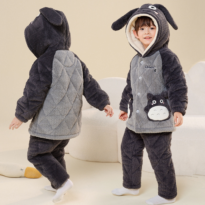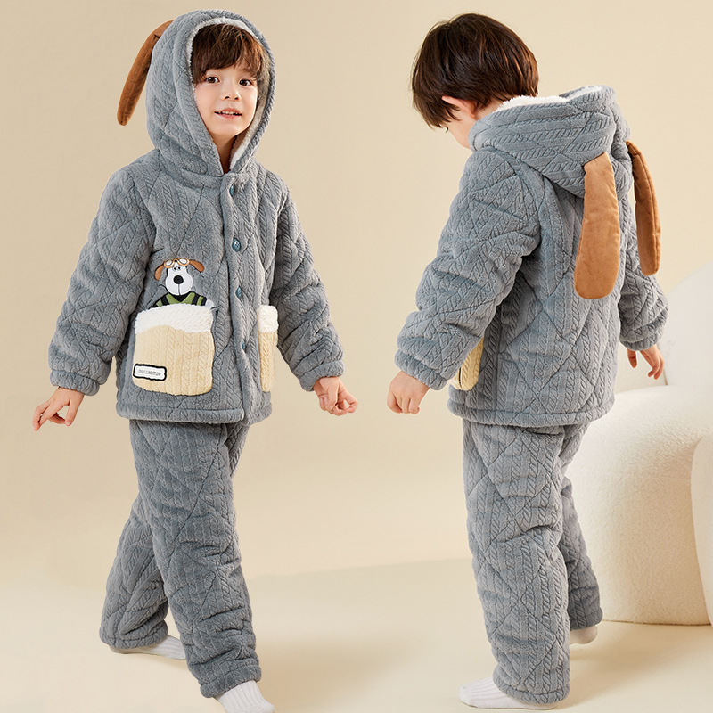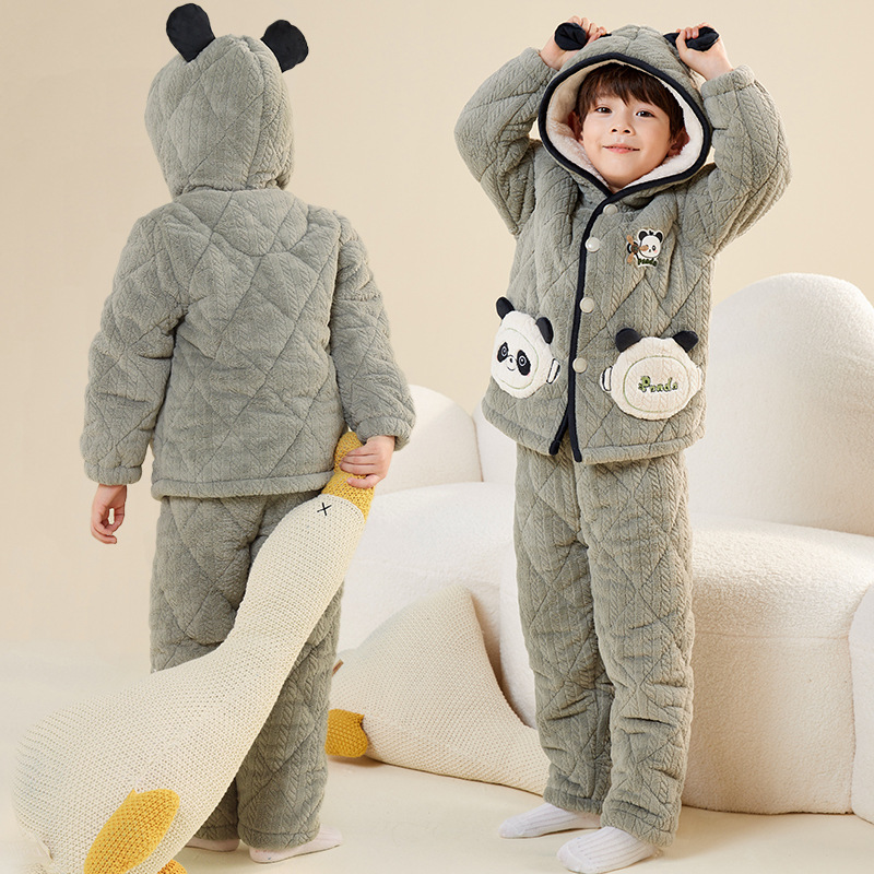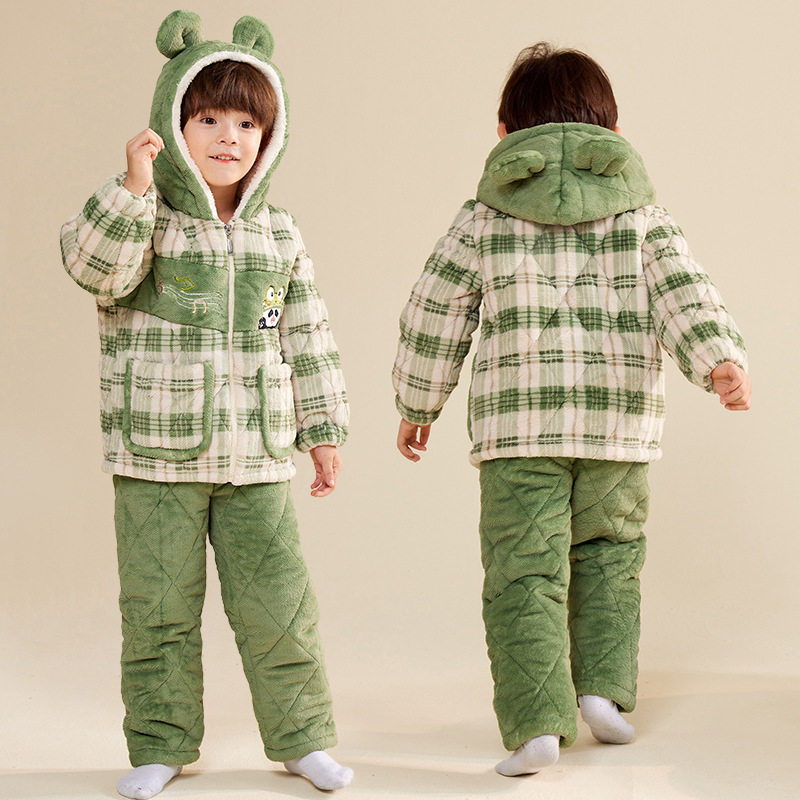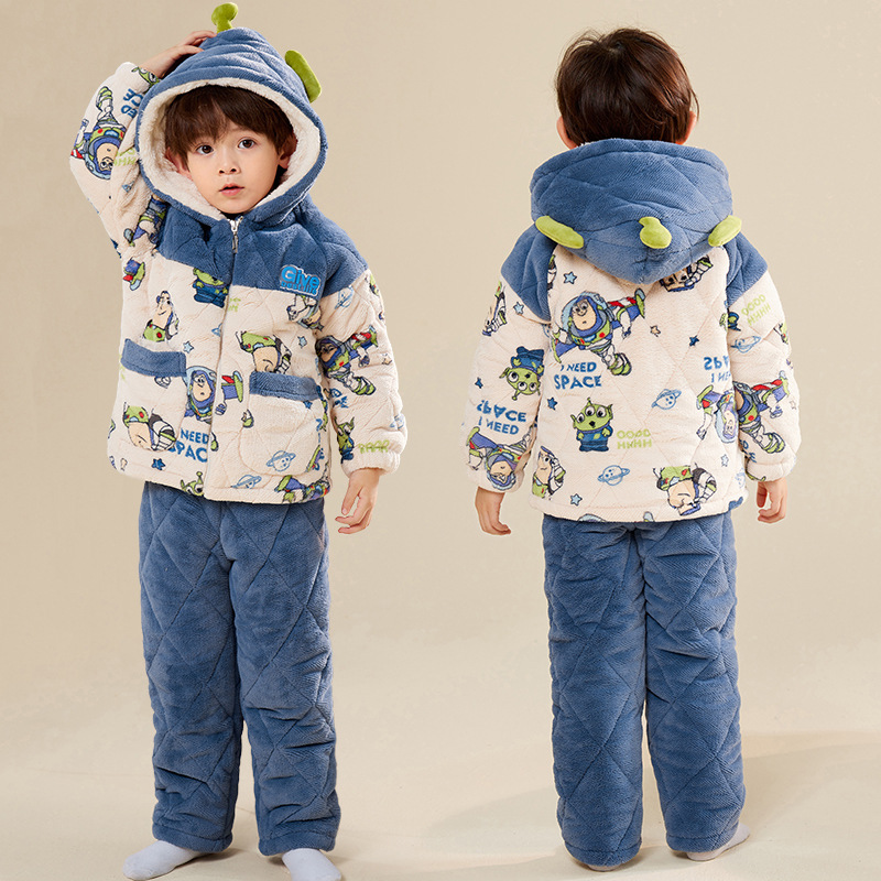 2024 년 어린이 잠옷 소년 겨울 패딩 겨울 소년 산호 양털 3 층면 및 벨벳 세트 도매스토어 가기