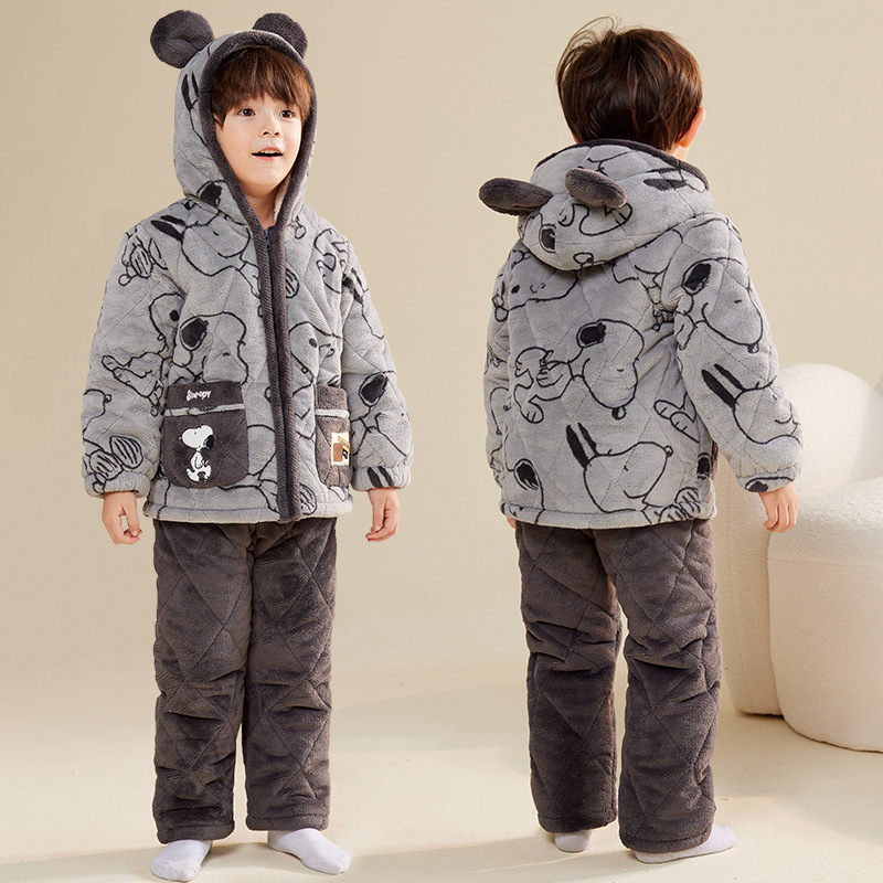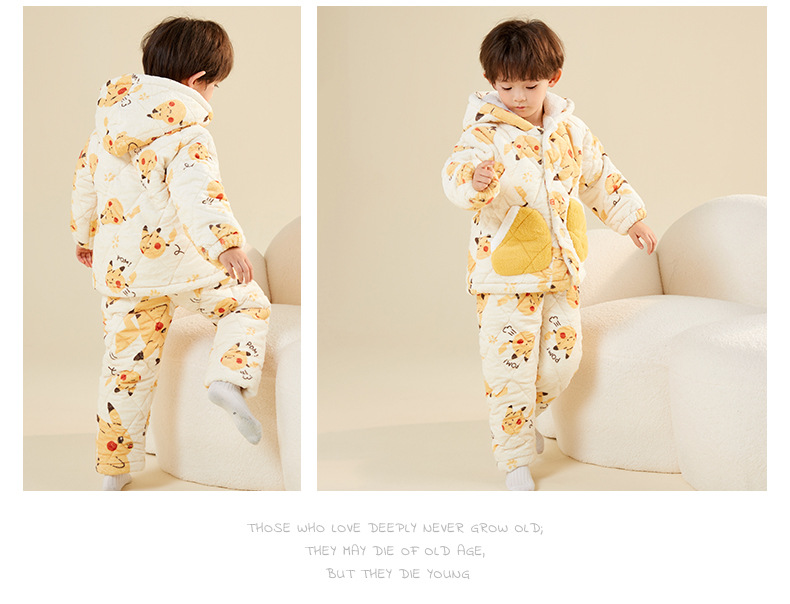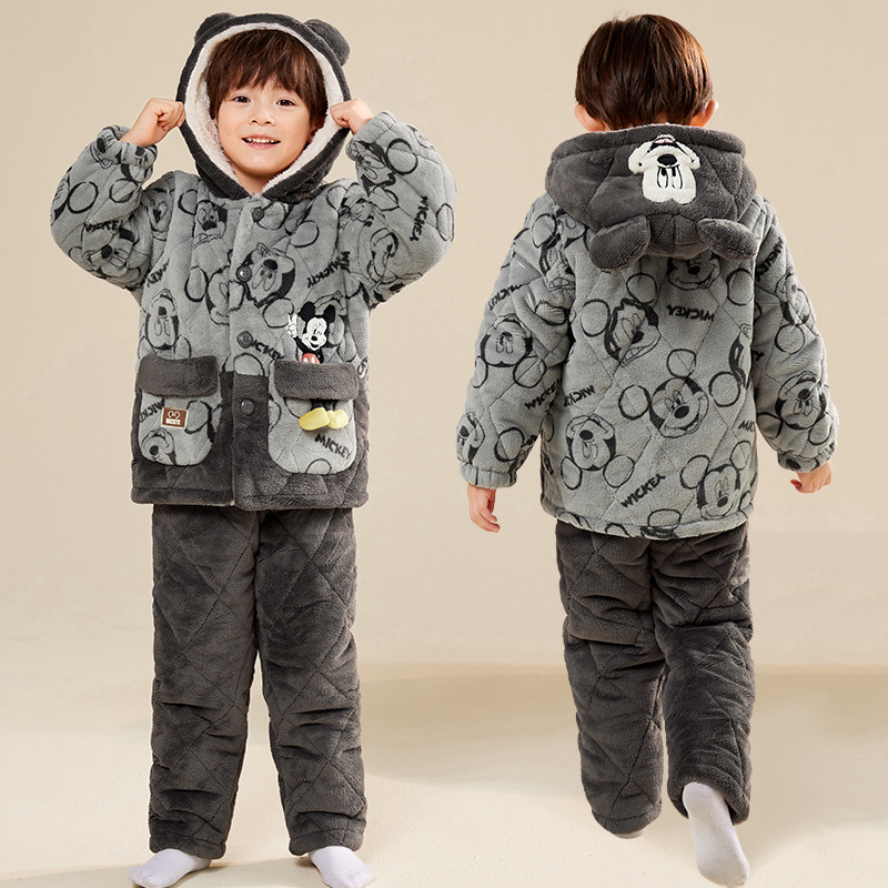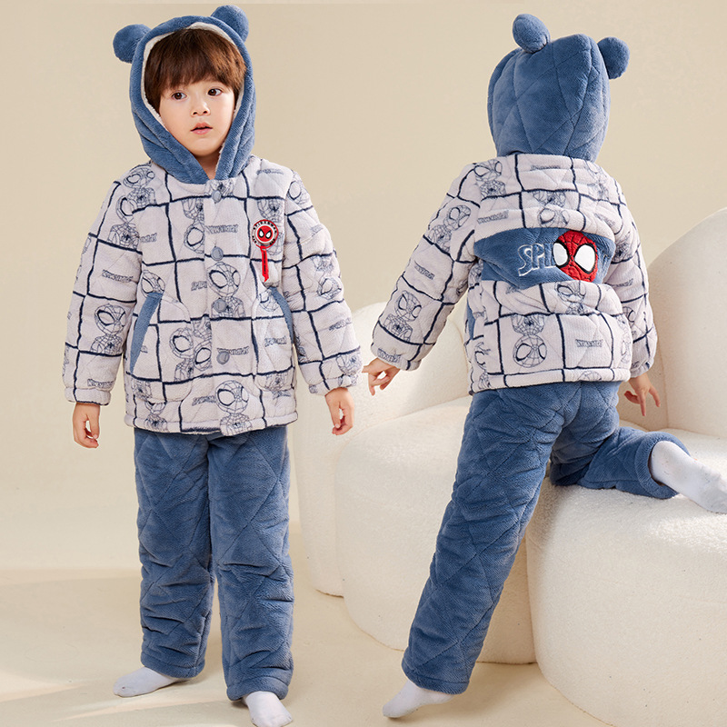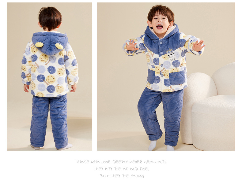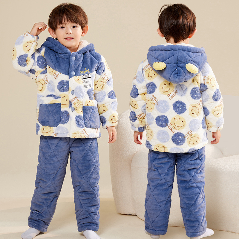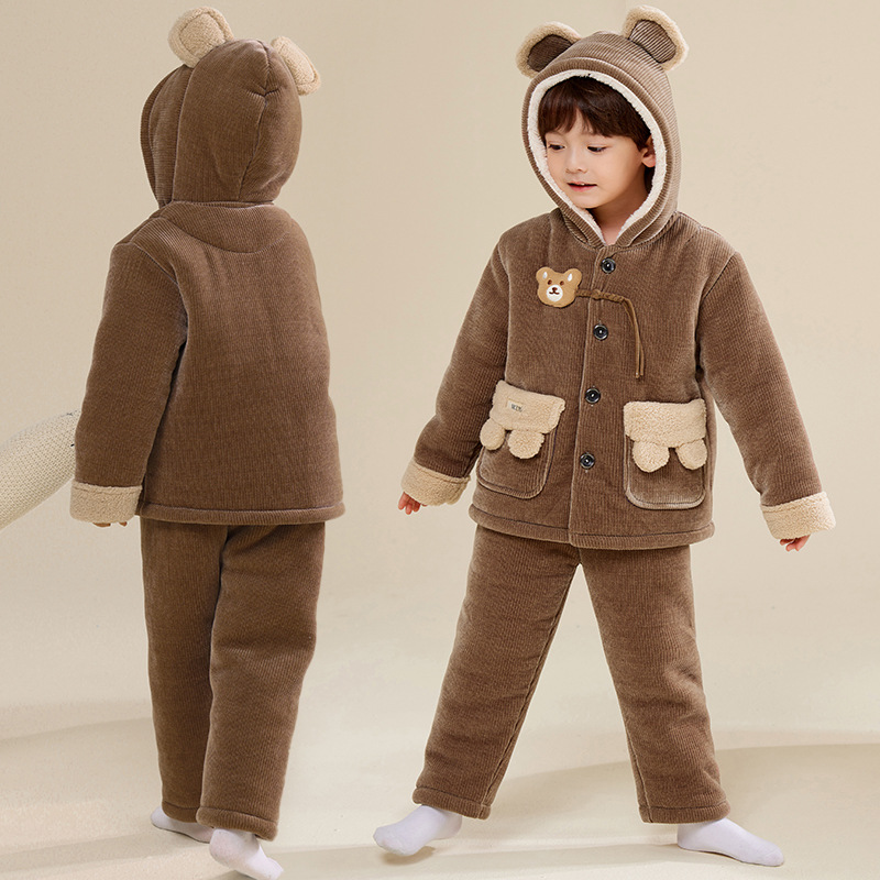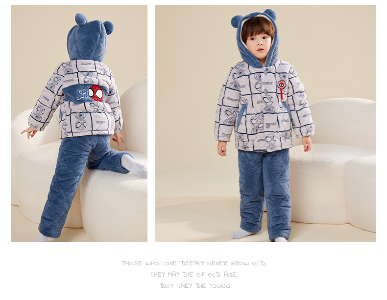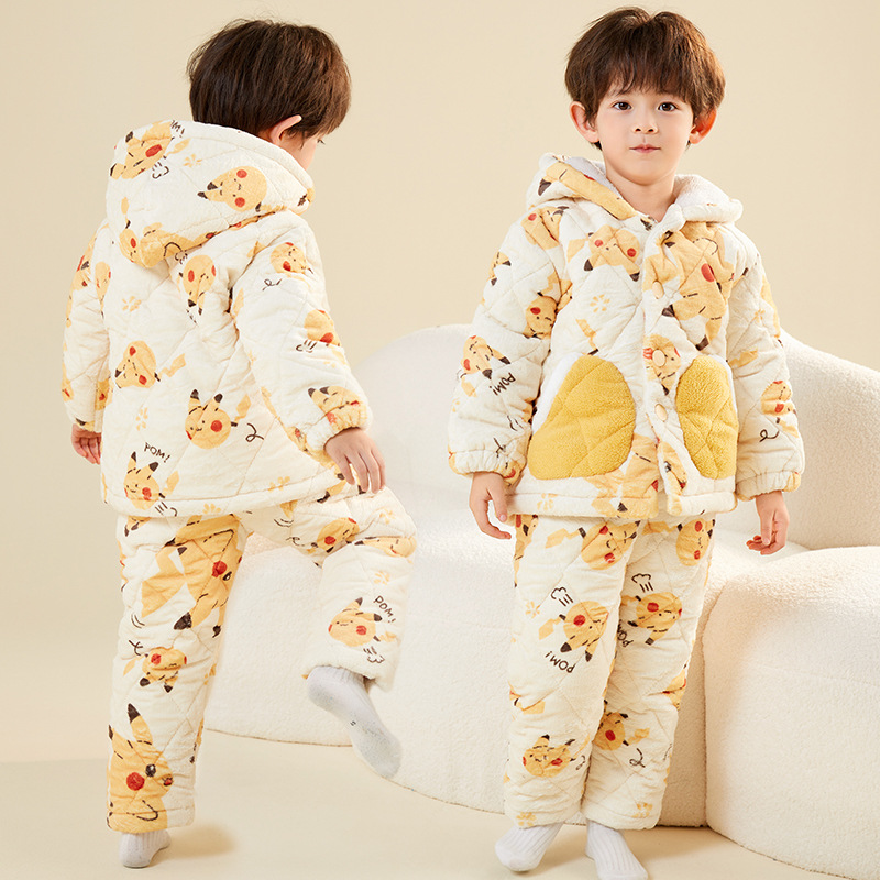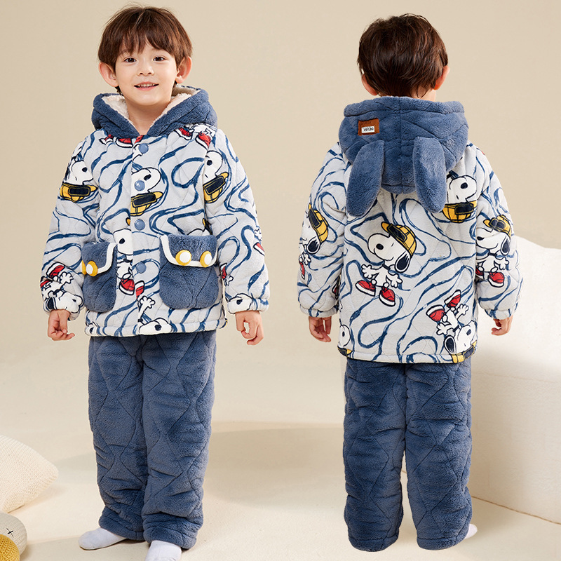 2024 년 어린이 잠옷 소년 겨울 패딩 겨울 소년 산호 양털 3 층면 및 벨벳 세트 도매스토어 가기