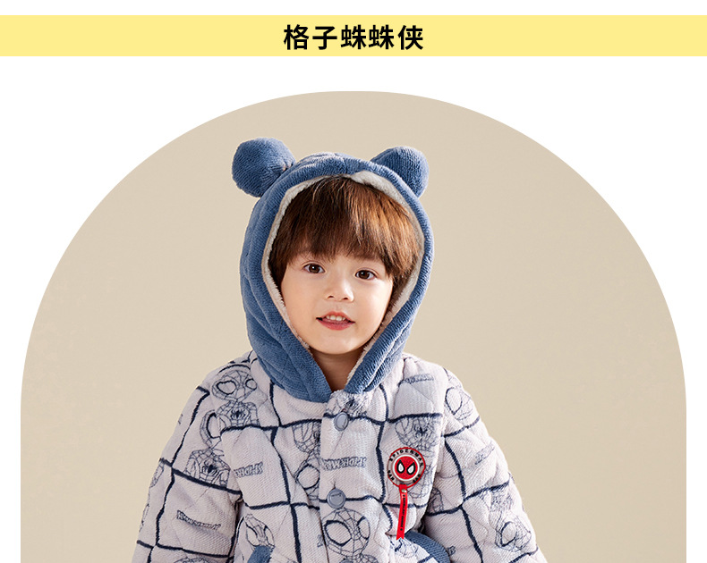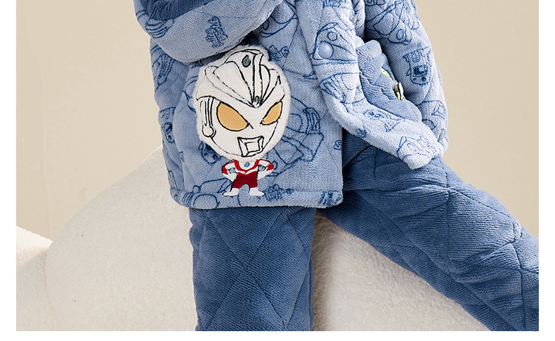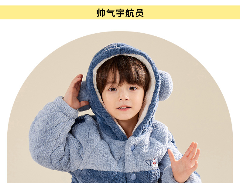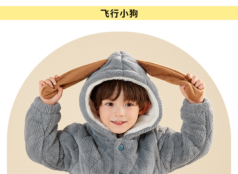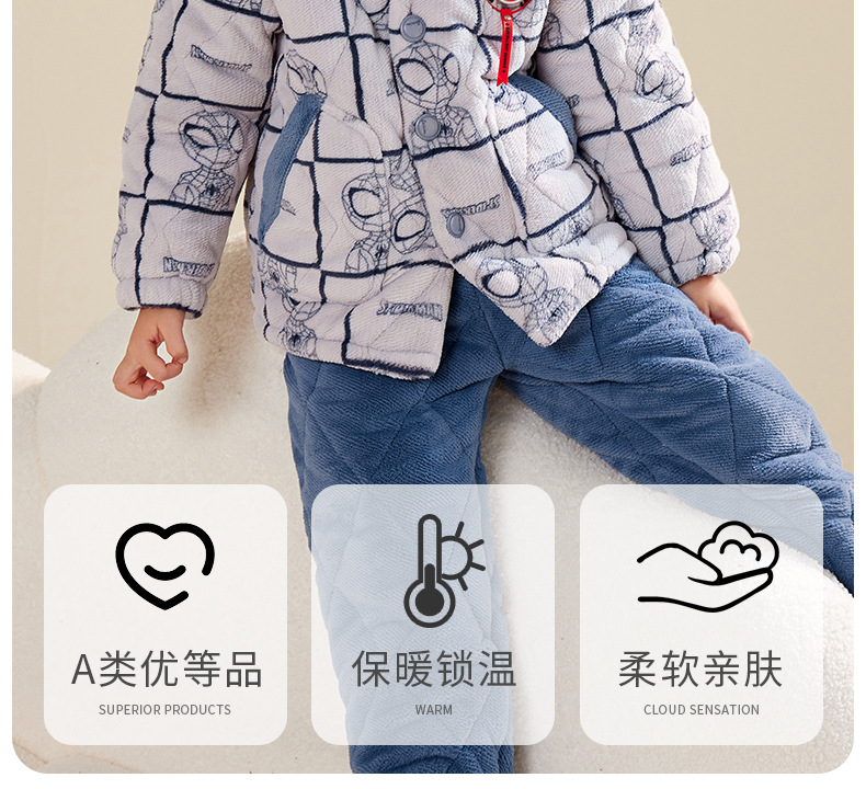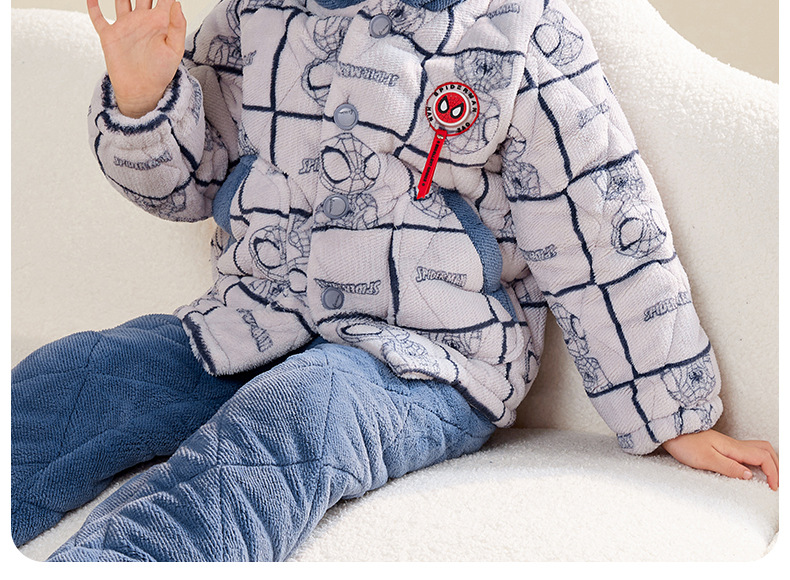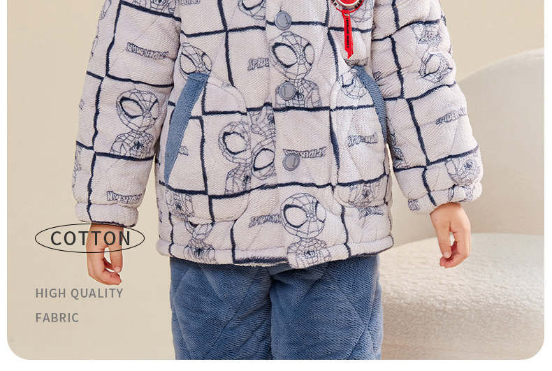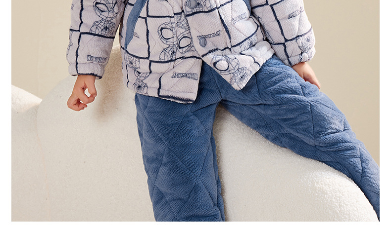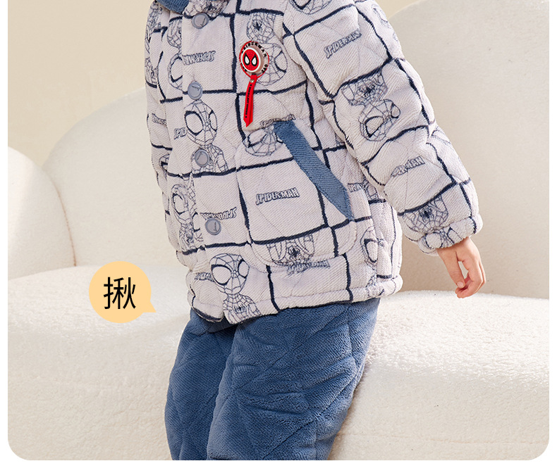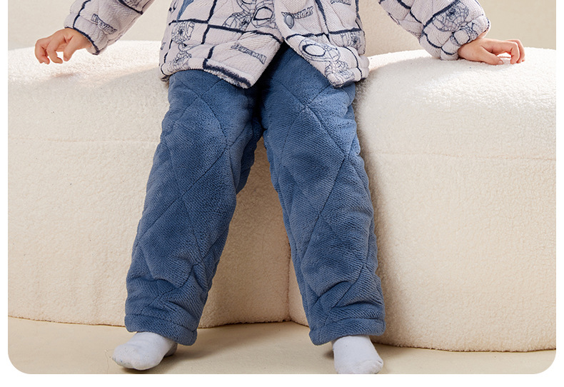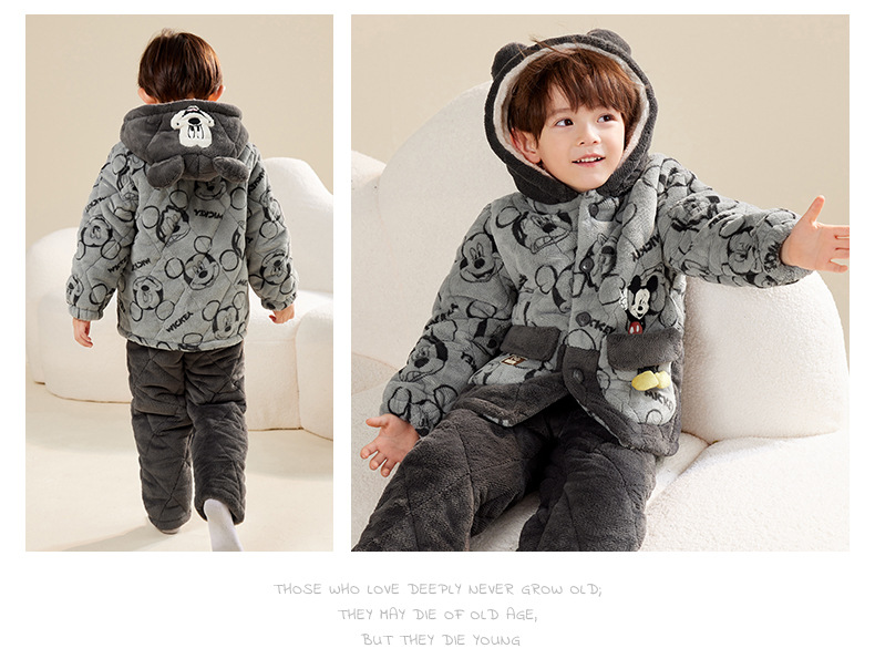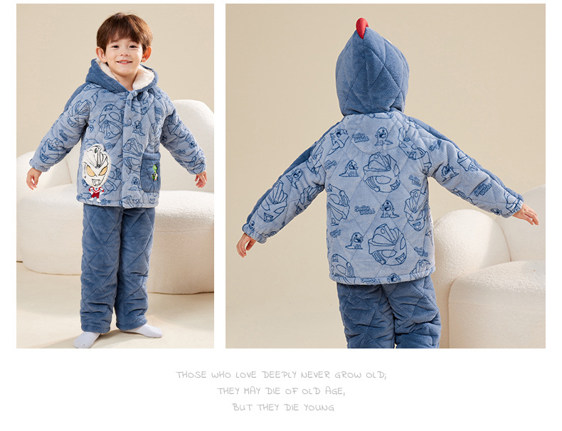 2024 년 어린이 잠옷 소년 겨울 패딩 겨울 소년 산호 양털 3 층면 및 벨벳 세트 도매스토어 가기