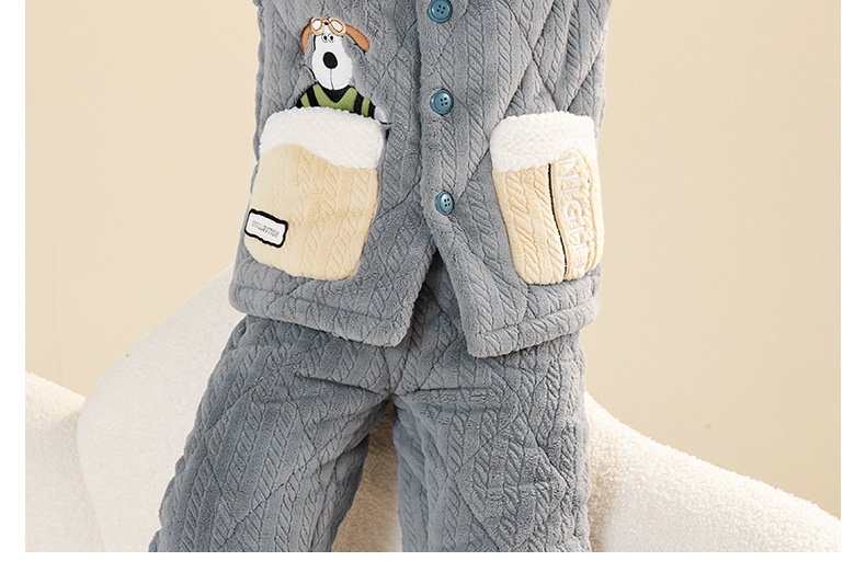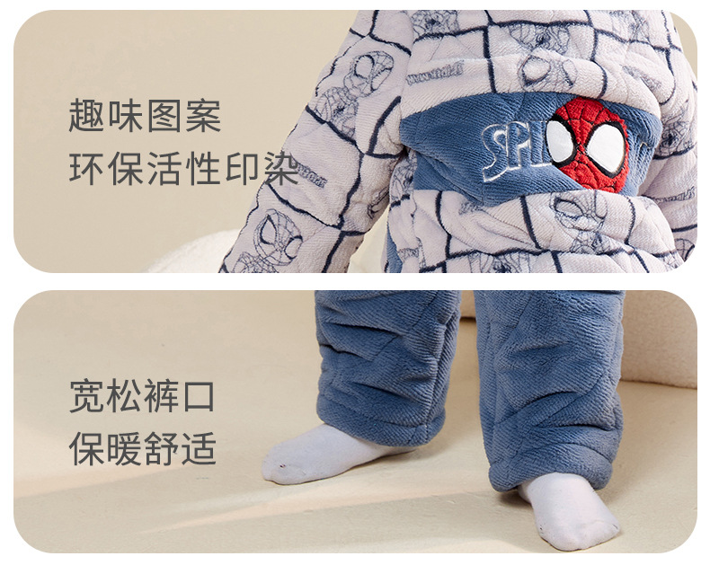 2024 년 어린이 잠옷 소년 겨울 패딩 겨울 소년 산호 양털 3 층면 및 벨벳 세트 도매