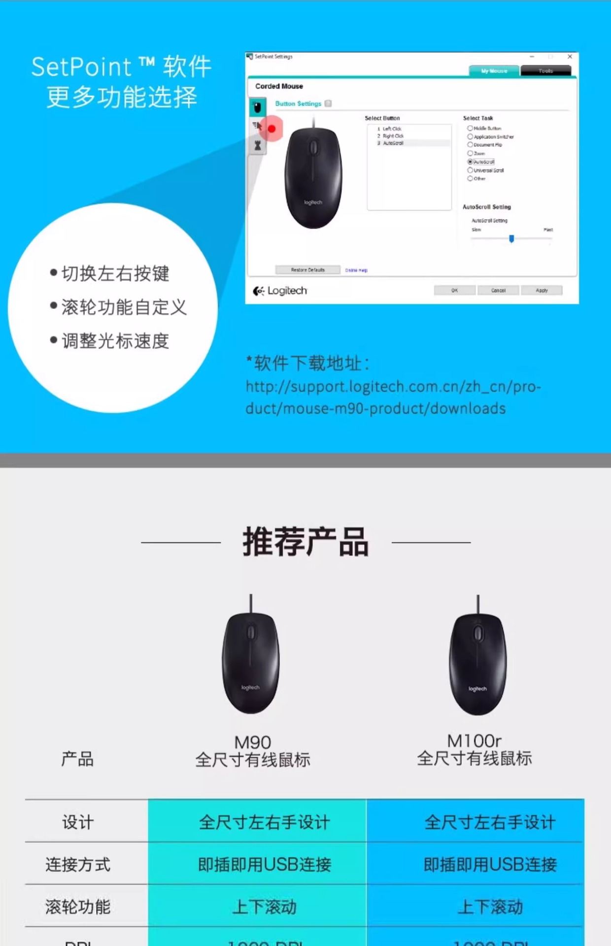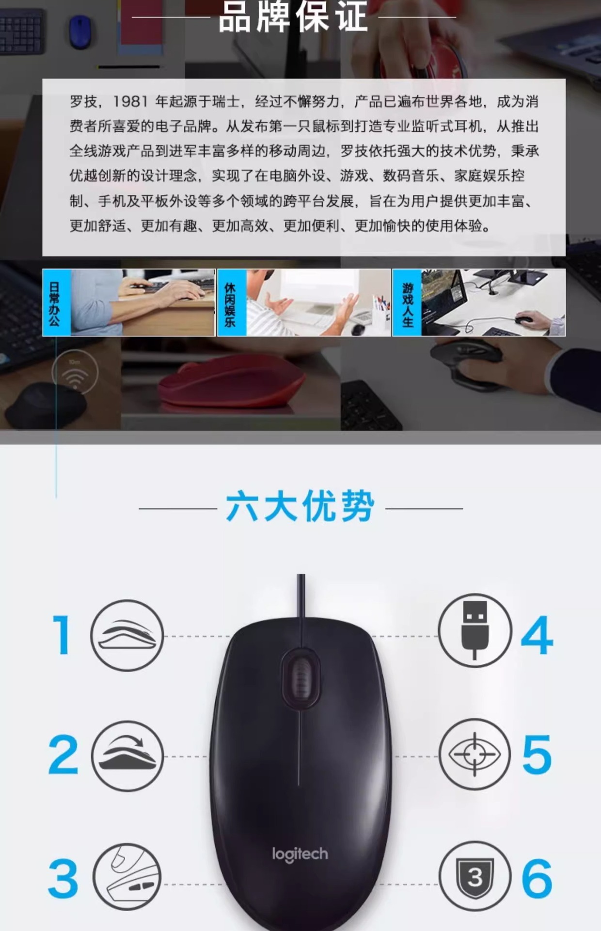 도매 로지텍 M90 광학 유선 마우스 노트북 USB 홈 오피스 왼쪽과 오른손 유니버설스토어 가기