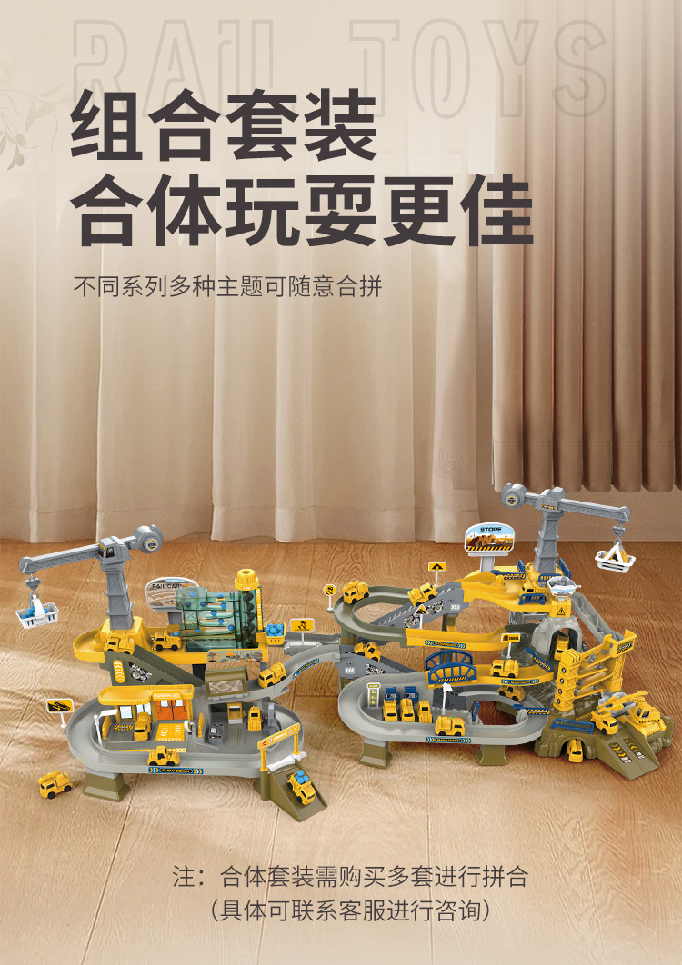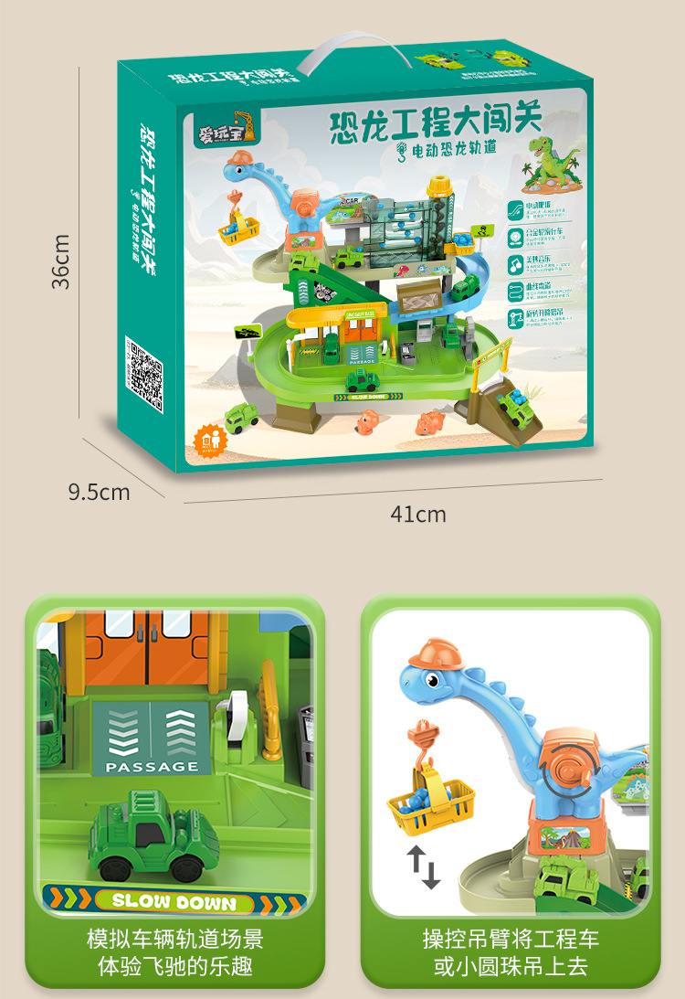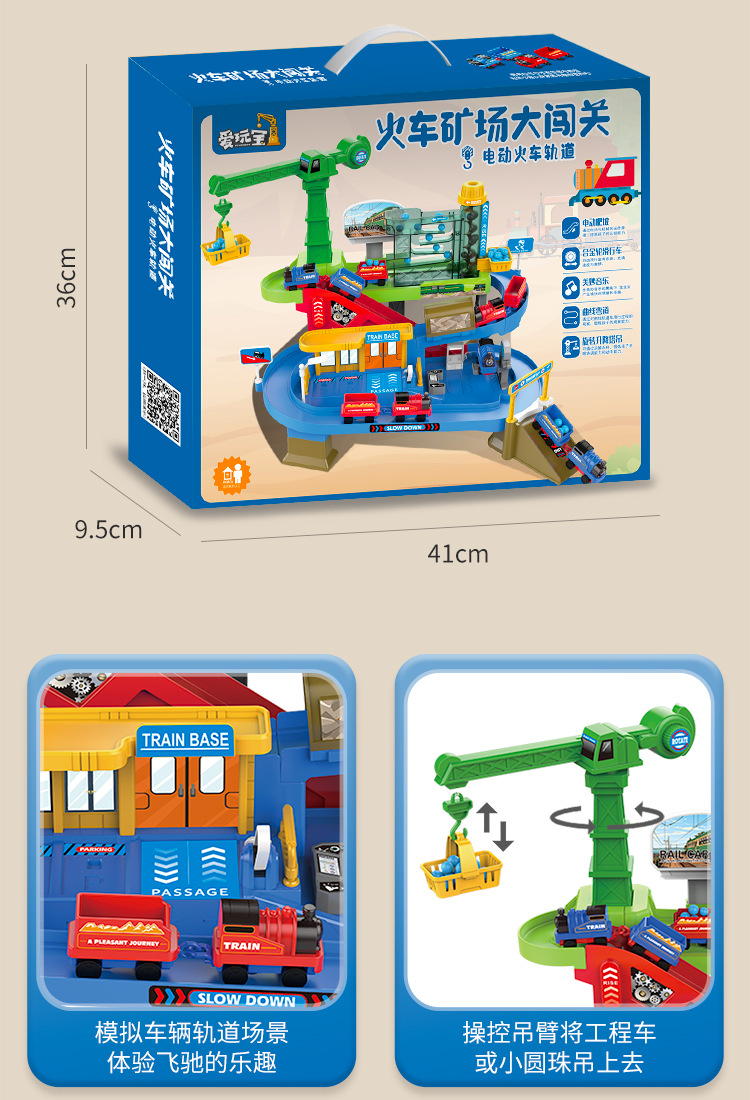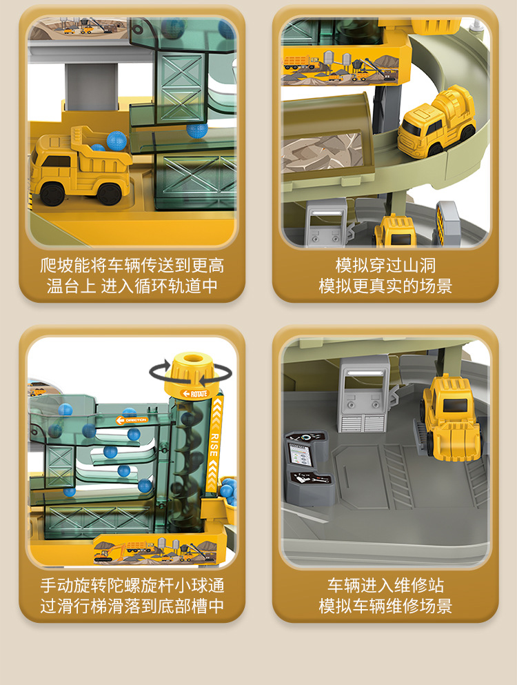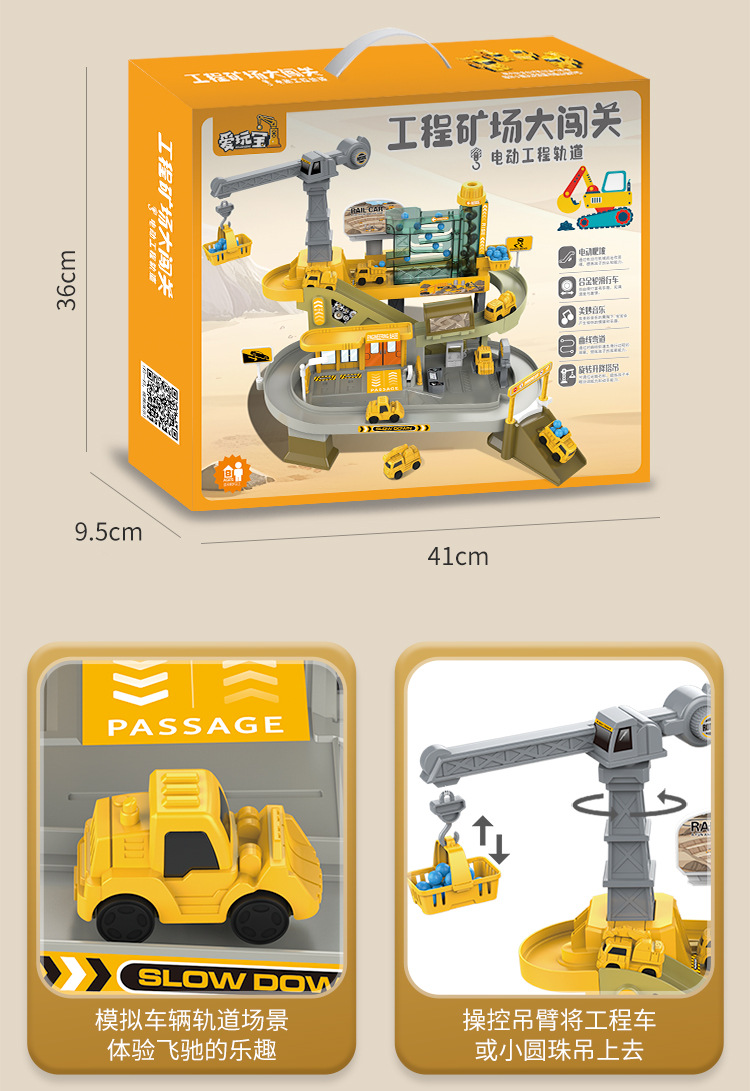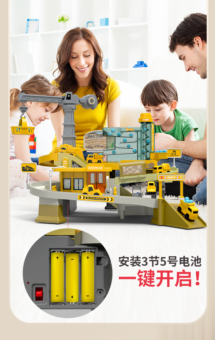 어린이 뜨거운 판매 광산 엔지니어링 차량 주차장 장난감 전기 사다리 트랙 큰 입장 모험 세트 선물 상자
