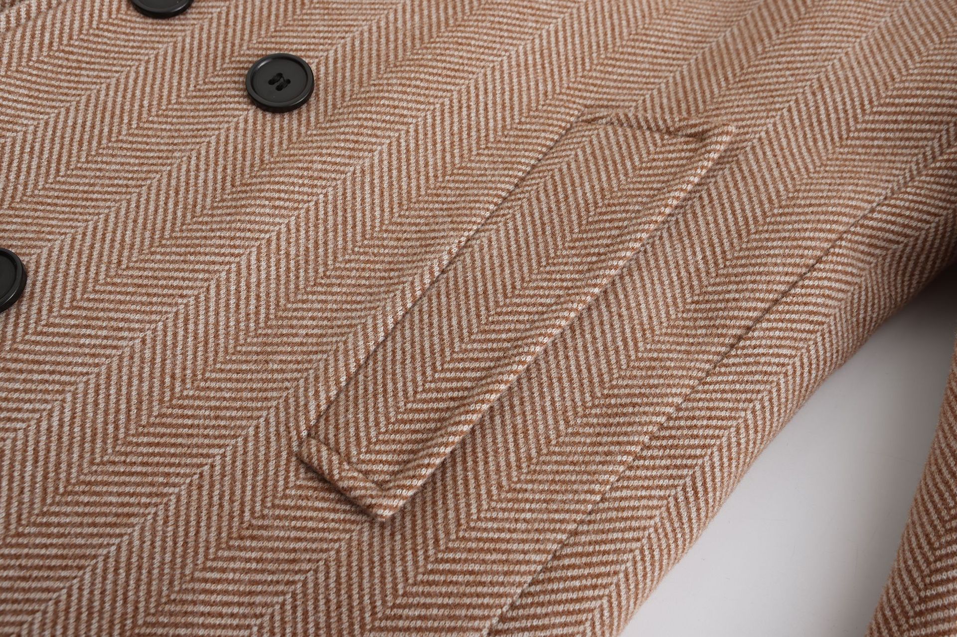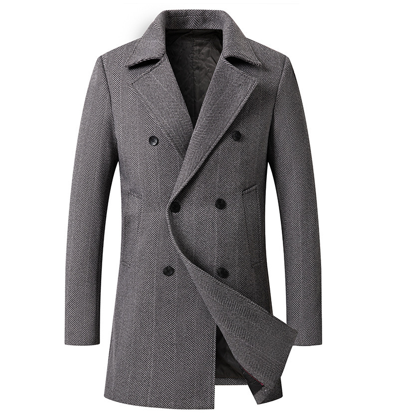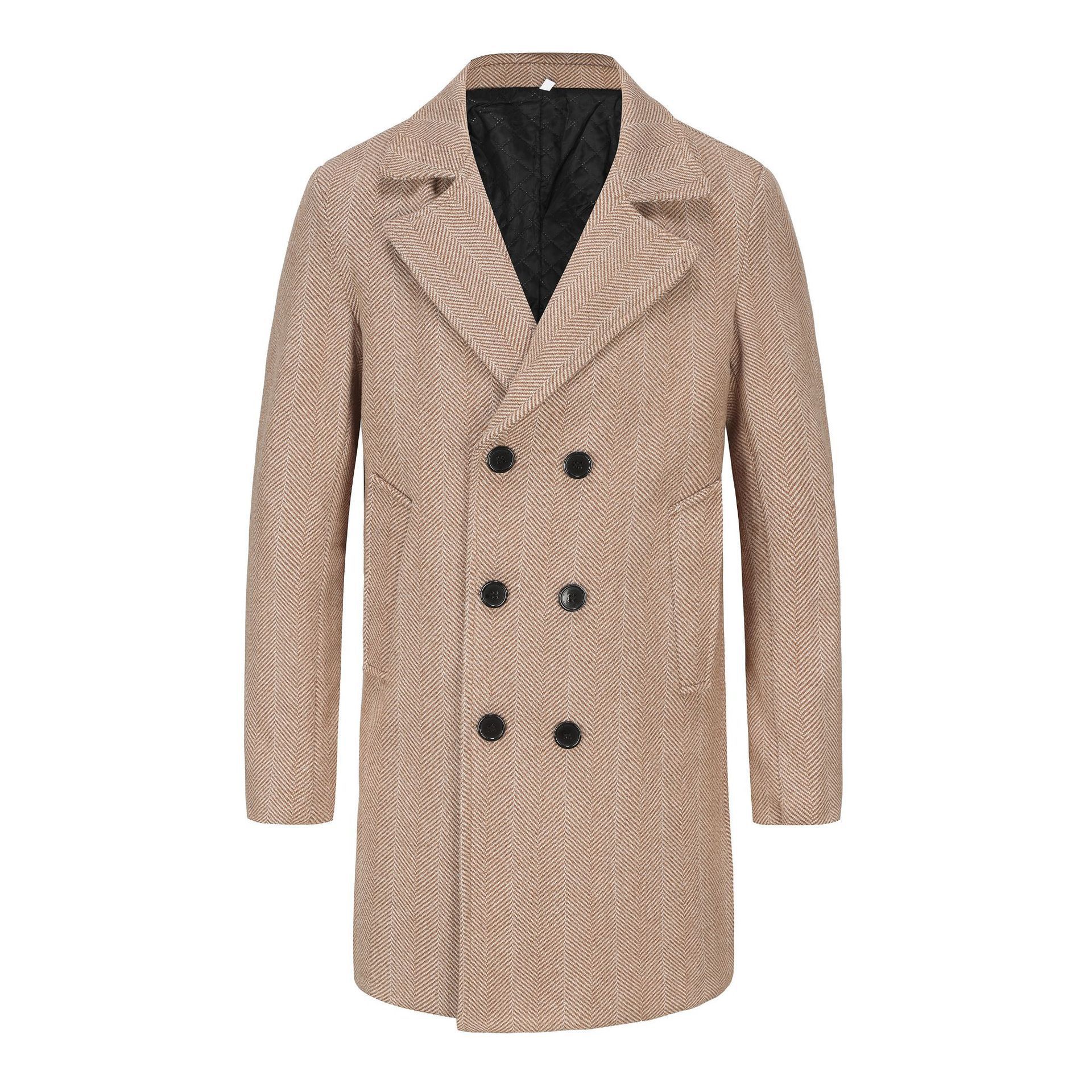 [도매 할인] 남성용 크로스보더 스팟 중간 길이 모직 코튼 코트 남성용 격자 무늬 더블 브레스트 모직 코트