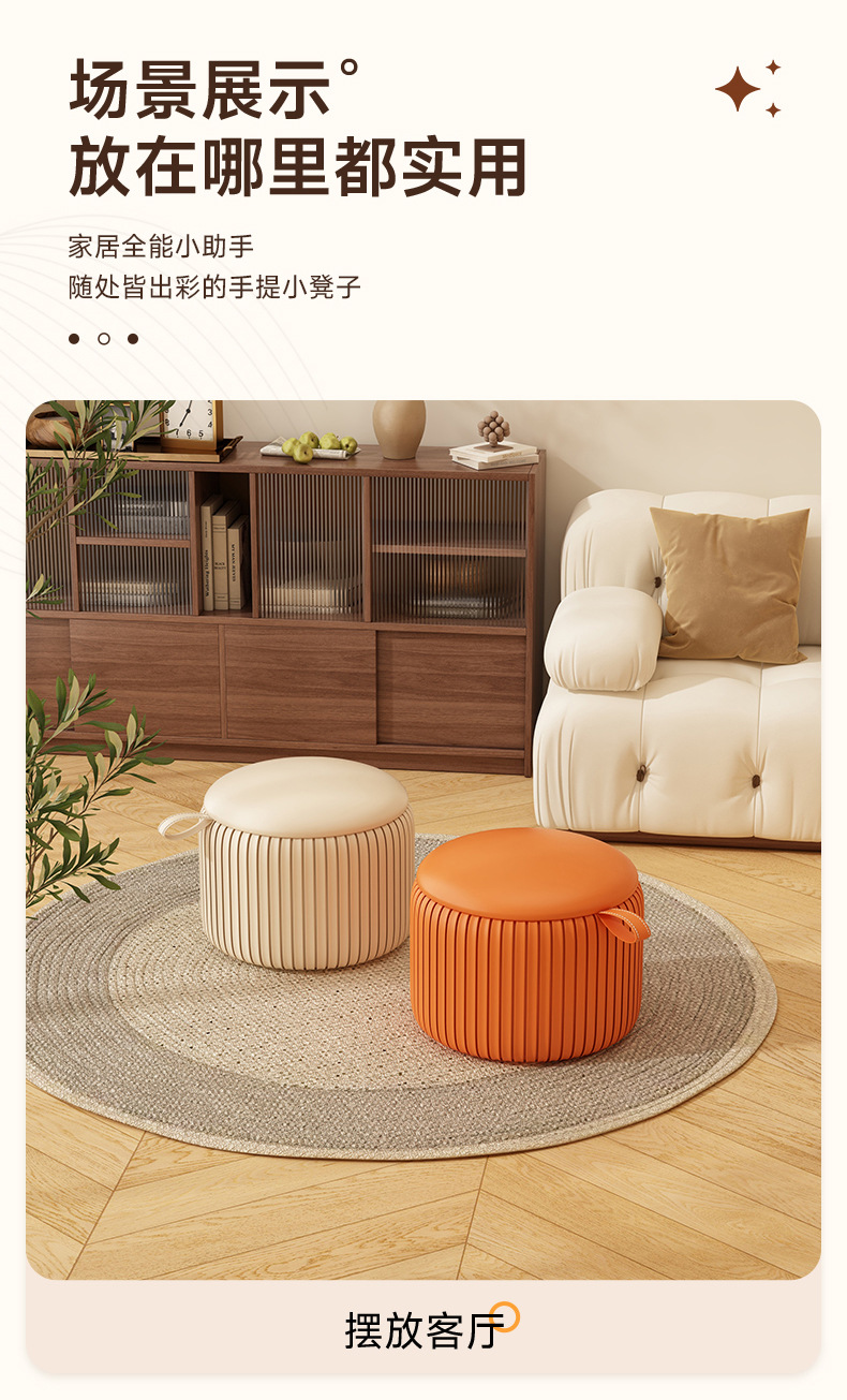 둥근 가죽 부두 가정용 거실 소파 의자 휴대용 낮은 의자 문 신발 의자 앉아 부두 라운드 의자 솔리드 컬러 PU 라운드 스툴 변경스토어 가기