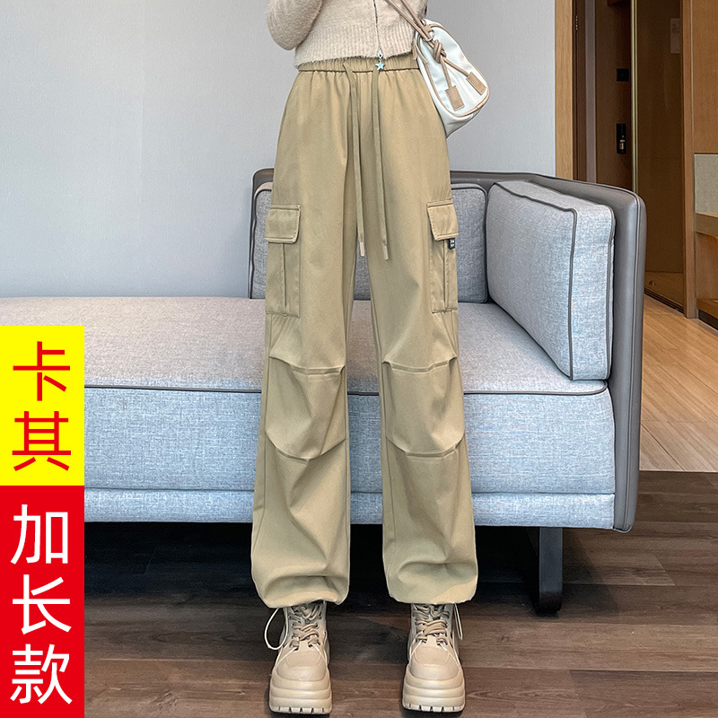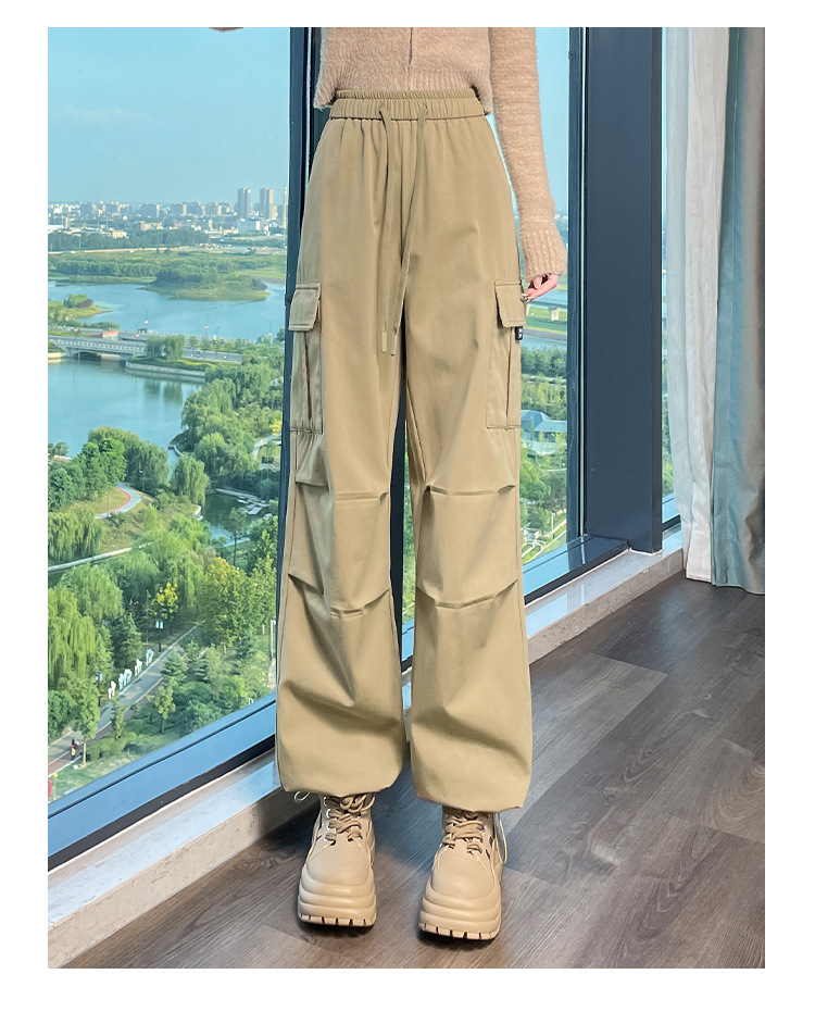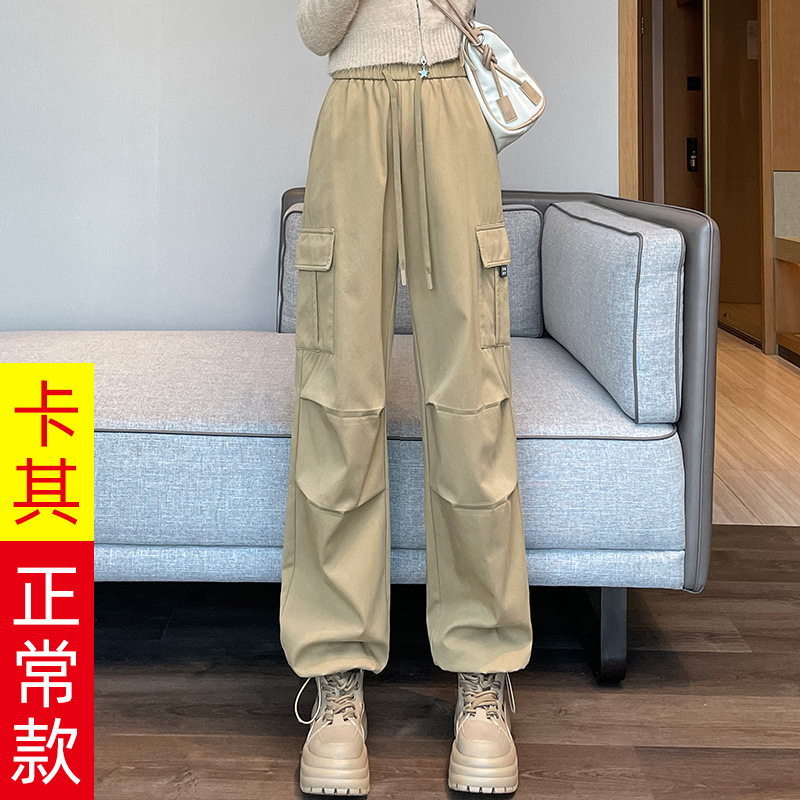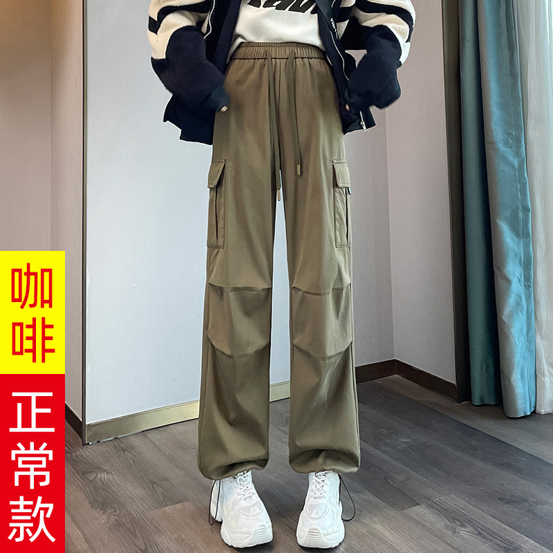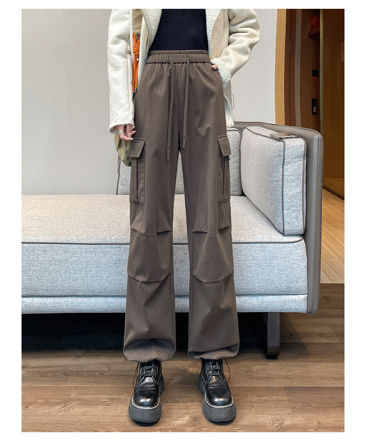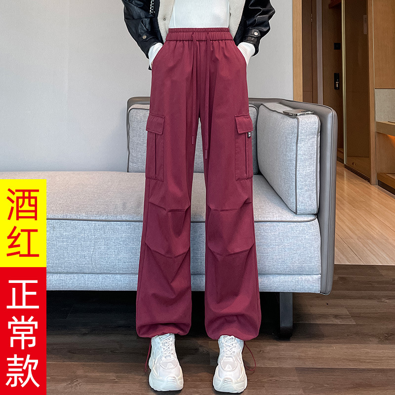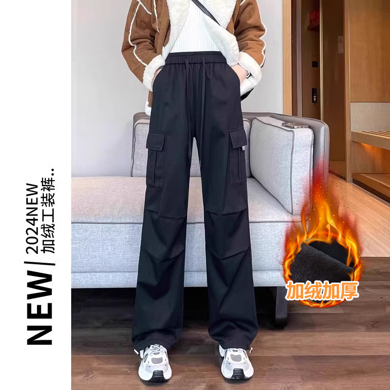 검은 기모 크록 바지 여성 가을과 겨울 미국 스타일의 높은 허리 느슨한 넓은 다리 작은 등반 방풍 스포츠 바지스토어 가기