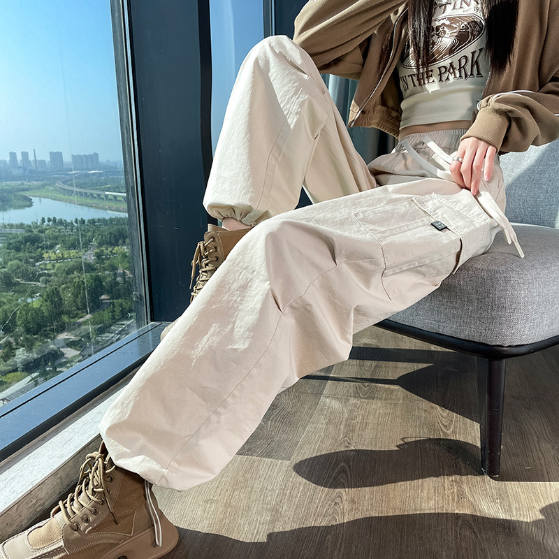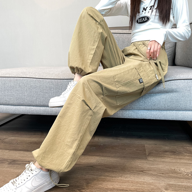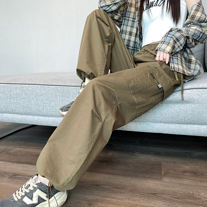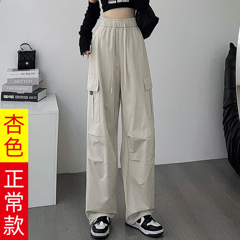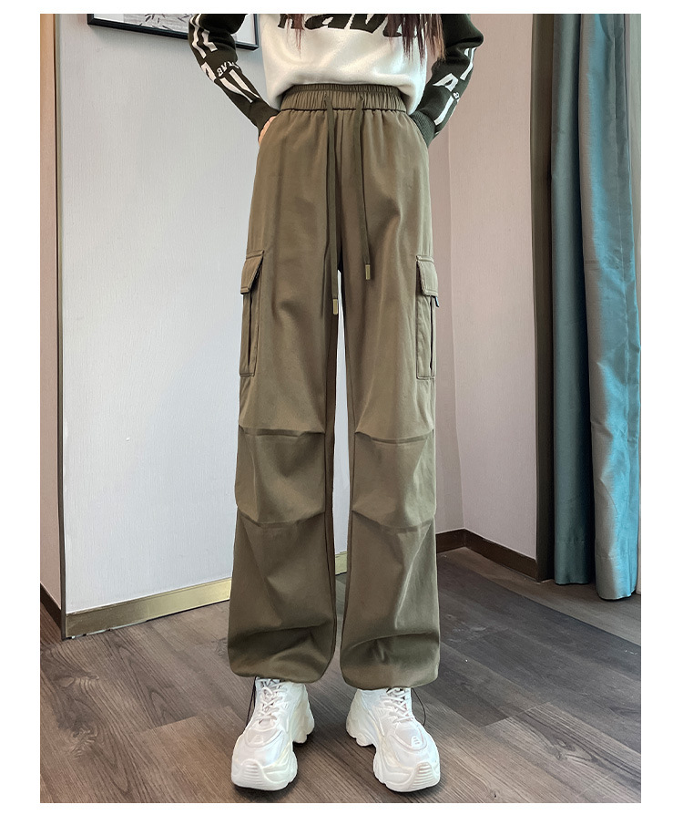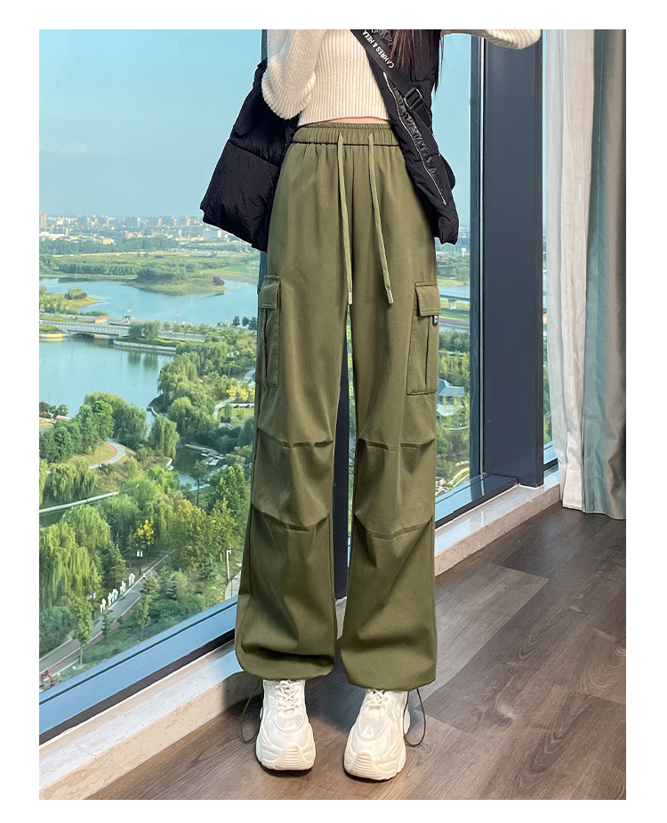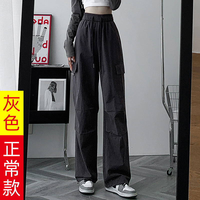 검은 기모 크록 바지 여성 가을과 겨울 미국 스타일의 높은 허리 느슨한 넓은 다리 작은 등반 방풍 스포츠 바지스토어 가기