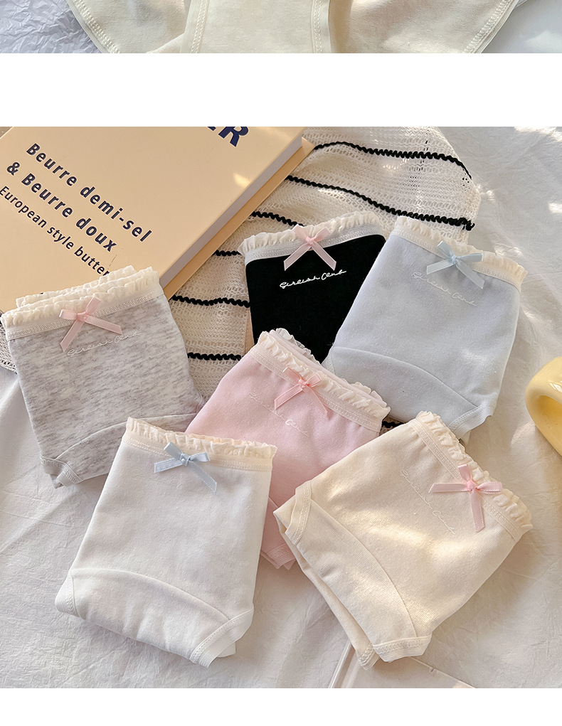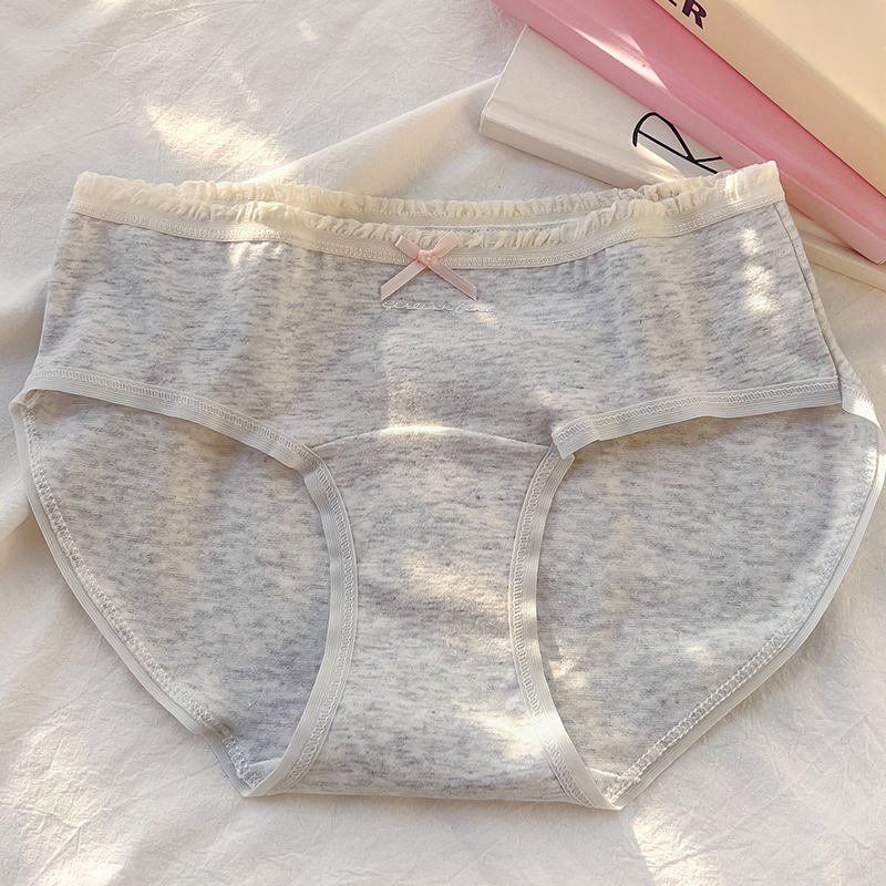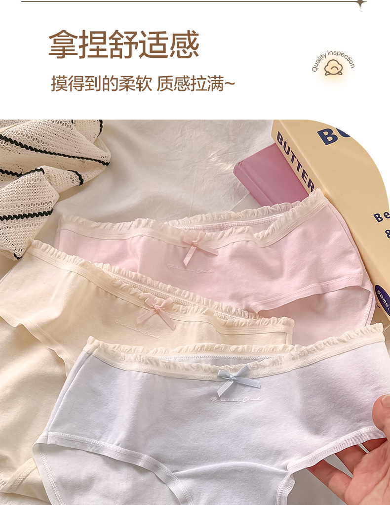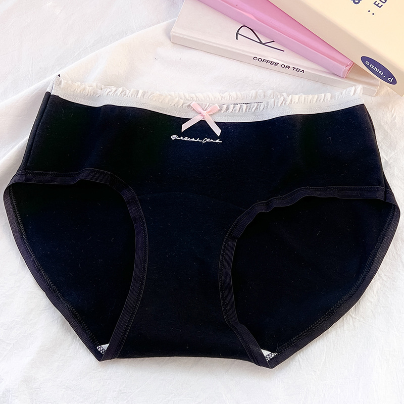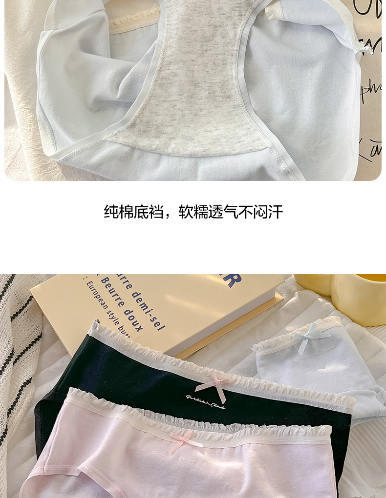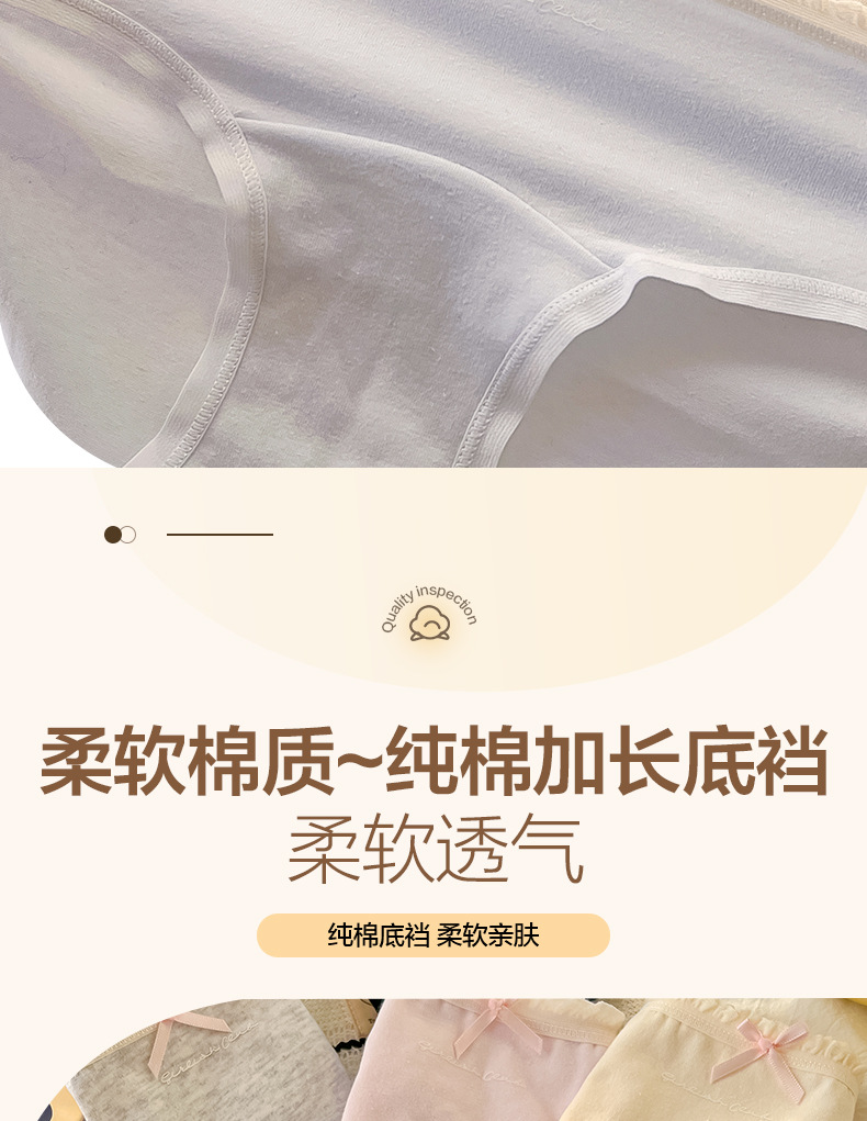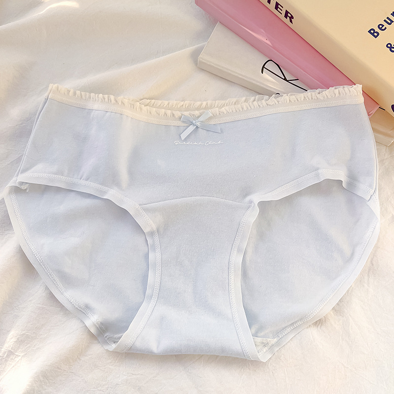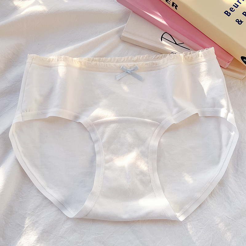 팬티 여성용 코튼 롱 크로 치 달콤한 일본 소녀의 중간 허리 귀여운 단색 간단한 새 스타일 브리프스토어 가기