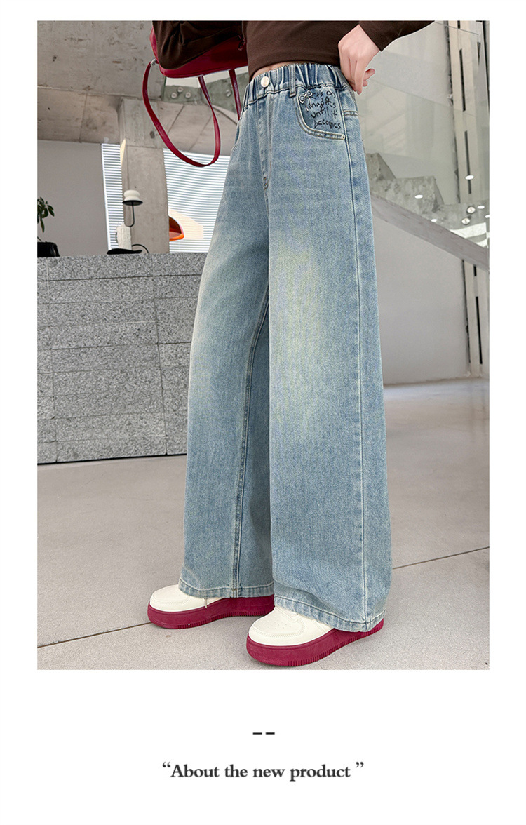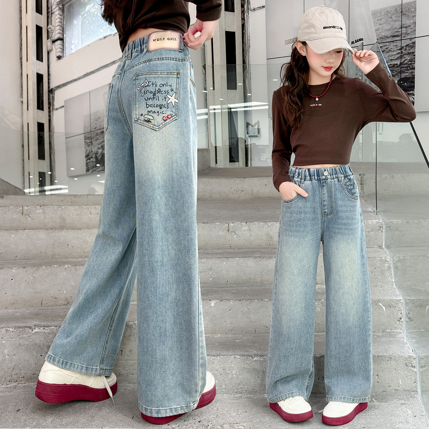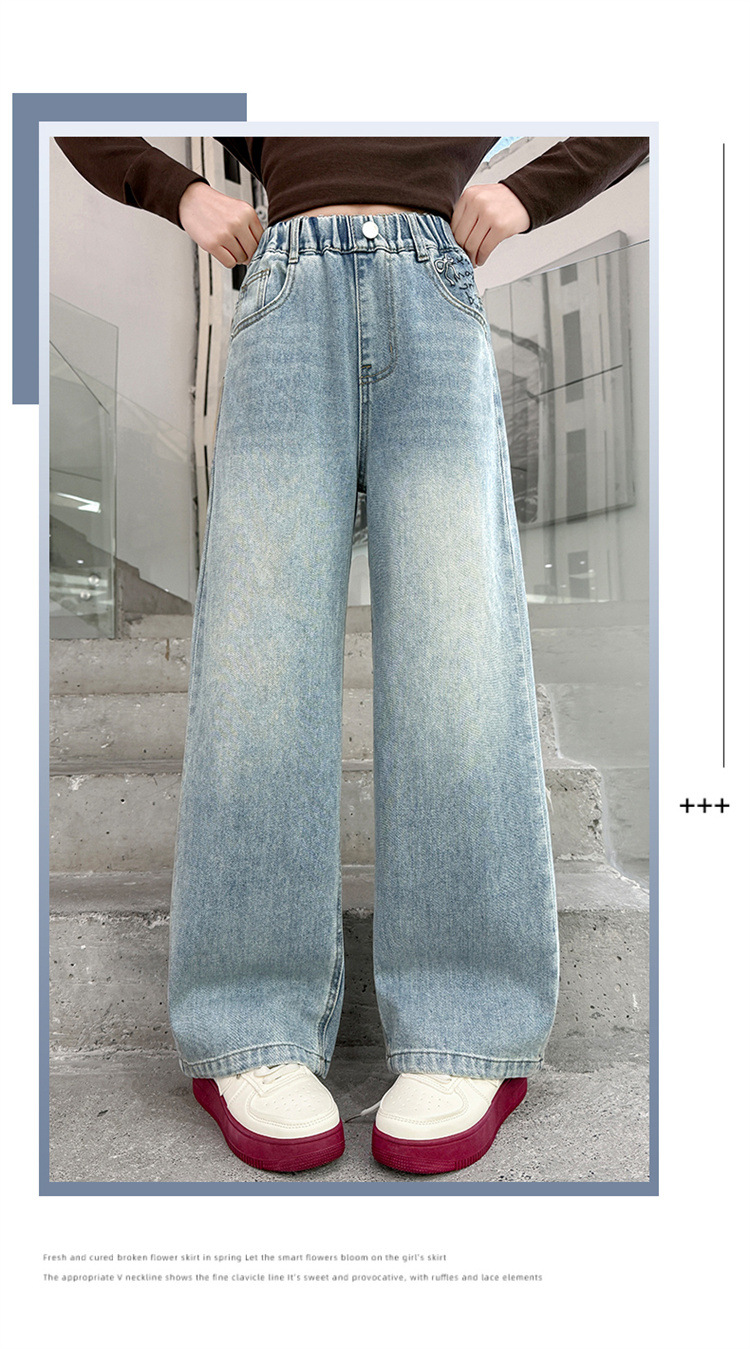 크로스보더 여아 청바지 2026 봄 신상 아동 루즈핏 롱팬츠 큰아동용 한국 스타일 세련된 스트레이트 팬츠 수출용