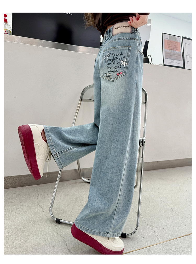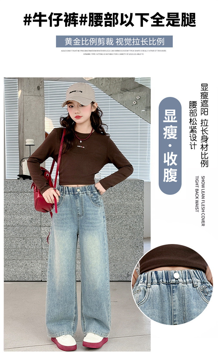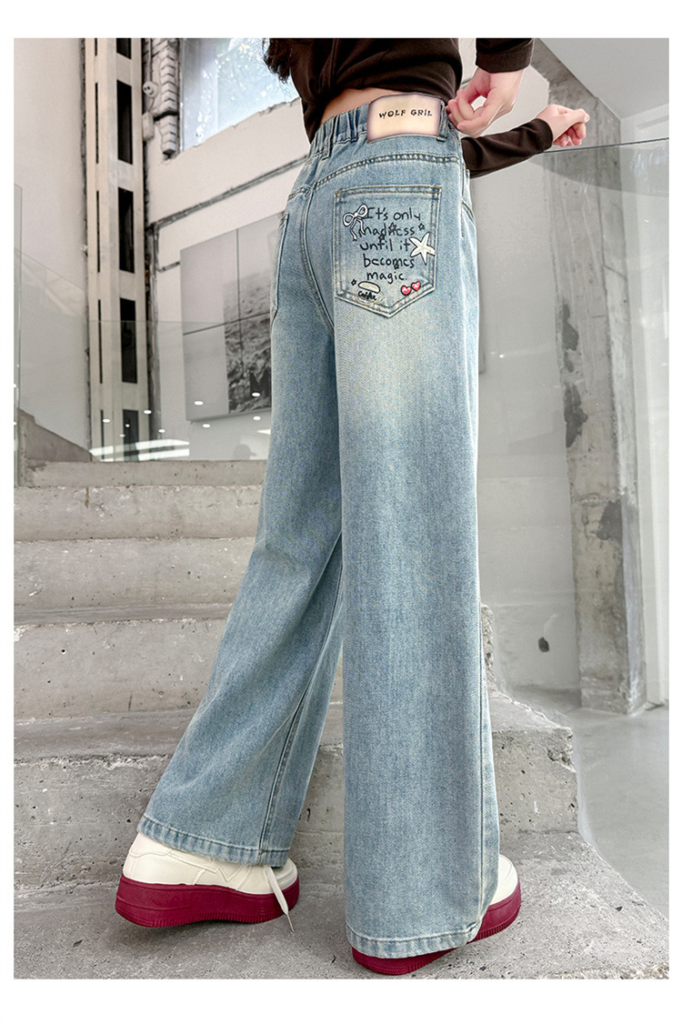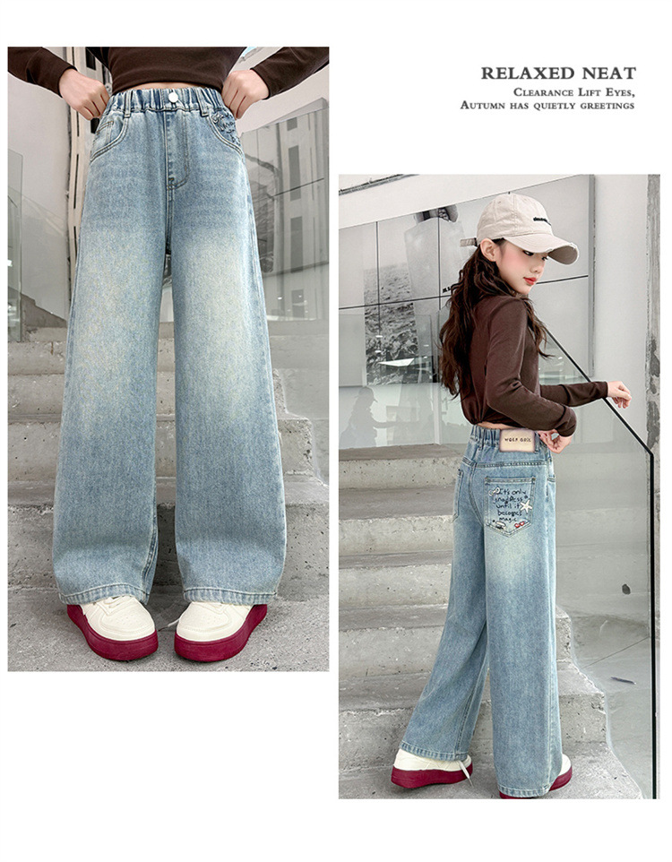 크로스보더 여아 청바지 2026 봄 신상 아동 루즈핏 롱팬츠 큰아동용 한국 스타일 세련된 스트레이트 팬츠 수출용