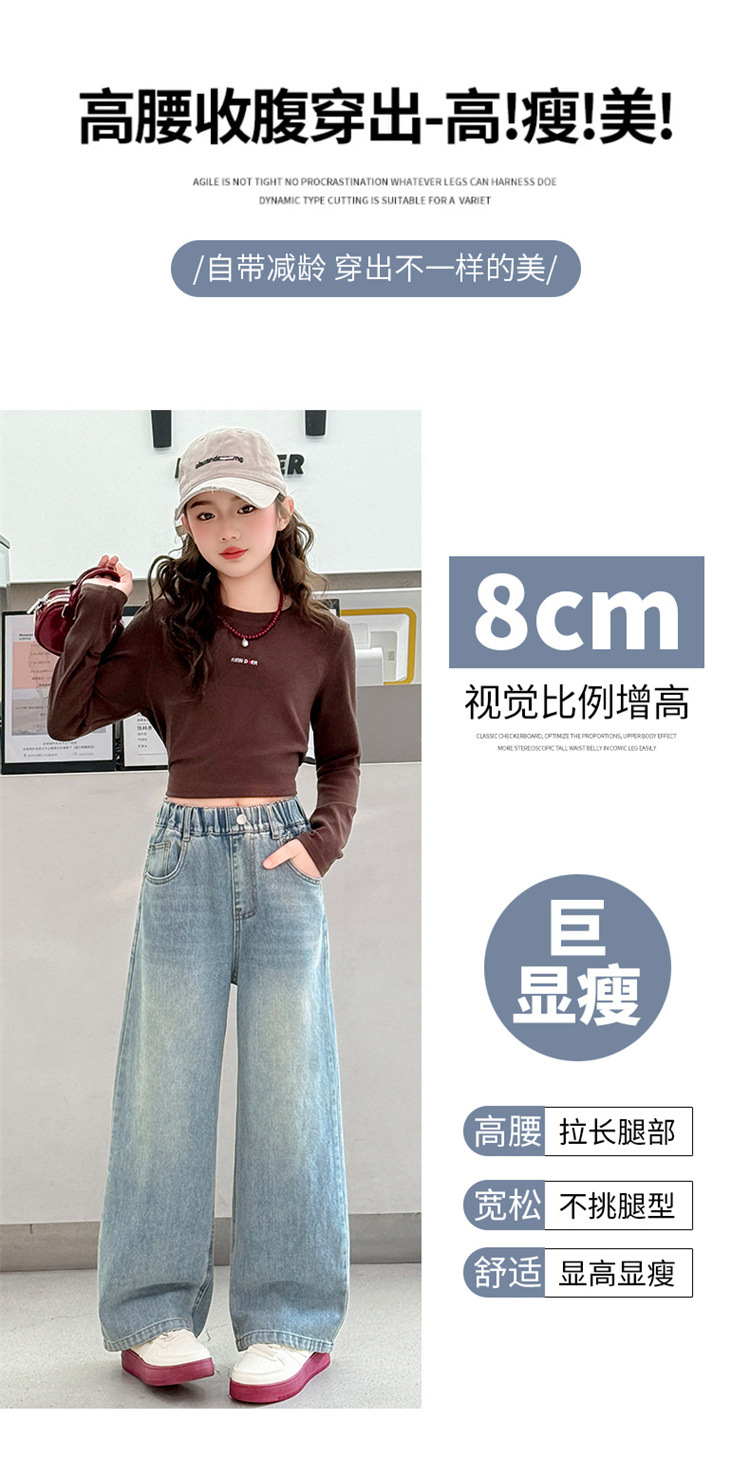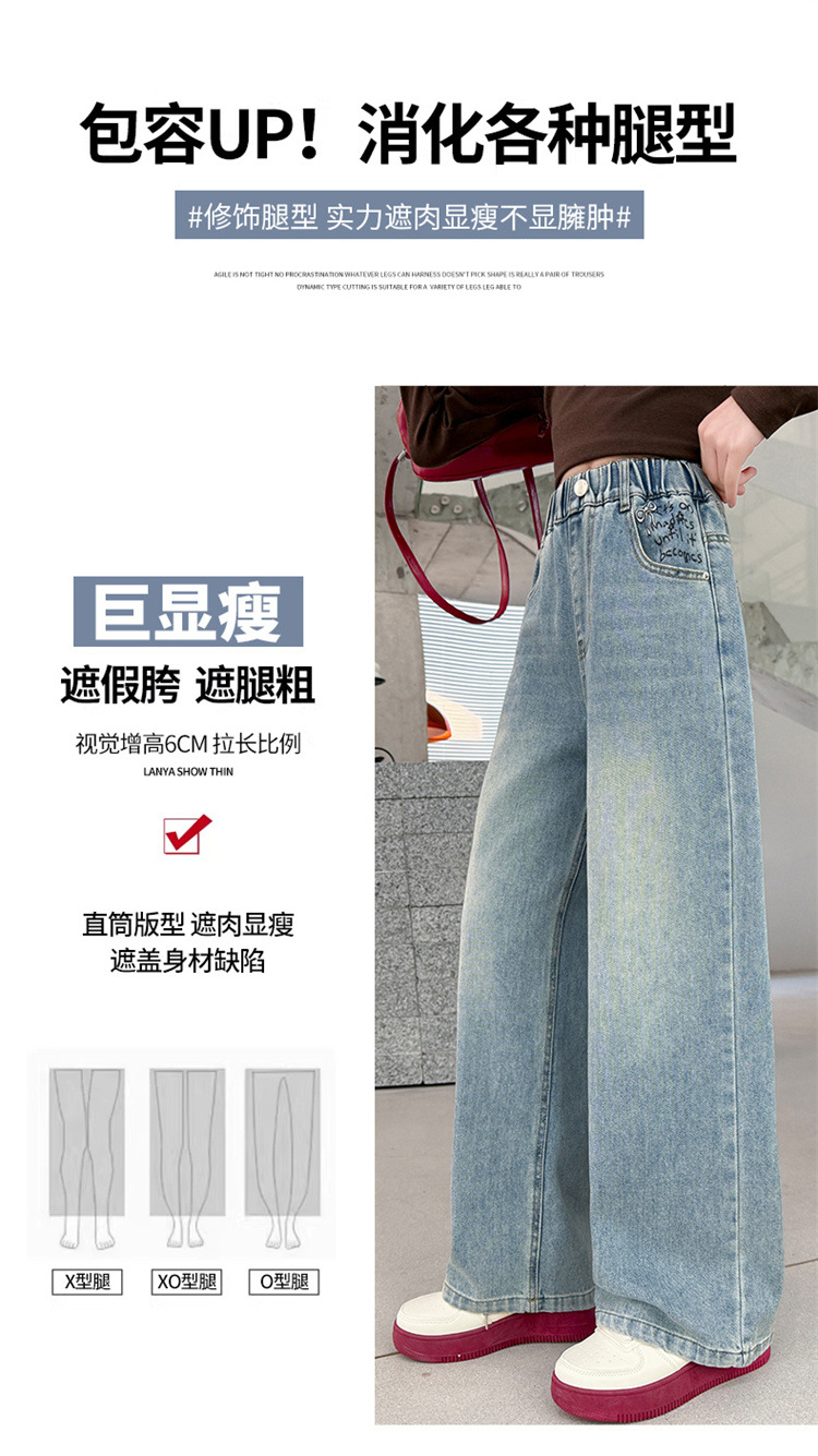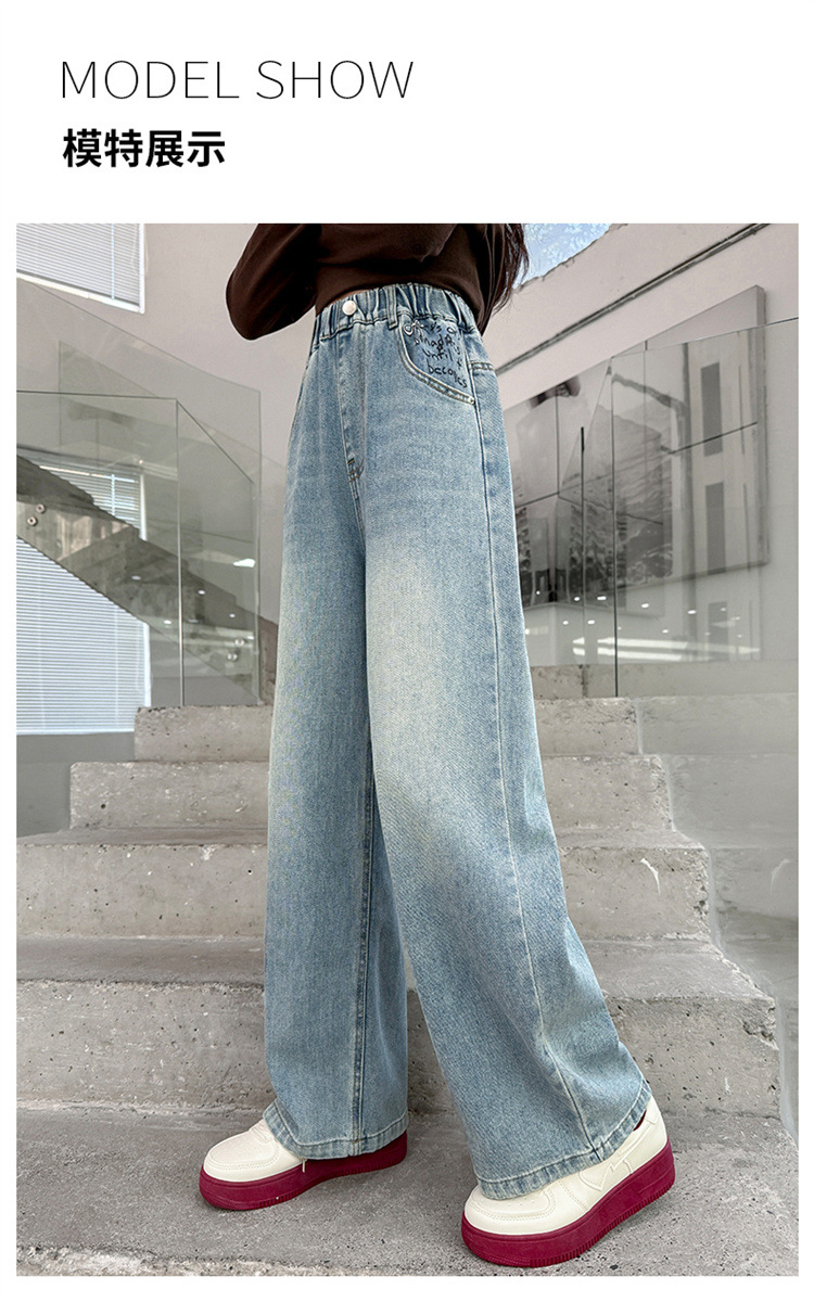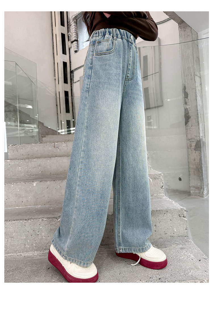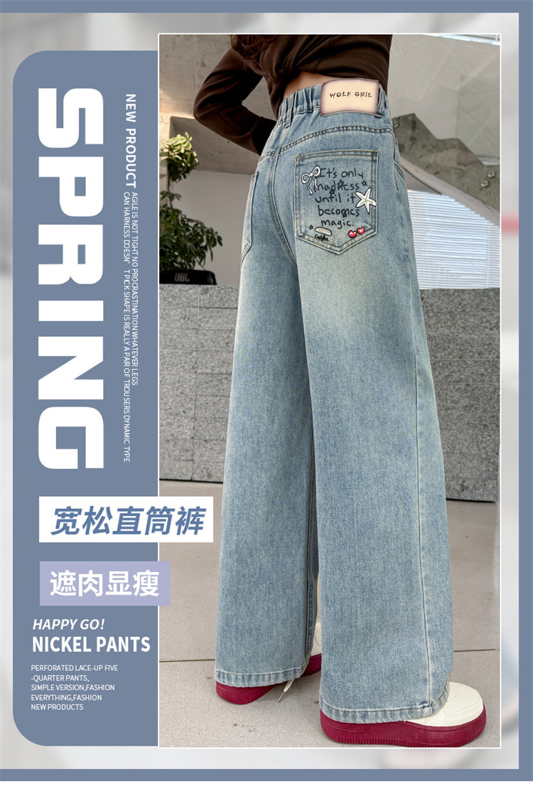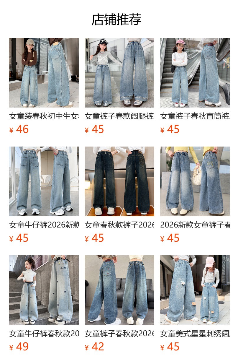 크로스보더 여아 청바지 2026 봄 신상 아동 루즈핏 롱팬츠 큰아동용 한국 스타일 세련된 스트레이트 팬츠 수출용스토어 가기