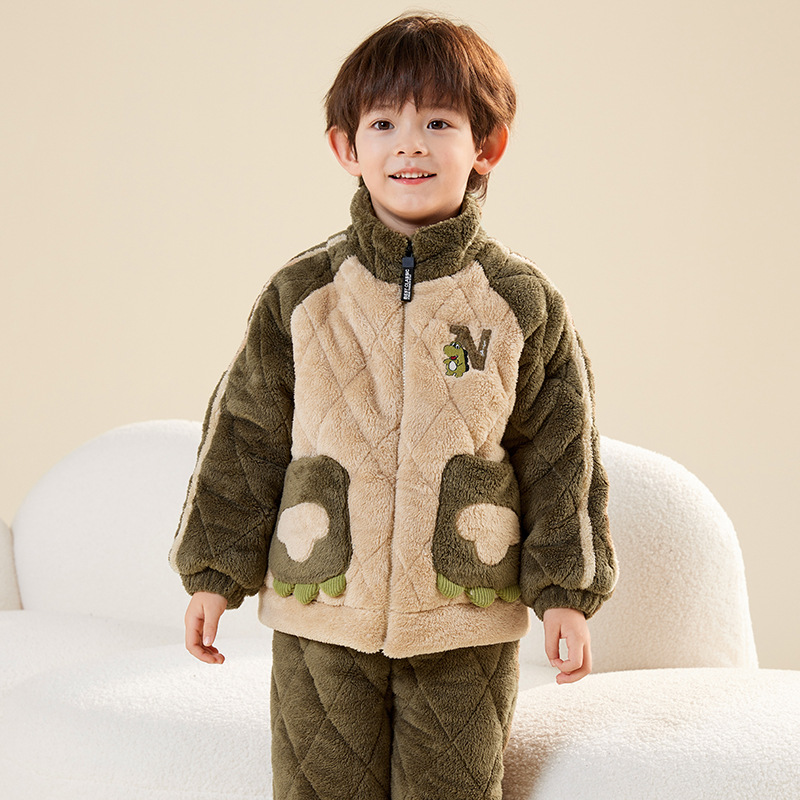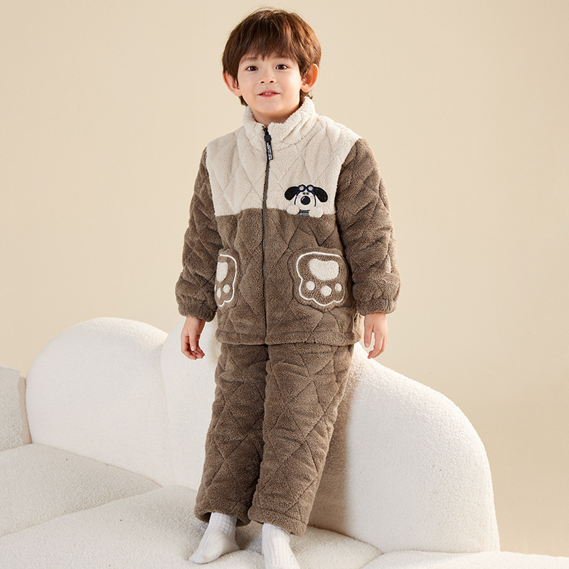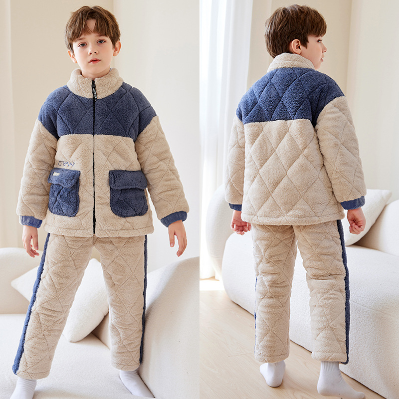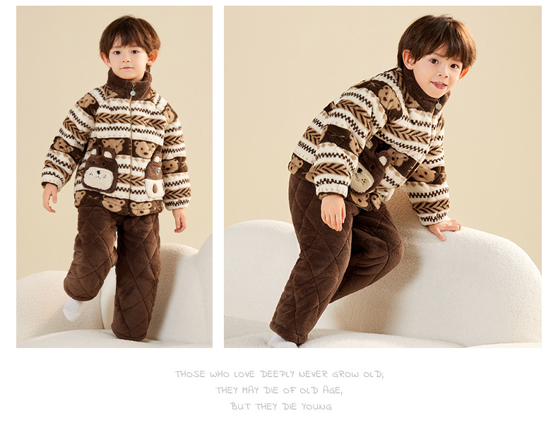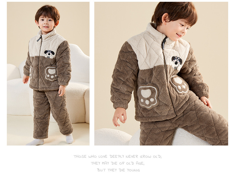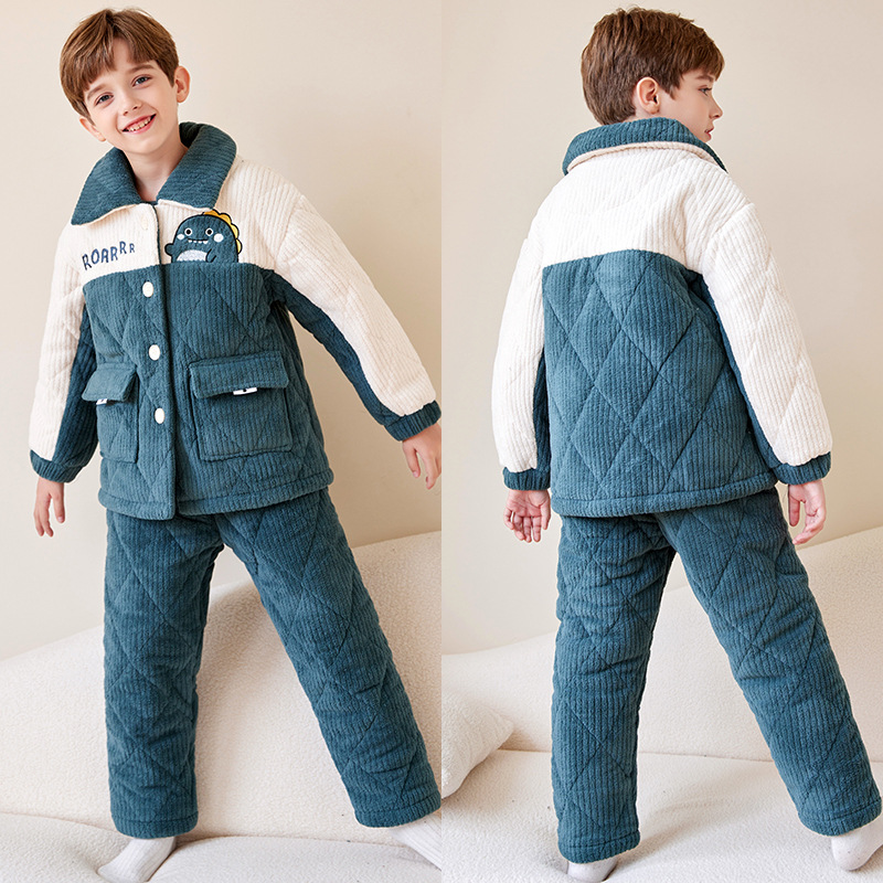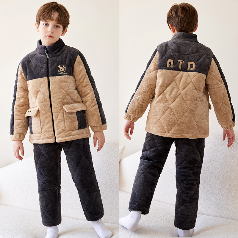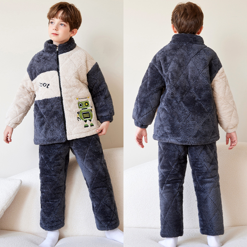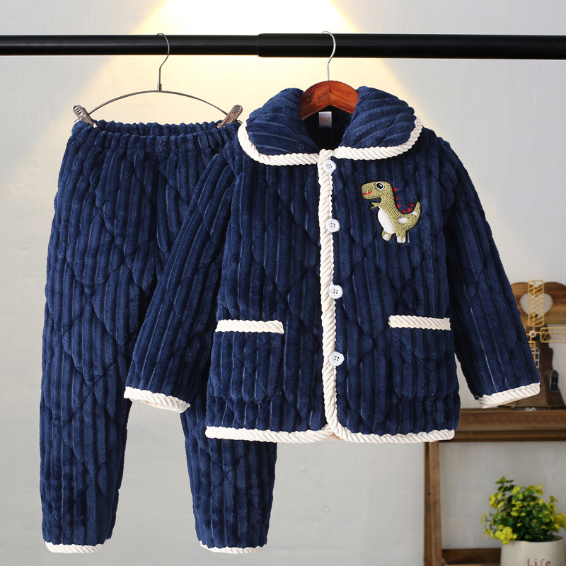 2024 년 어린이 잠옷 소년 겨울 패딩 겨울 소년 산호 양털 3 층면 및 벨벳 세트 도매스토어 가기