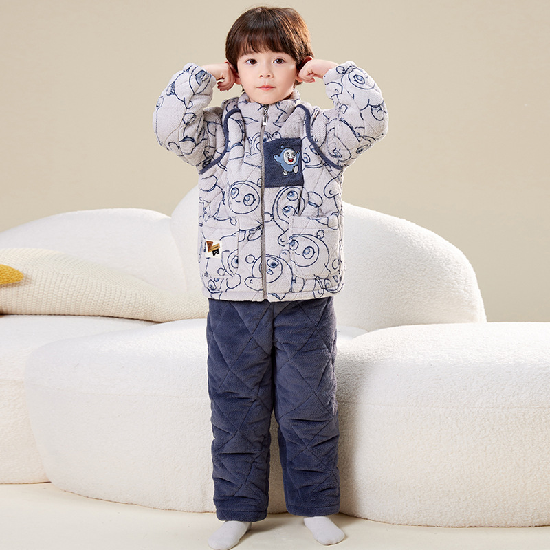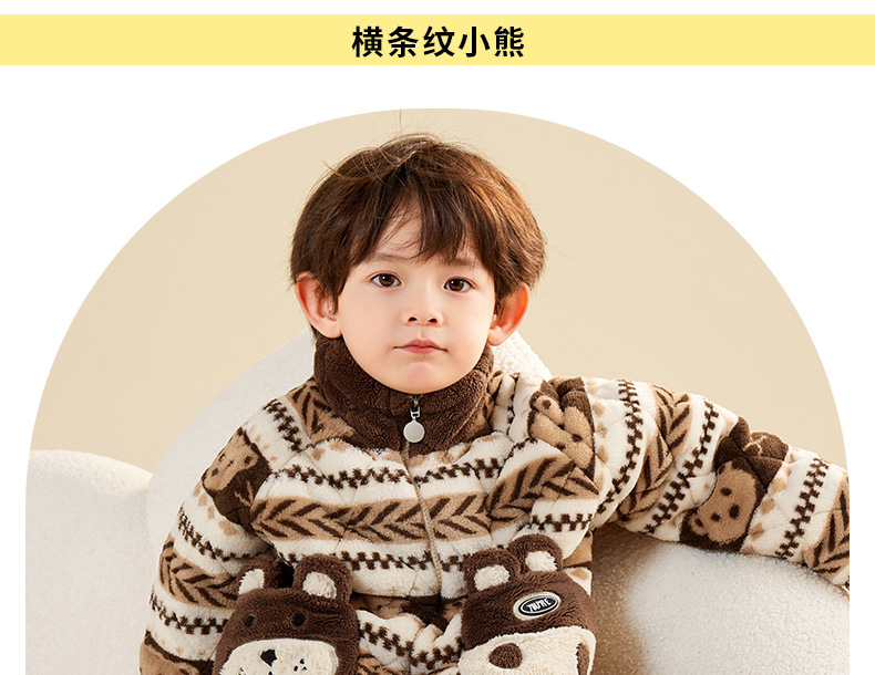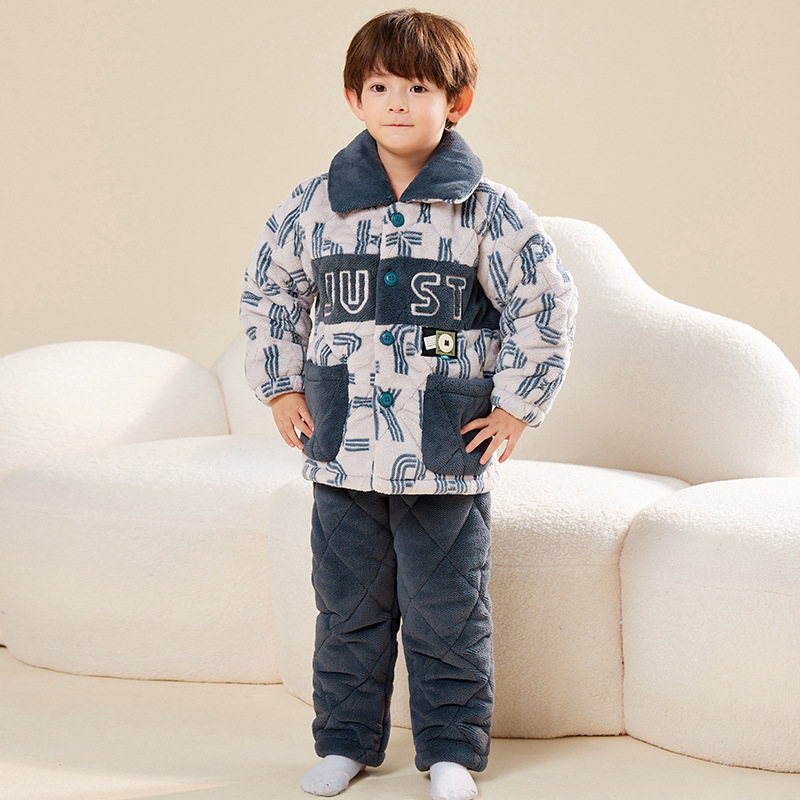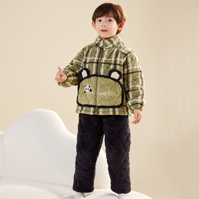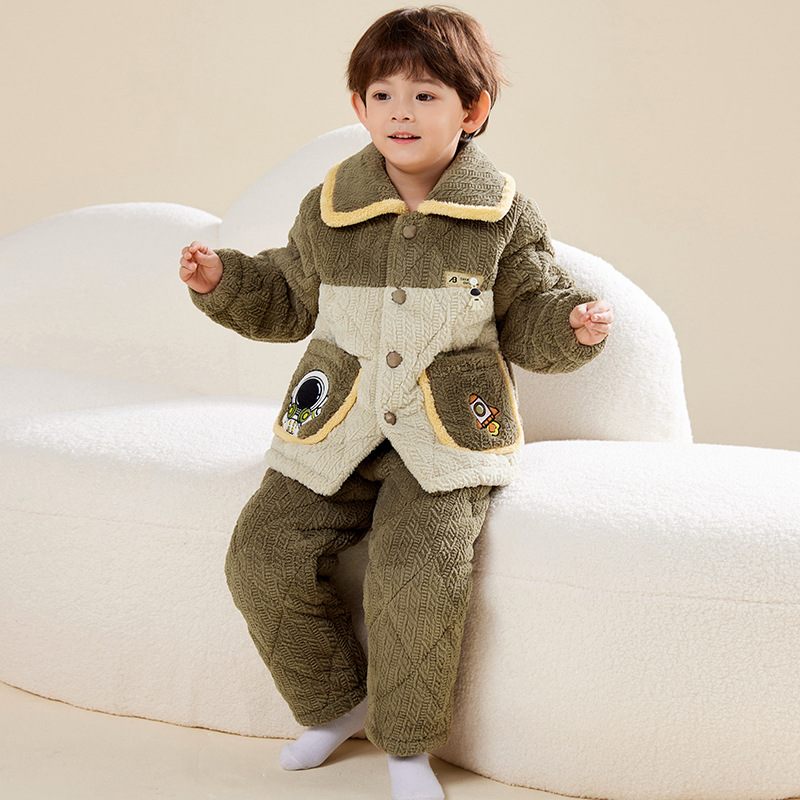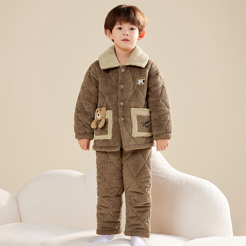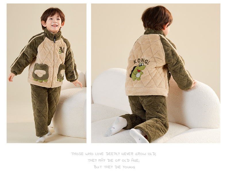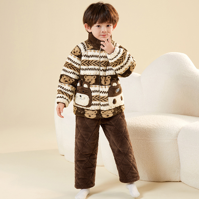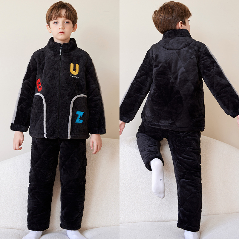 2024 년 어린이 잠옷 소년 겨울 패딩 겨울 소년 산호 양털 3 층면 및 벨벳 세트 도매스토어 가기