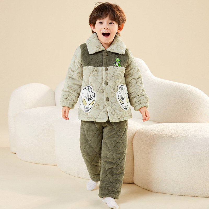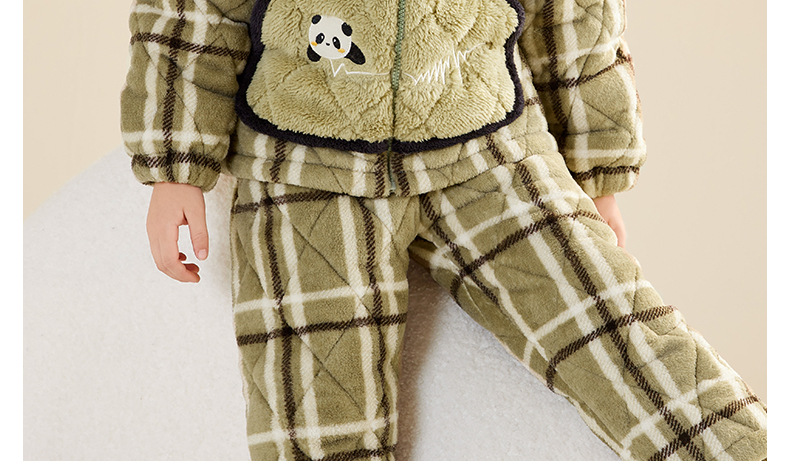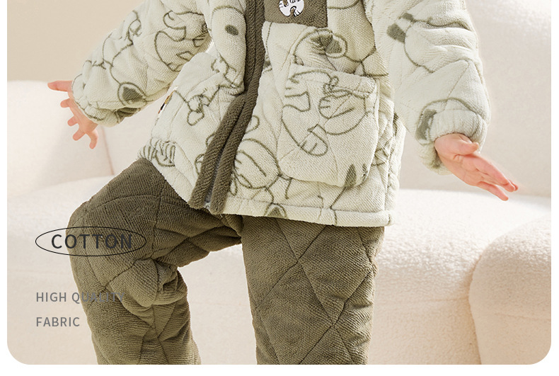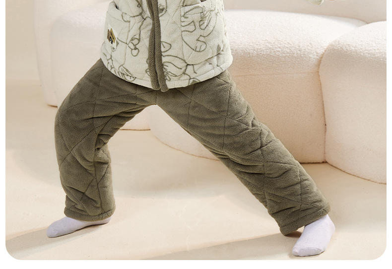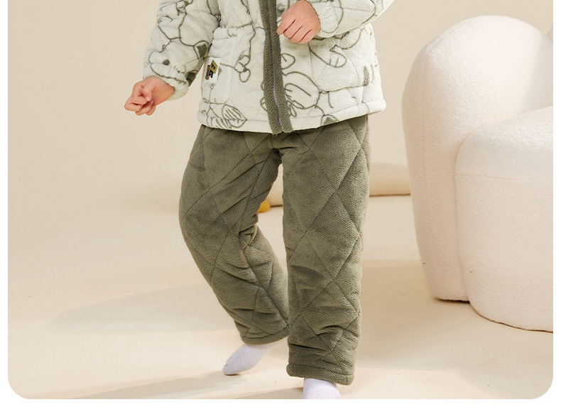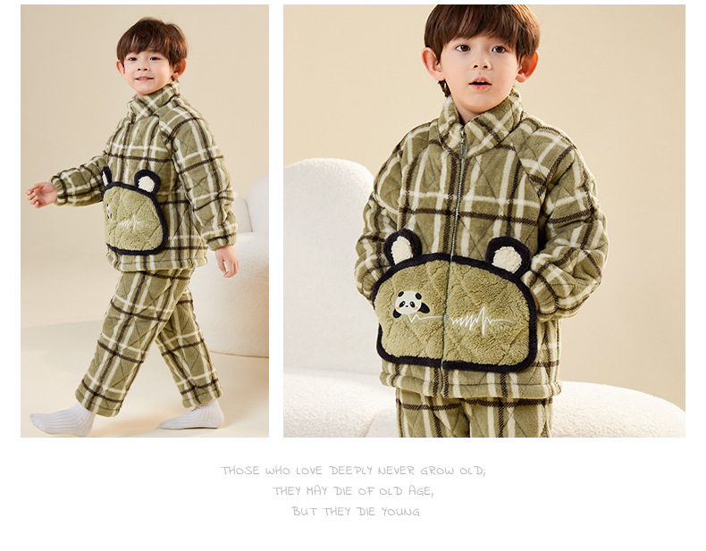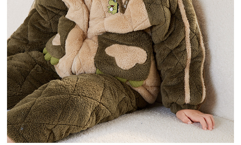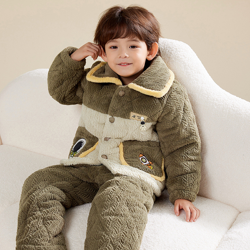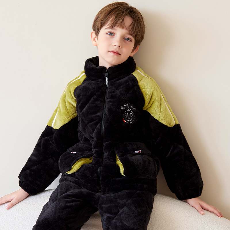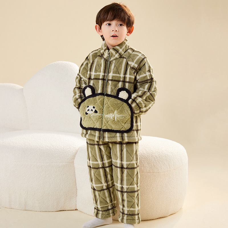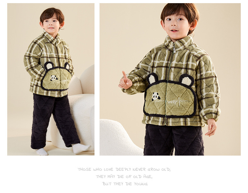 2024 년 어린이 잠옷 소년 겨울 패딩 겨울 소년 산호 양털 3 층면 및 벨벳 세트 도매스토어 가기